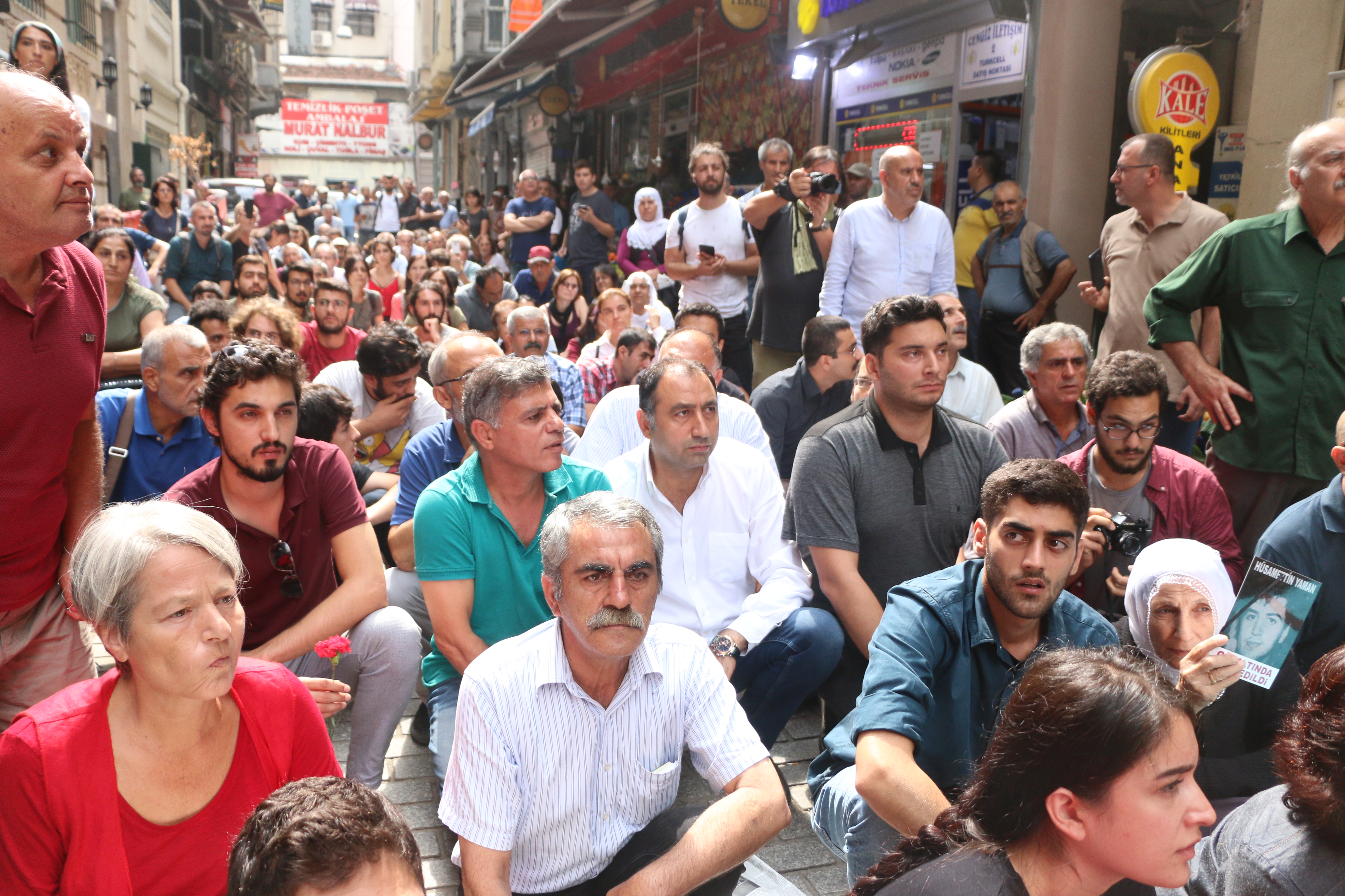 İnsan Hakları Derneği’nin (İHD) Beyoğlu’nda bulunan İstanbul Şubesi önünde toplanan kayıp yakınları önce Galatasaray Meydanı’na doğru sessiz bir yürüyüşe geçti. İstiklal Caddesi’ne çıkan yolların polis tarafından tutulması nedeniyle Cumartis Anneleri Büyükparmakkapı Sokak’da oturma eylemi yaptı. Eyleme HDP milletvekilleri Ali Kenanoğlu, Ahmet Şık, Garo Paylan, Züleyha Gülüm ile ÖDP Başkanlar Kurulu Üyesi Alper Taş destek verdi.