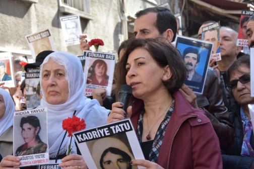 Daha sonra konuşan Türkiye İnsan Hakları Vakfı (TİHV) Başkanı Şebnem Korur Fincancı ise, insan hakları mücadelesinin öncülerinin kadınlar olduğunu vurgulayarak, “Kadınlar olarak gözaltında kaybedilenlerin faillerini bulmak için bu mücadeleye söz verdik” dedi.