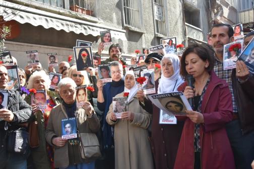 Açıklamayı okuyan İHD İstanbul Şube Başkanı Gülseren Yoleri, gözaltında kaybedilen kadınları unutmadıklarını vurgulayarak, “8 Mart Dünya Kadınlar Günü dolayısıyla kaybedilen kadınları anıyor. Bunun için mücadele eden tüm kadınları selamlıyoruz” dedi. Kadınların 8 Mart’ta baskıya karşı seslerini yükselttiklerini kaydeden Yoleri, erkek egemen sistemin beslediği cinsiyet imtiyazlarına, ayrımcılığa ve adaletsizliğe karşı yüksek sesle itiraz etikleri bir gün olduğunu anımsattı.
