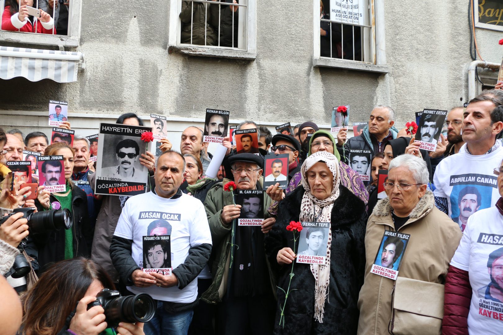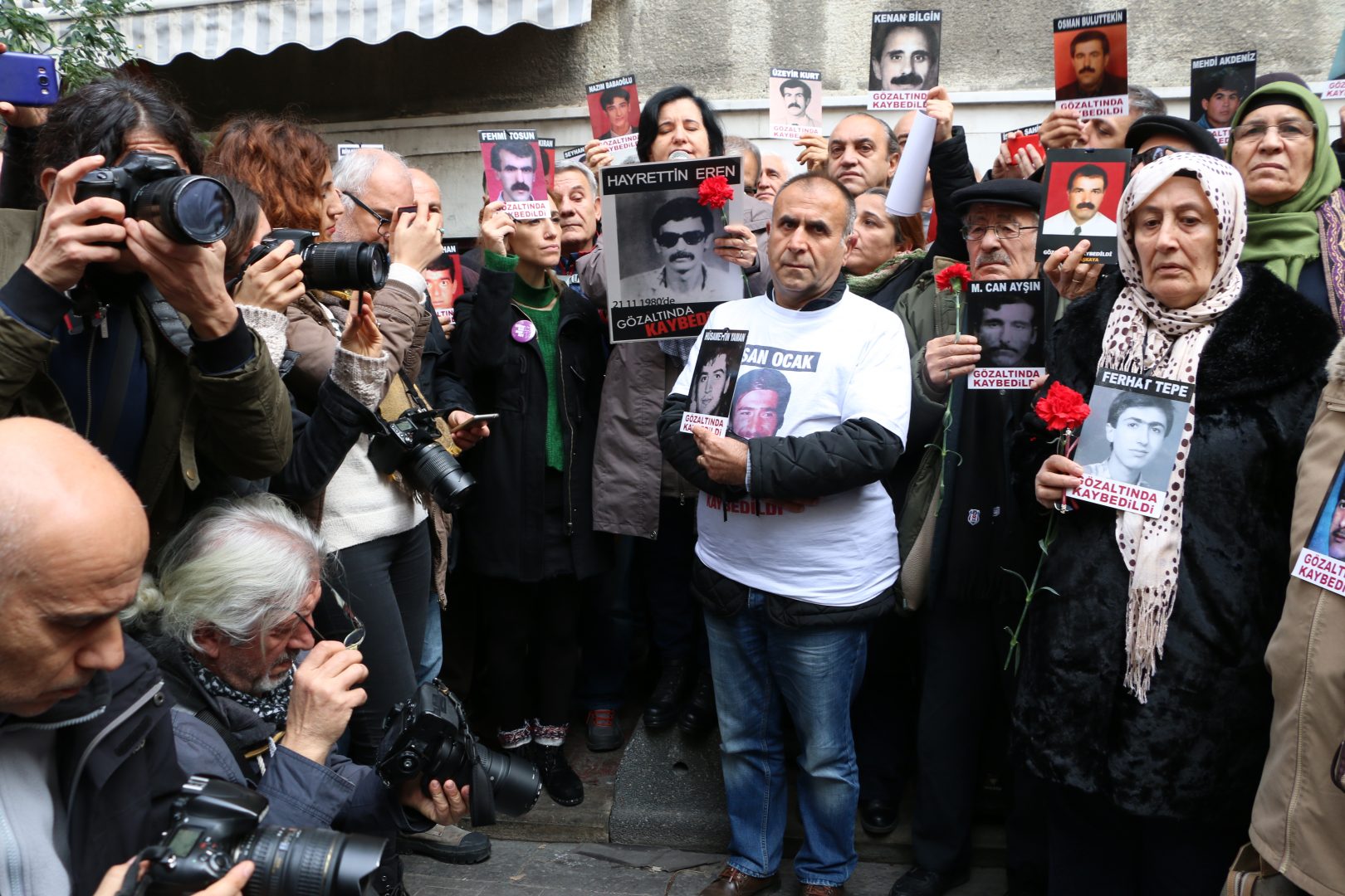 “Hayrettin Eren 38 yıl önce 12 Eylül cuntacıları tarafından katledildi. Hayrettin Eren ve Hayrettin Erenler bu coğrafyada yaşayan insanlara doğruyu güzel olanı yaşatmak için yola çıkmışlardı ama 12 Eylül zihniyetiyle yolları kesildi. 23 yıldır Galatasaray’da Hayrettin Eren belirsizliğini belirliye çevirmek için aynı zihniyet yolumuzu kesti, şimdi İnsan Hakları Derneğinin kapısında kamuoyuna sesimizi duyurmaya çalışıyoruz.”