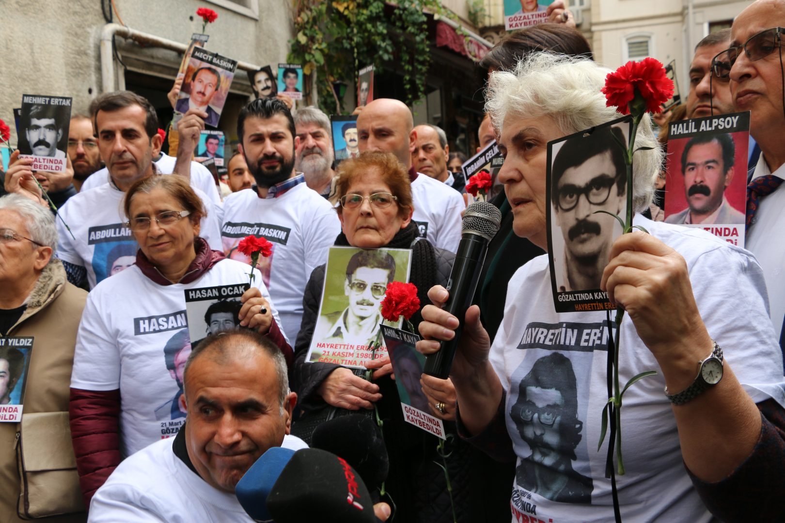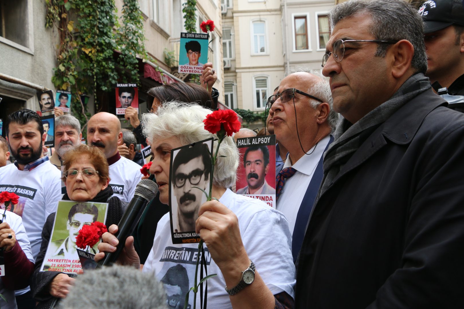 “38 yıl önce biz Hayrettin Eren’i Gayrettepe’de kaybettik. Faillerinden hesap sormak için 38 yıldır sesimizi yükseltiyoruz. Devlet Suudi Arabistan konsolosluğunda kaybedilen Cemal Kaşıkçı’nın failini yargılamak istiyor, akıbetini soruyor, bu çok insani bir şey, olması gereken de bir şey. 38 yıl kaybettiklerimizin akıbetini sorduğumuz için terörist ilan edildik. O zaman ya devlet teröristlik yapıyor ya da biz insanlık yapıyoruz.”
