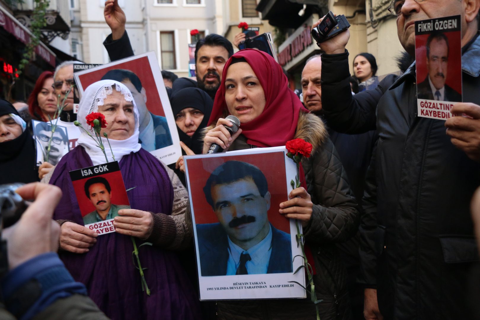 Açıklamanın ardından Taşkaya’nın eşi Sultan Taşkaya ve kızı Serpil Taşkaya birer konuşma yaptı. Konuşmalarda Hüseyin Taşkaya’yı 25 yıldır aradıkları vurgulandı; kayıp yakınları olarak Galatasaray Meydanı konusunda ısrarlı oldukları ifade edildi.
