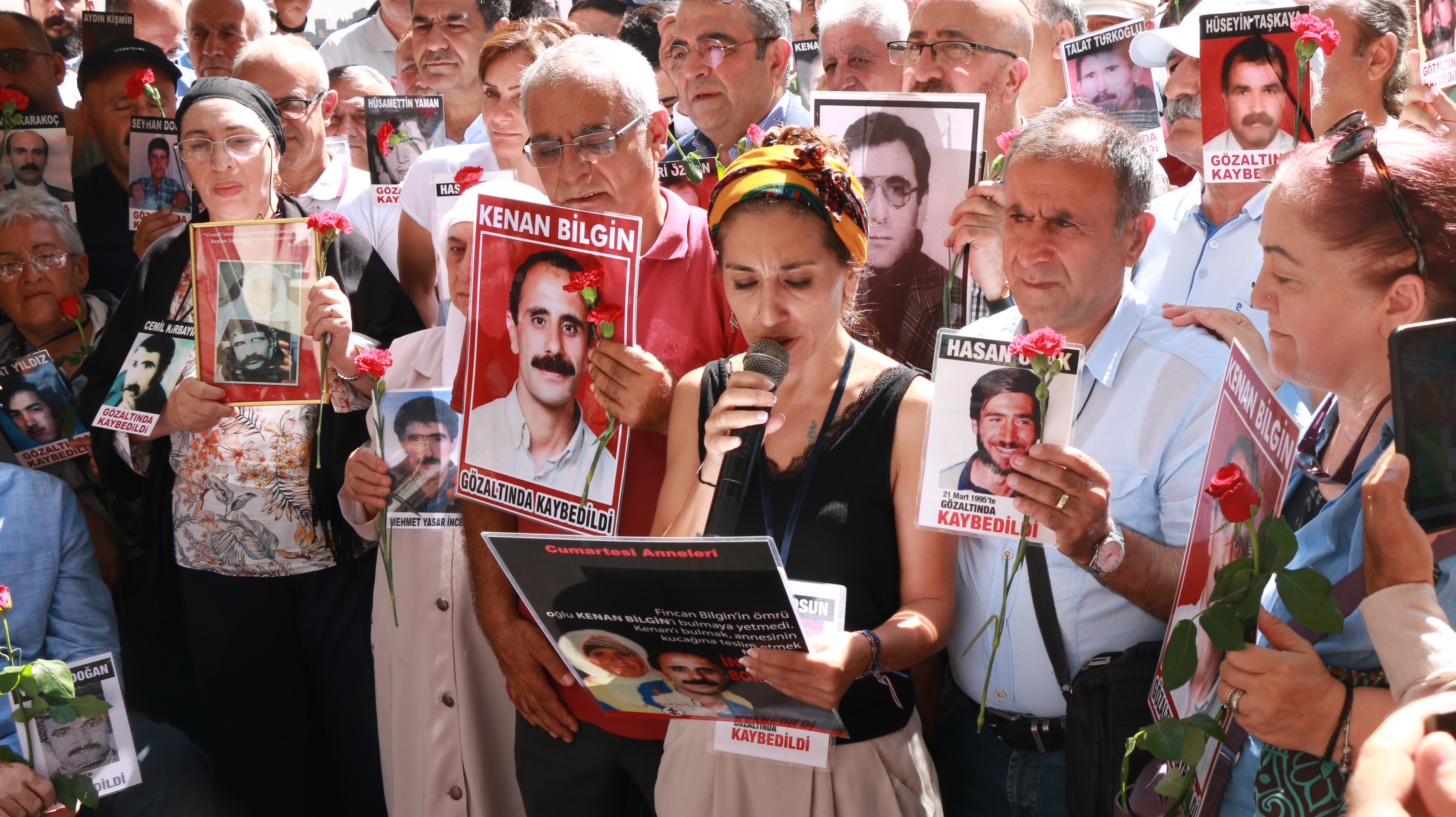 Bu hafta gözaltında kaybedilen Kemal Bilgin’in akıbeti soruldu. Basın açıklamasını gözaltında kaybedilen Fehmi Tosun’un kızı Besna Tosun okudu.