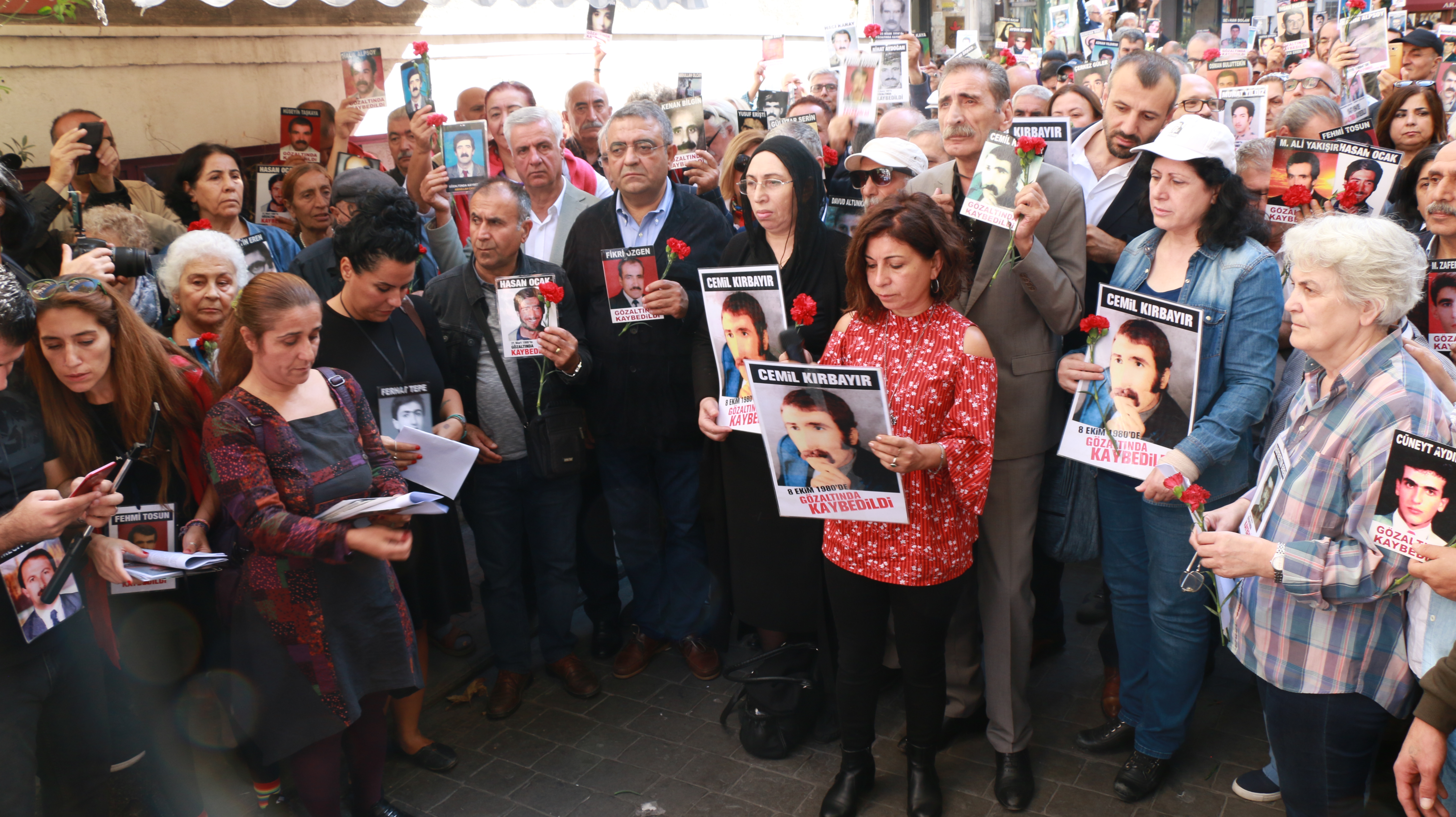 Cumartesi İnsanlarının ısrarlı tutumuyla basın açıklaması İHD binasının önünde okundu. İHD İstanbul Şube Başkanı Av. Gülseren Yoleri’nin okuduğu açıklama da, 759. haftalarında 12 Eylül askeri darbesinin ilk kaybı olan Cemil Kırbayır için buluştukları vurgulandı. Yoleri, “105 yıllık ömrü oğlunu bulmaya yetmeyen Berfo Kırbayır’ın hakikate, adalete ve Cemil’e ulaşma mücadelesi, insan haklan, demokrasi ve barış mücadelesinin ayrılmaz bir parçasıdır. Cemil Kırbayır ve tüm kayıplarımızı aramaktan, 60 haftadır bize yasaklanan kayıplarımızla buluşma mekanımız olan Galatasaray’dan vazgeçmeyeceğiz” dedi.