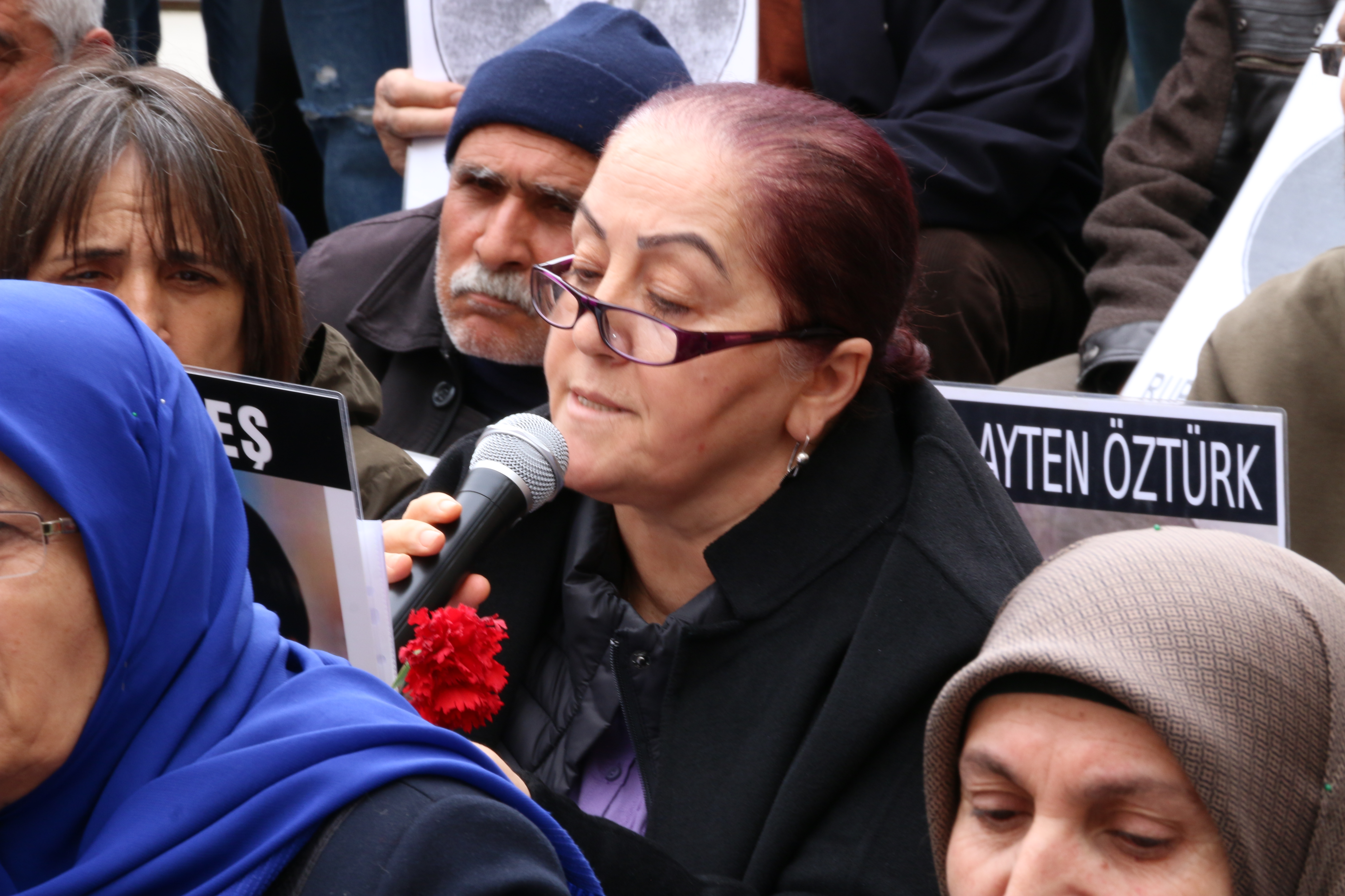 Haftanın basın metnini Cumartesi insanlarından Nimet Tanrıkulu okudu. “Yaşam hakkını ihlal eden bir suçun işlenmiş olma ihtimali öğrenildiği anda ulusal merciiler herhangi bir şikayete bağlı olmaksızın etkin soruşturma başlatma yükümlülüğü altındadır. Uluslararası hukuka göre kamu görevlilerinin yaşam hakkı ihlali ve işkence ile suçlandıkları davalar, zaman aşımı nedeniyle sonlandırılamaz ve af nedeniyle kapatılamaz.” diyen Tanrıkulu, AİHM’in hükümetin sorumlu olduğuna hükmettiği kayıp davalarının iç hukukta takipsizlik, zaman aşımı ya da beraatle sonuçlandırıldığını kaydetti.