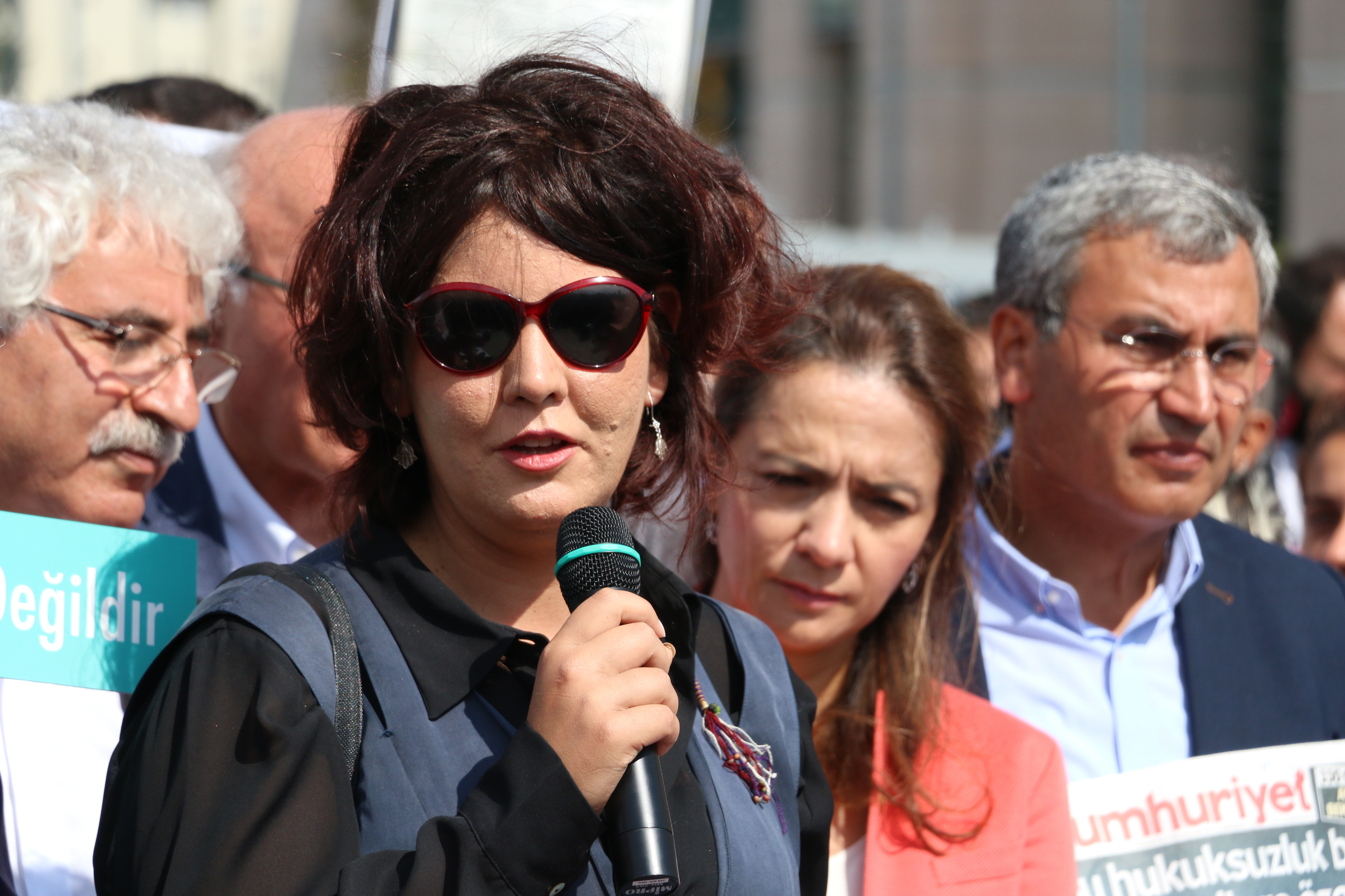 Dünyanın hiçbir yerinde gazetecilerin gazetecilik yaptıkları için yargılanmadıklarını söyleyen Karakaş, Türkiye’nin Çin’den sonra en çok gazetecinin tutuklu bulunduğu ülke olduğunu kaydetti. Hak, hukuk ve adalet diyenlerin tutuklanmalarına evet demeyeceklerini ifade eden Karakaş, açlık grevinde olan tutuklu eğitimciler Nuriye Gülmen ve Semih Özakça’nın haksız bir şekilde işlerinden edildiklerini ve bu haksızlığa karşı tepkilerini dile getirmek için açlık grevine başladıklarını bunun için de gözaltına alındıklarını kaydetti.