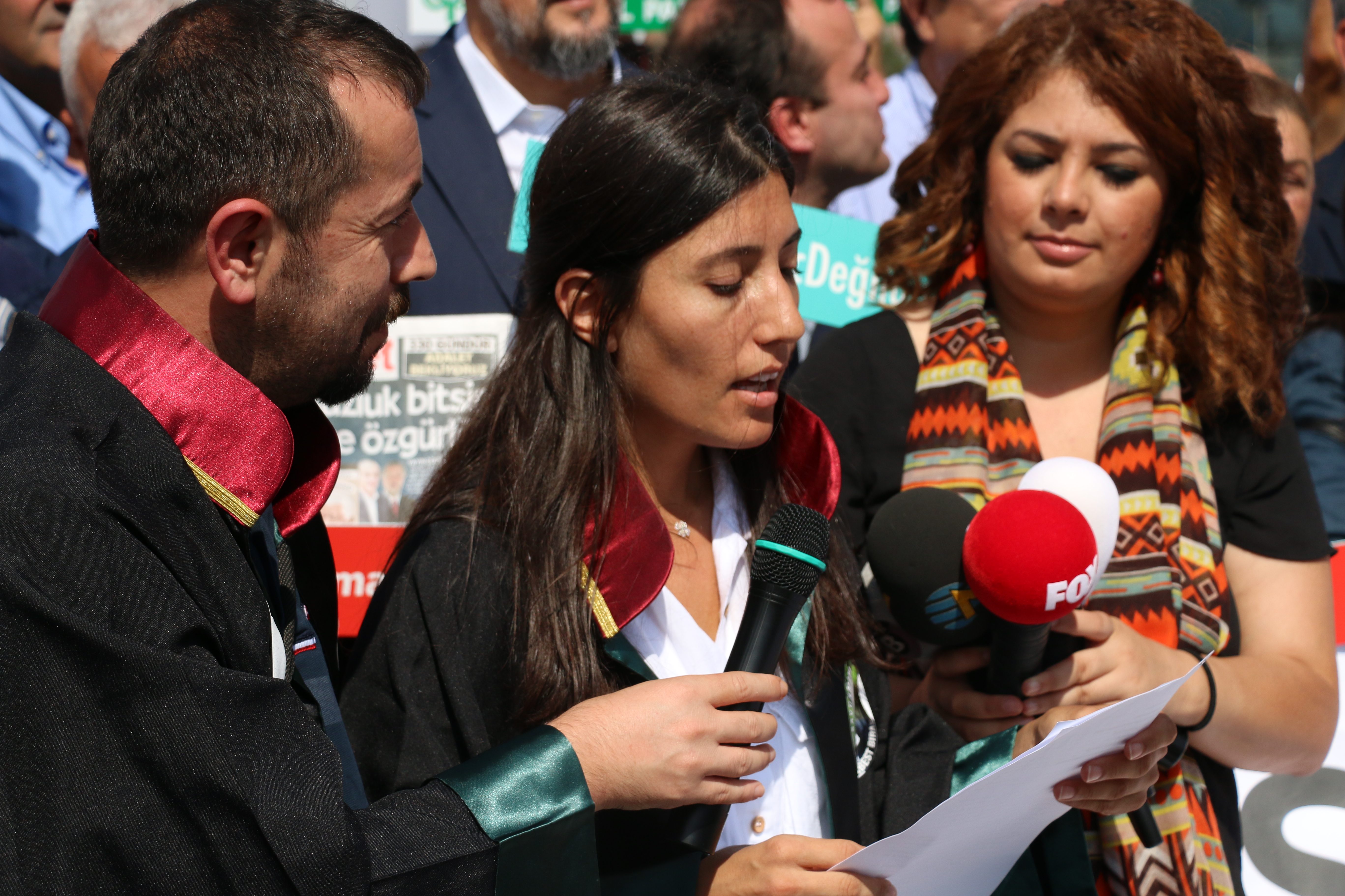 Eren’in ardından hukuk kurumları adına basın metnini okuyan avukat Yaprak Türkmen, 1 yılı aşkın bir süredir devam eden OHAL’in muhaliflere yönelik bir cadı avına dönüştüğünü belirtti. Açlık grevinin 201. Gününde olan eğitimciler Nuriye Gülmen ve Semih Özakça’ya değinen Türkmen, eğitimcilerin siyasi bir kararla tutuklandıklarını ve taleplerini karşılanması yerine ölümle karşı karşıya getirildiklerini kaydetti. Halkın Hukuk Bürosu’na yapılan baskınla 14 avukatın gözaltına alınarak 9 gün boyunca bu avukatlara sistematik işkence uygulayanların hala görev başında olduklarını söyleyen Türkmen, avukatların ise sadece mesleklerini icra edip Nuriye ve Semih’in avukatlığını yaptıkları için tutuklandıklarını belirtti.