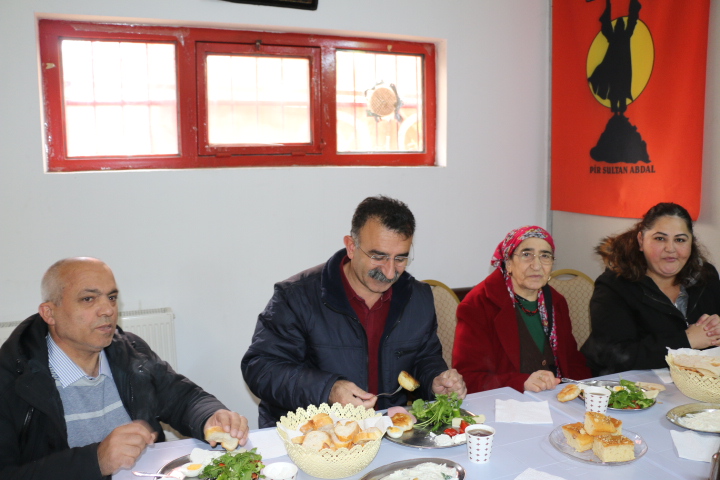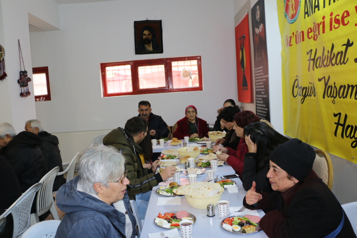 PİRHA- Demokratik Alevi Derneği (DAD) Ana Fatma Cemevi yaklaşık 2 yıldır ücretlerini alamayan ve 21 gündür direnişte olan TOKİ işçileri için dayanışma kahvaltısı düzenlendi.