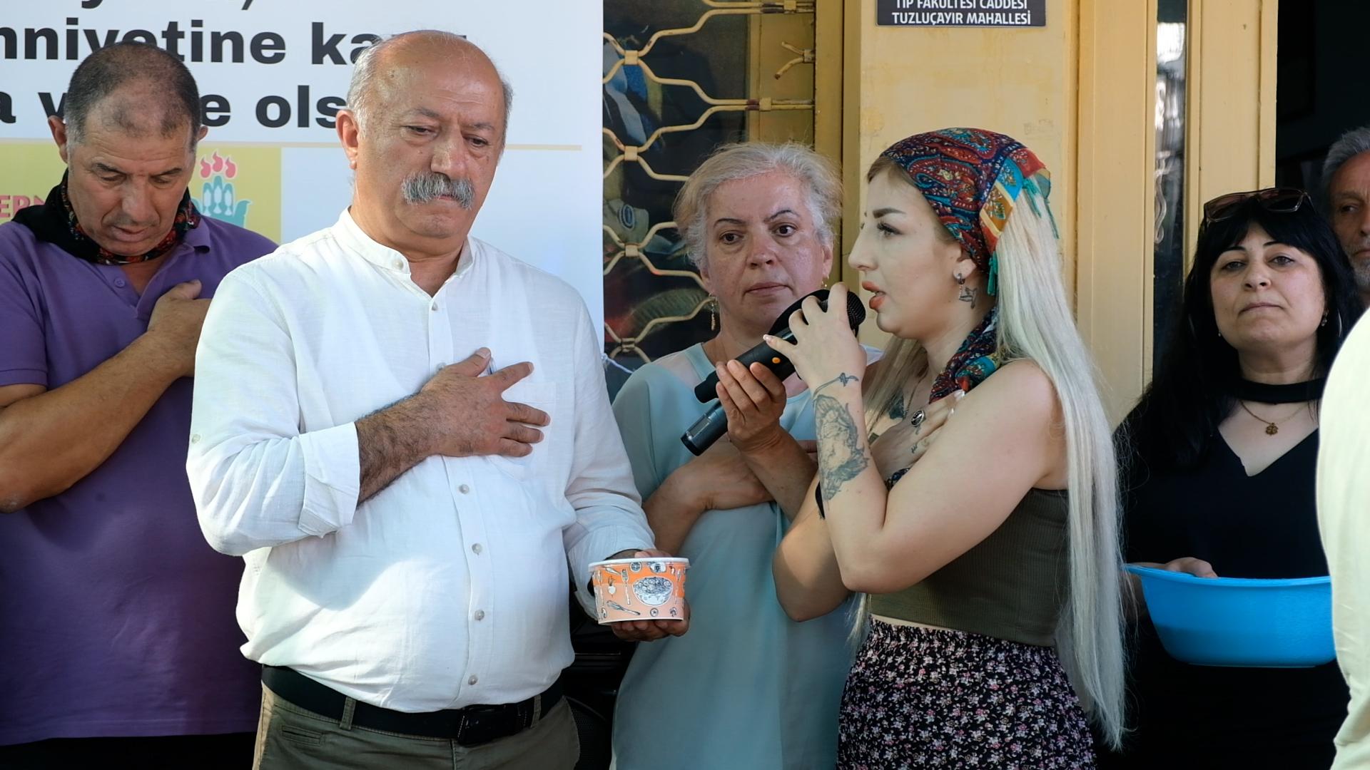 “Zor zamanlardan geçiyoruz. Siyasal iktidar içeride dışarıda tecrit uyguluyor. İktidarın; inancımıza, kimliğimize, dilimize tahammülü yoktur. Seçilen yöneticilerimiz şu an da kayyumlarla yönetilmek isteniyor. İrademiz yok sayılıyor. Aşuremiz birliğe ve barışa versile olsun diyoruz. Sizin lokmalarınızla yaptığınız aşuremizi, beraber pay edeceğiz. Siyasi iktidar bir taraftan da bizlere saldırırken, diğer taraftan da bizleri yanlarında tutmak, asimile etmek için elinden geleni yapıyor. Bizim hiçbir zaman DAD olarak hiçbir siyasi kurumla bağımız yoktur. Hiçbirinden destek almadık.”