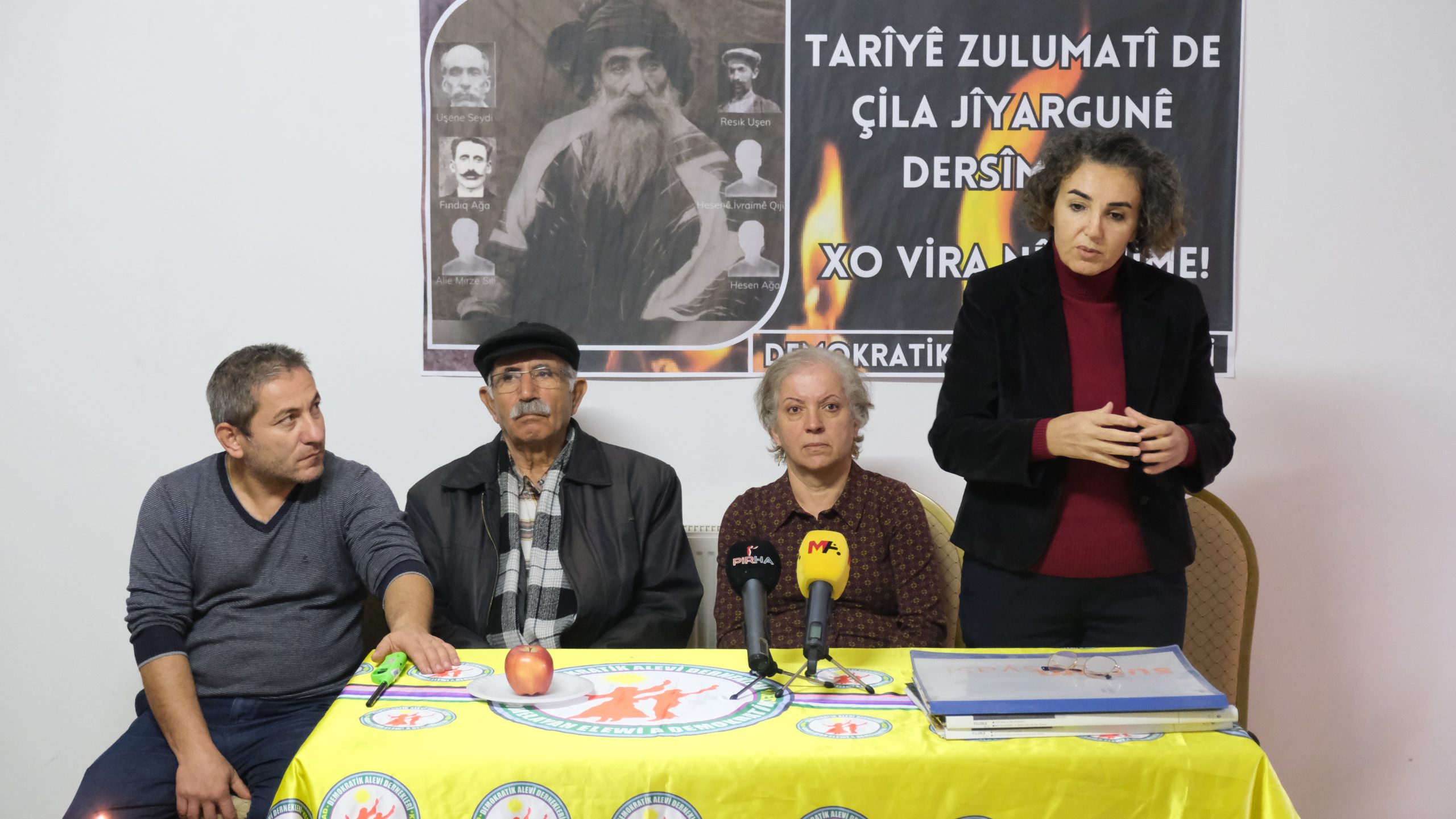Baba Mansur Ocağı dedelerinden Seyfi Elaldı, bu katliamın üç aşamada gerçekleştiğini belirterek, ” Seyit Rıza üzerinden Dersim Katliamı’nın meşrulaştırılması amaçlanmıştır. Kürt Alevilerini dağıtmak, Türkleştirmek amaçlanmıştır. Sebeplerinden biri ekonomiktir. Milli ve siyasi sebepleri vardır, sebebi Kürt olmalarıdır. Asıl katliam daha önceleri başlamıştır. Biz intikam peşinde değiliz ama bizi anlasınlar. Toplu katliamdan sonra sürgünler daha sonra asimilasyon ve kültürel soykırım başlıyor. Alevi oldukları için, Kürt oldukları için bu katliama laik görülmüştür. Ben devlet adına Dersim’den özür diliyorum diyen Erdoğan tabii biz samimi bulmuyoruz ama tarihi bir belgedir bu artık. Alevilerin, Kültür Bakanlığı’na bağlanması kültürel bir katliamdır. Biz Kürtler, biz Aleviler birlikte ve kardeşçe yaşamak istiyoruz” dedi.