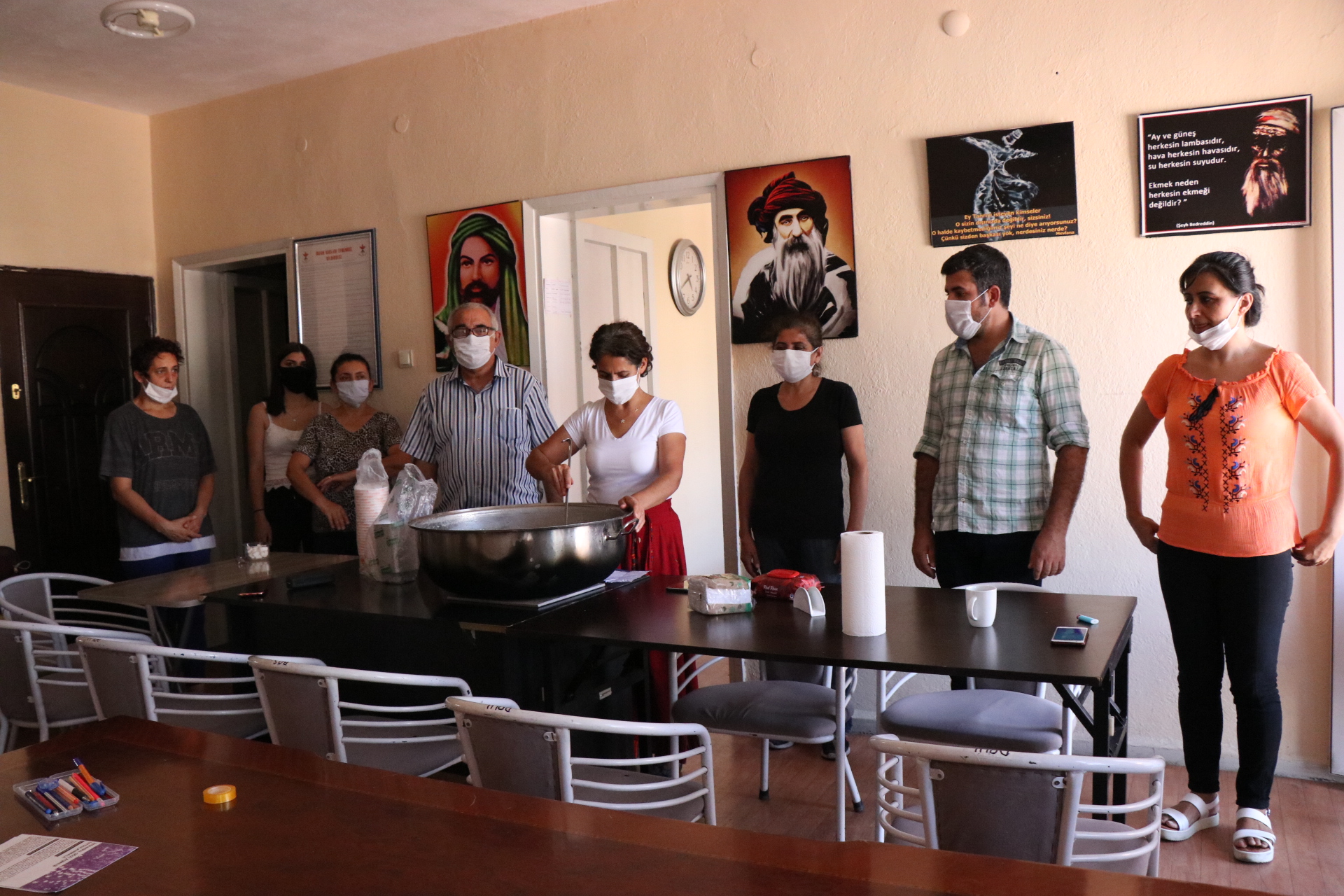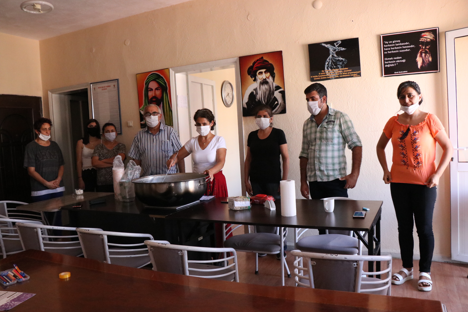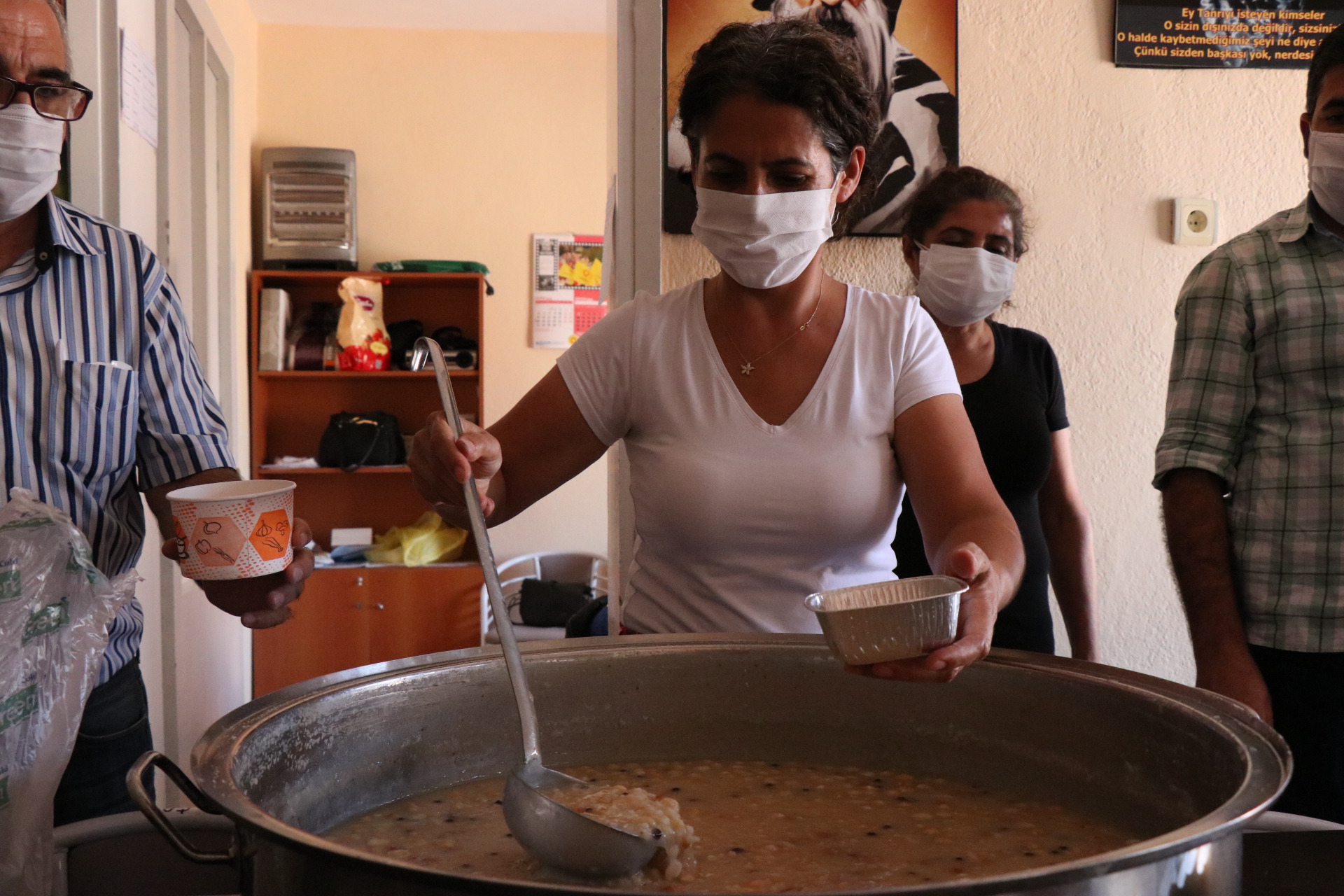 Pandemiden dolayı sınırlı sayıda üye davet ettiklerini belirten Bozkurt, “Gerçekten birbirimizi korumamız gerekiyor. Bu nedenle fazla kalabalık olmadık. Temsili bir aşure hazırladık ve bir kaç arkadaşı davet ettik. Umarım bu lanet olası hastalık insanlık içerisinden def olup gider” dedi.