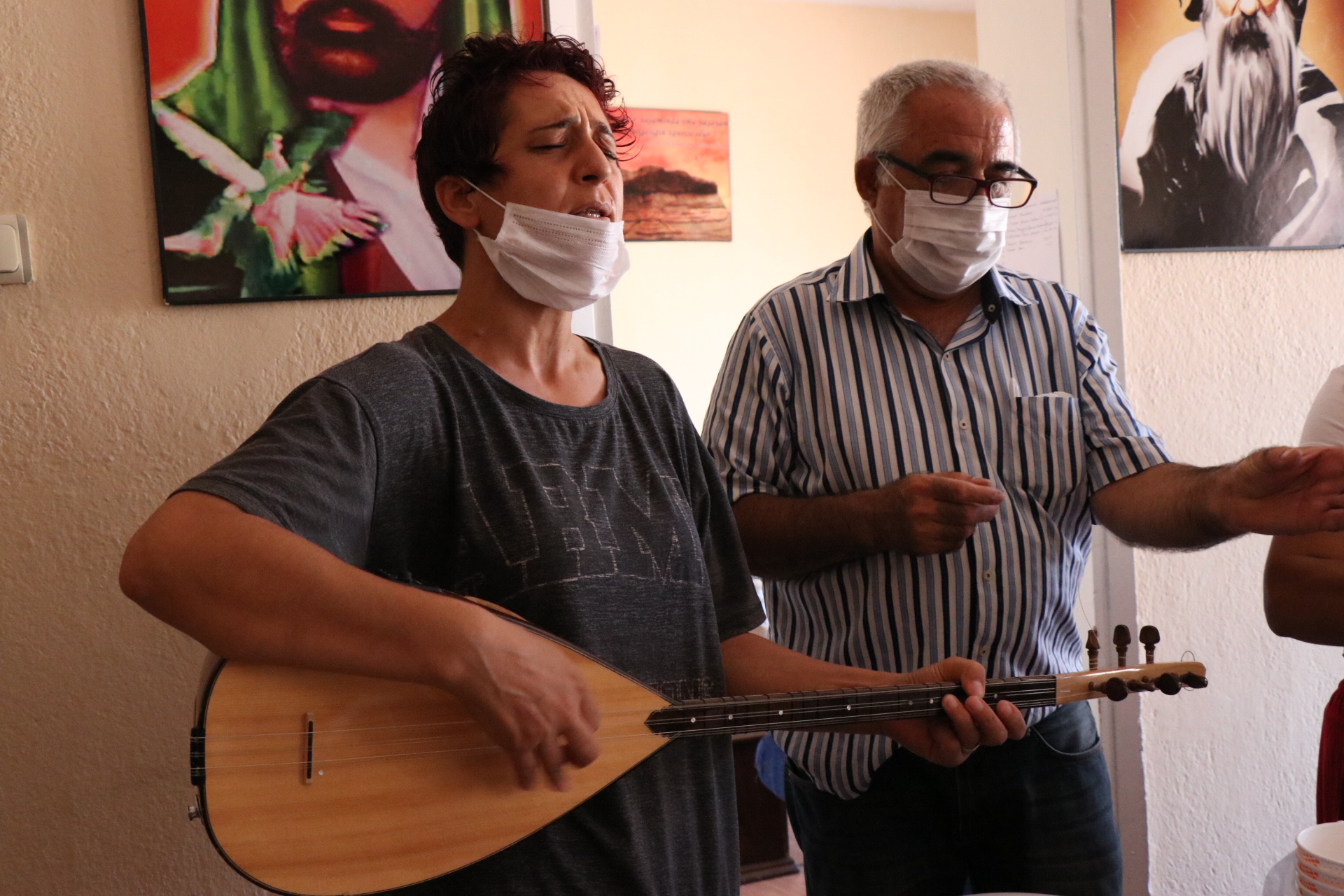Bozkurt’un konuşmasının ardından aşureler paylaşılırken zakir Şevda Çiçek de deyişler seslendirdi. PİRHA/İZMİR