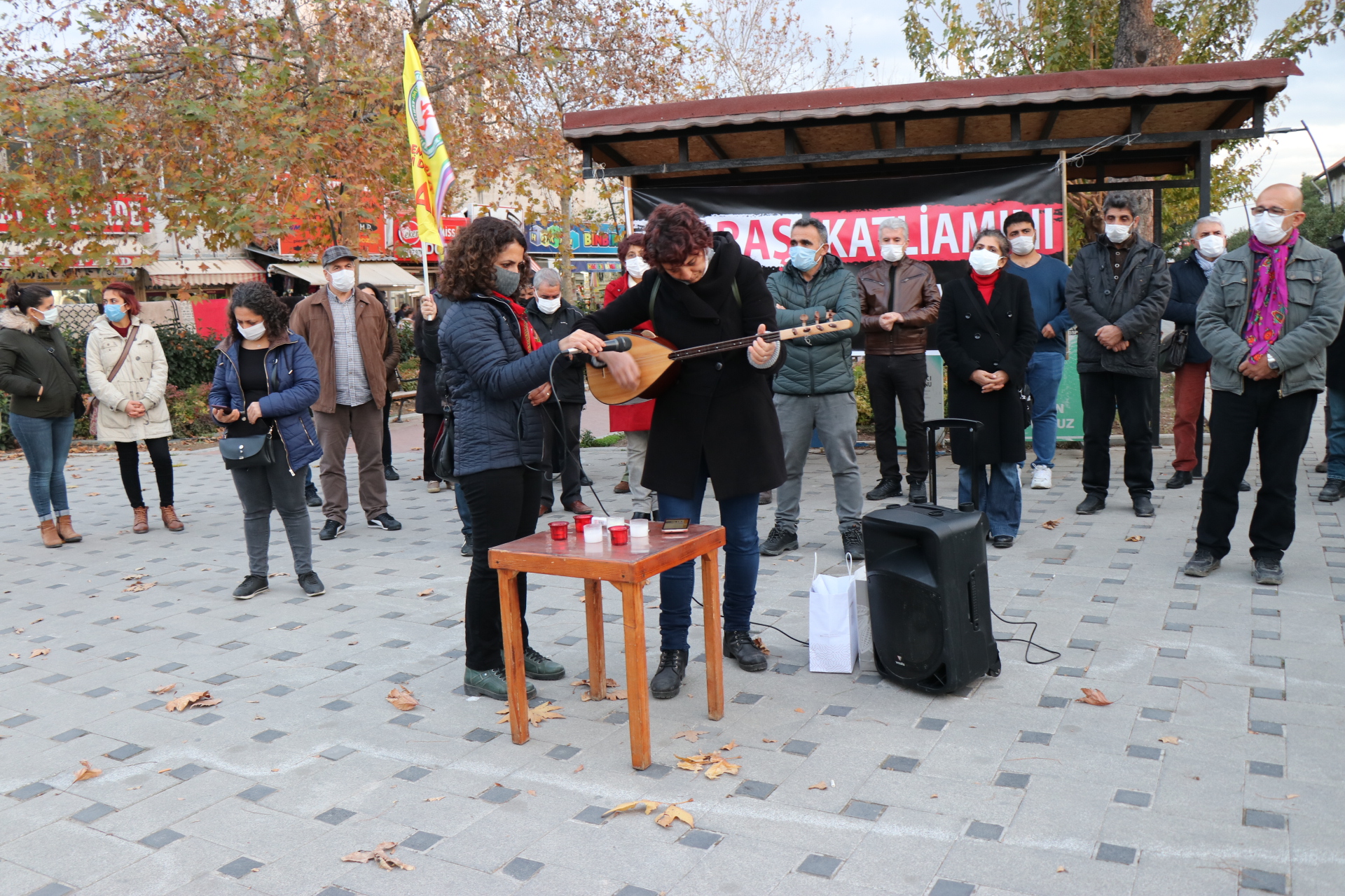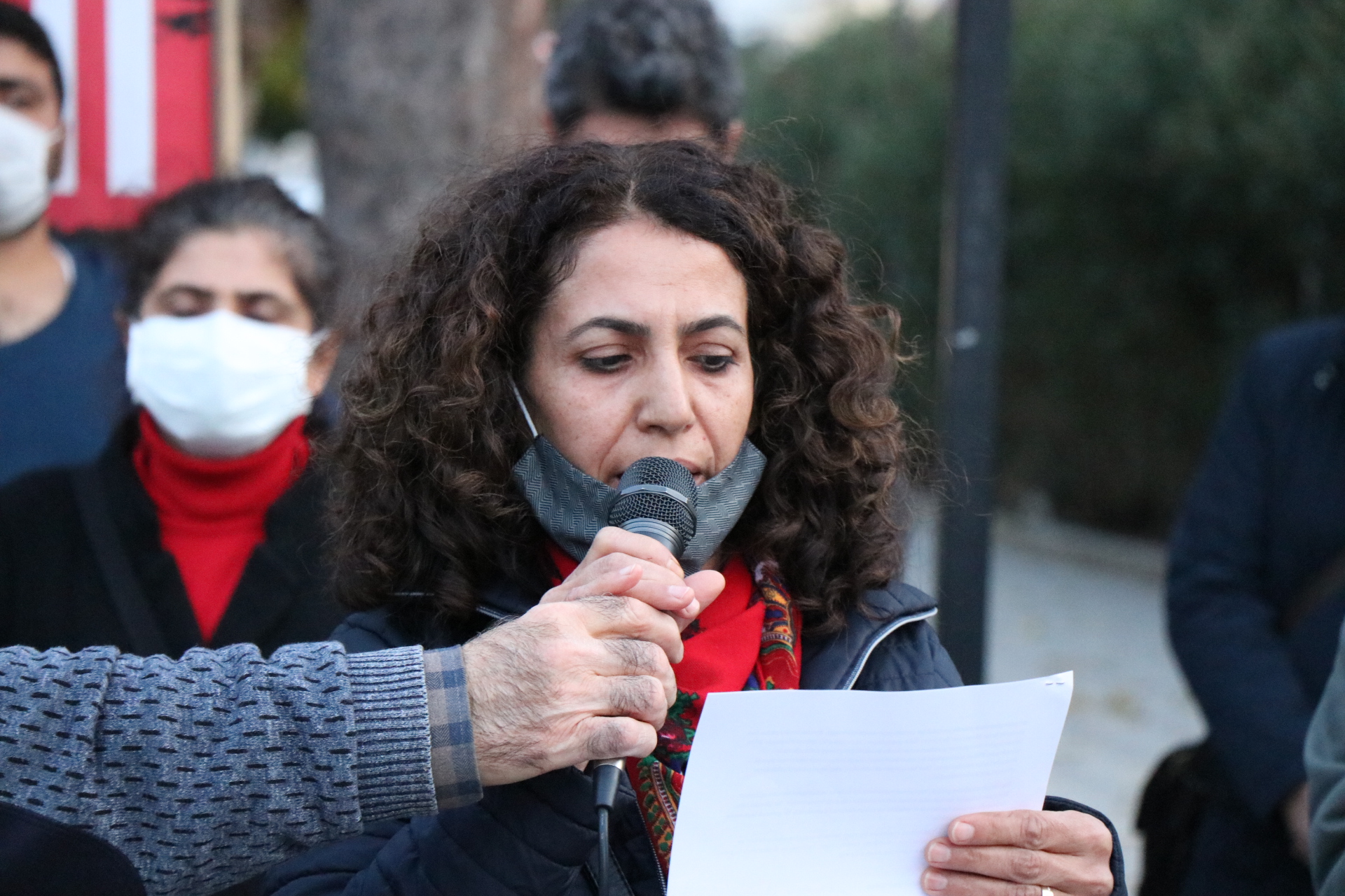 Basın açıklamasını okuyan DAD İzmir Şube Eş Başkanı Nebahat Çelik, tarihsel- toplumsal hakikatine bağlı kalan tüm Alevi süreklerinin süreklilik arz eden saldırılarla kuşatma ve tecride tabi tutulduklarını hatırlatarak toplu katliamların özellikle Alevi tarihsel yaşam alanlarında gerçekleştirilmesinin sadece dönemsel politikaların değil tarihsel politikaların da gereği olduğunu vurguladı.