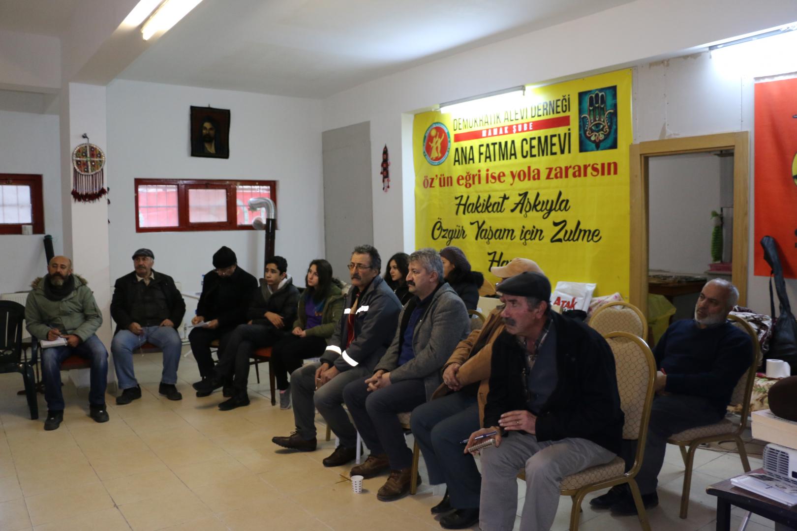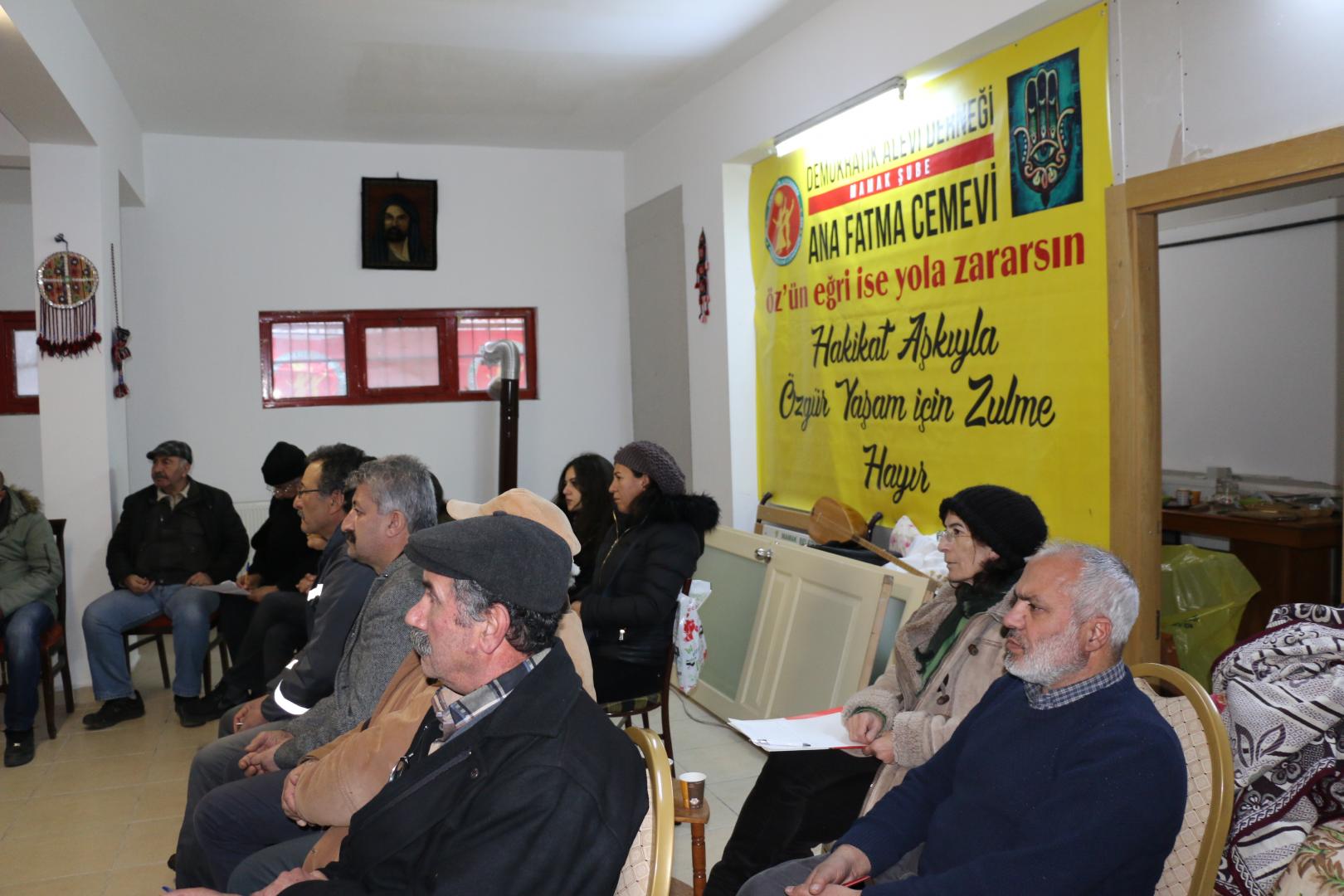 Demokratik Alevi Derneği Mamak Şube Ana Fatma Cemevi, Mamak bölgesinde cemi sadece cemevinde yapılır anlayışından çıkartarak evlerde yapabilmenin ilk adımını geçen ay gerçekleştirmiş, aynı zamanda bu çalışmaya paralel olarak kendi binasında 3 aylık bir programla Alevilik’te yol ve erkan felsefesini gerek kendi üyelerine, gerekse de örgütlenmeye çalıştığı Mamak ilçesine bağlı mahalle halkına yönelik eğitim çalışmasının ilk pratik adımını atarak anlatıcılığını Sinemilli Ocağı pirlerinden Süleyman Deprem’in üstlendiği çalışmanın 2. dersini gerçekleştirdi.