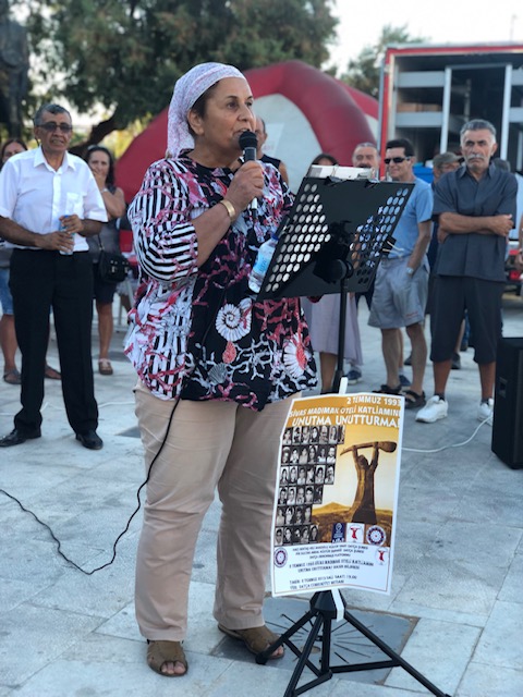 Meydanda bulunanların “Burada” dediği anmada basın açıklaması Leyla Dinçer tarafından okundu. Hasret Gültekin, Nesimi Çimen ve Muhlis Akarsu’nun türkülerinin yer aldığı anmaya, CHP Datça İlçe Başkanlığı, HDP Datça İlçe Başkanlığı, Datça Müzikseverler Derneği, Kadın İş Gücü Derneği, DAÇEV, Eğitim Sen ve bir çok sivil toplum kuruluşlarının üyeleri katıldı.