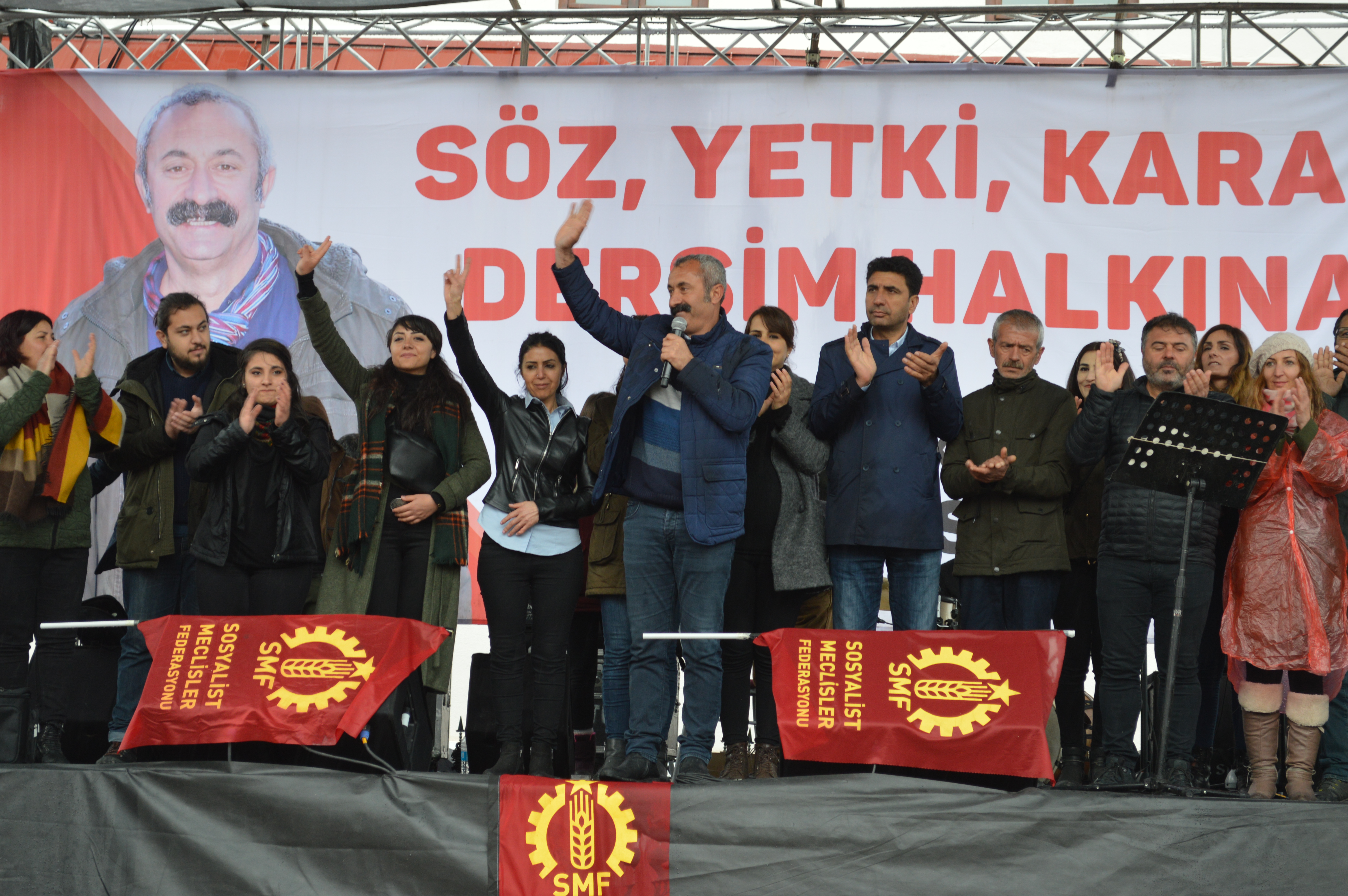 PİRHA- Dersim Demokratik Halk Dayanışması’nın Seyit Rıza Meydanı’nda gerçekleştirdiği mitinge belediye başkan adayları, dayanışma bileşenleri ve sanatçılar katıldı.