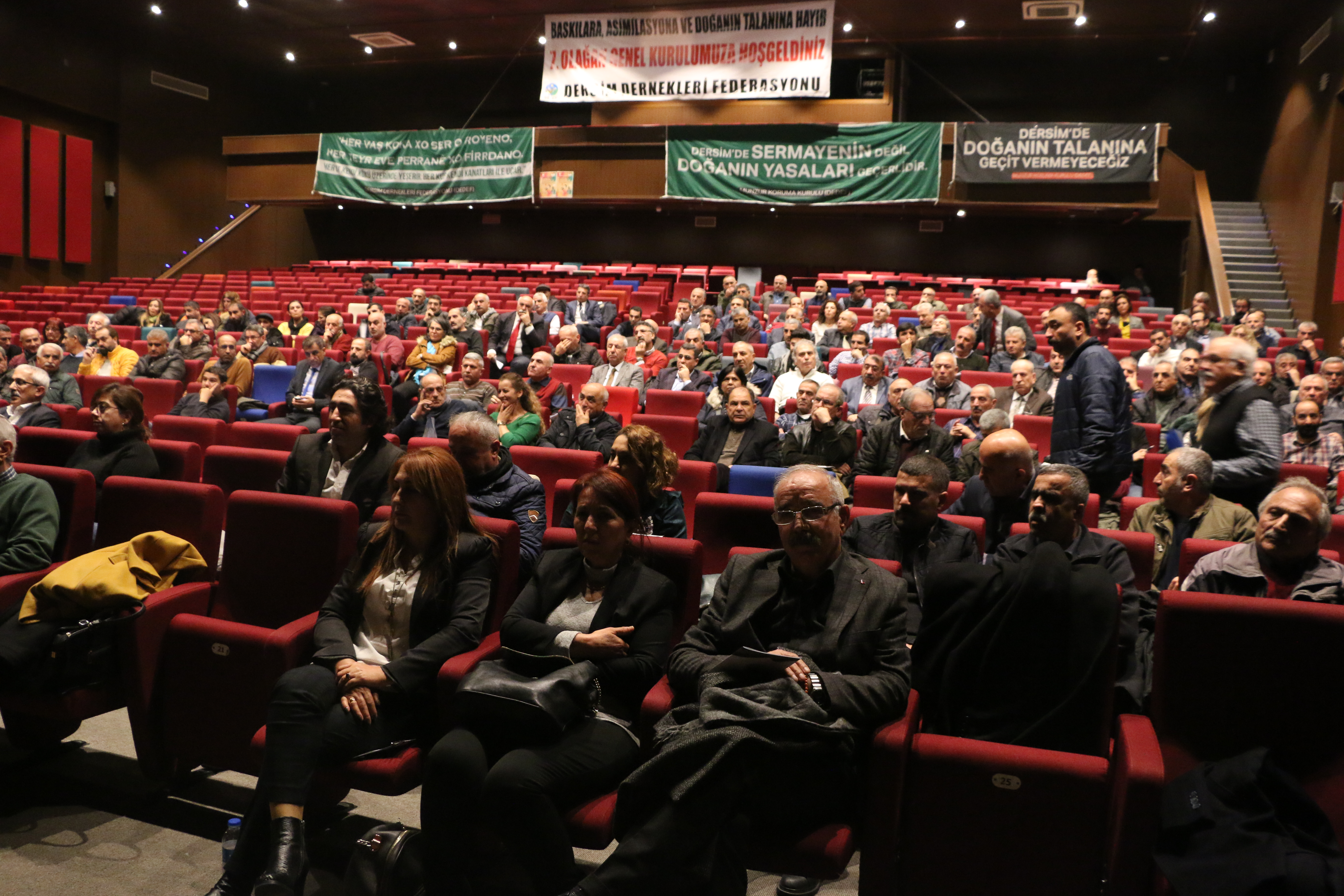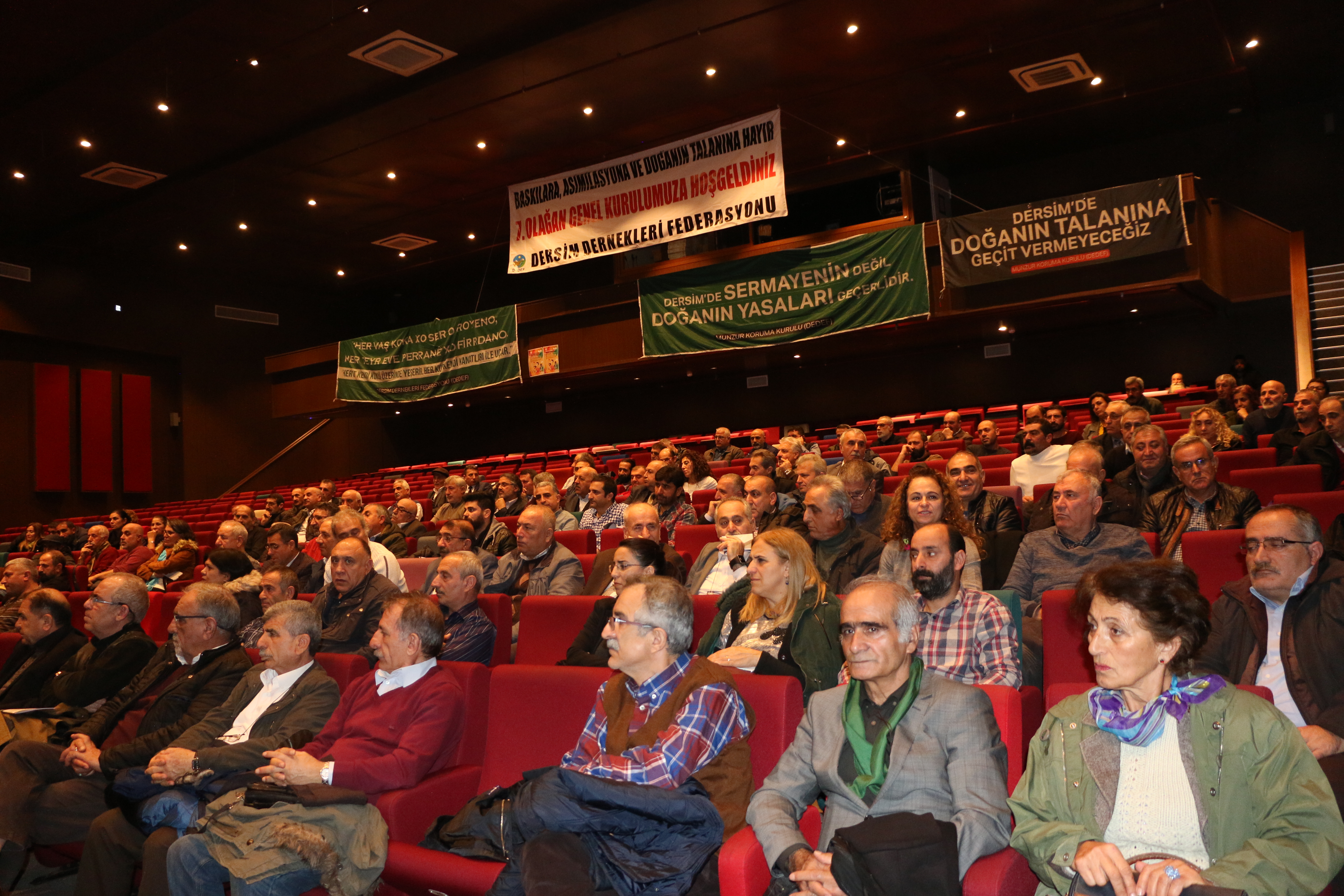 Kongrenin yapıldığı salona “Baskılara, asimilasyona ve doğanın talanına hayır”, “Dersim’de sermayenin değil doğanın yasaları geçerlidir”, “Dersim’de doğanın talanına geçit vermeyeceğiz”, “Tarihimize, kültürümüze, dilimize, inancımıza, toprağımıza, suyumuza, tohumumuza, Munzur’umuza dokundurtmayacağız”, Munzur Kültür ve Doğa Festivali halkın kalacak”, “Munzur özgür akacak”, “Dersim 37-38 hiçbir şeyi unutmadık, hiçbir şeyi affetmedik” yazılı pankartlar asıldı.