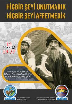 1937/38 yıllarında Dersim’de yaşanan katliamın izlerini travmalarla hala taşımakta ve yaşamakta olan biz Dersimlileri ve Dersim dostlarını anmamıza bekliyoruz.”