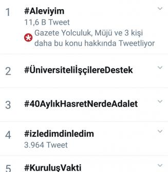 Twitter’da birinci sırada olan “Aleviyim” hashtagi her geçen dakika daha çok kullanıcının desteğini görüyor.