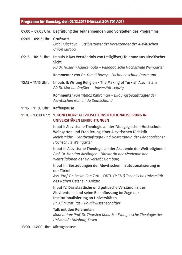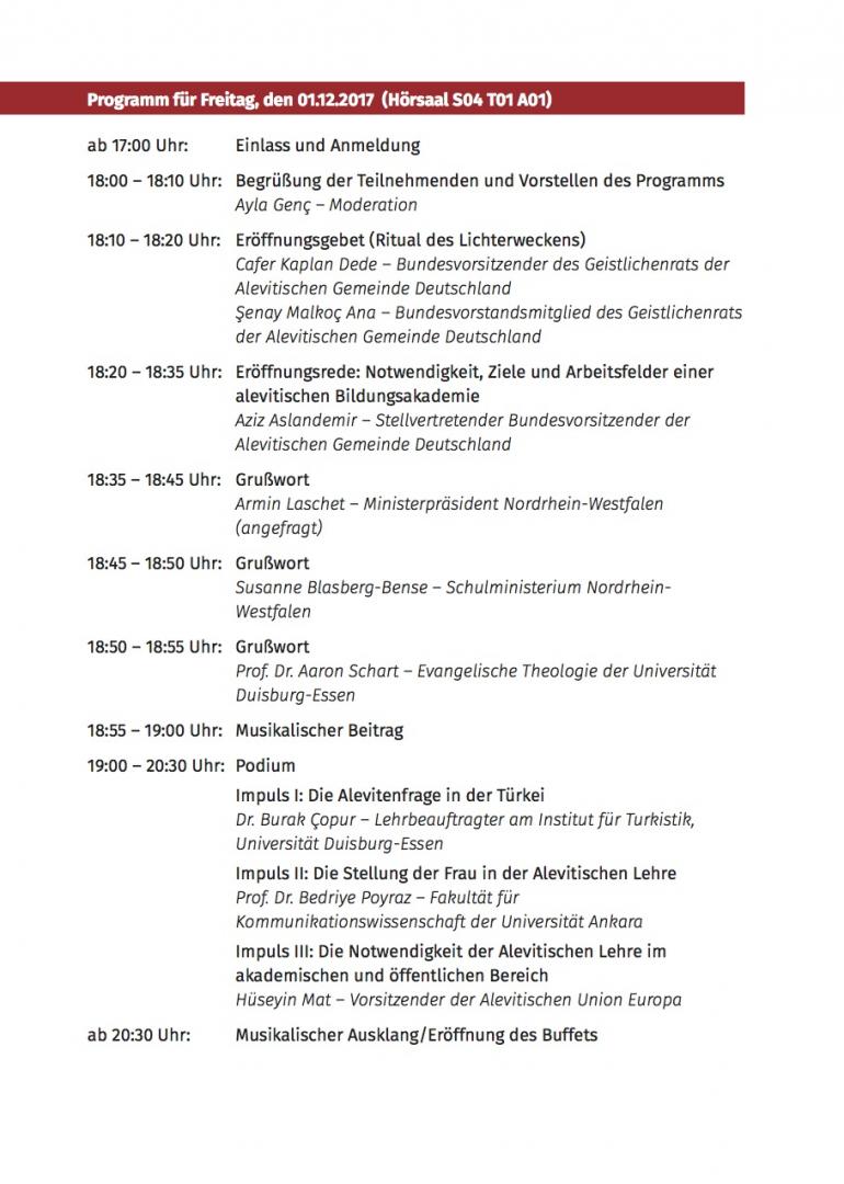 “Essen Üniversitesi’nde daha önce Protestan ve Katoliklerin Fakültesinde Aleviliği tanıtan etkinlikler oldu. Bununla birlikte çalışmalarımızı genişlettik. Gerek Almanya’da ve gerekse Avrupa’da Alevi öğretisinin büyük ölçüde tanınmıyor ve yüksekokullarda yeterince temsil edilmiyor. Bundan dolayı sempozyumda ama tema Alevilik dersleri. Öğretimizin yeni kuşaklara aktarılması büyük bir görev. Buna devletin sahip çıkması bizim için önemli. İlk yapacağımız sempozyumun ağırlığı okul ve üniversitedeki Alevilik eğitimi olsun dedik. Dolayısıyla Aleviliğin kurumlaşması.”