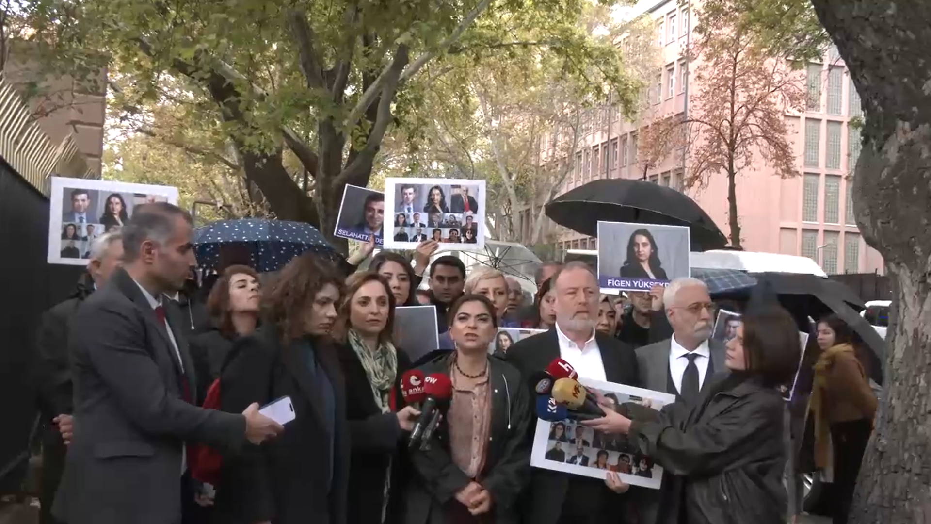 Sezai Temelli de, yaptığı kısa konuşmada, “Bu hukuk değildir, kumpastır. Adalet Bakanlığı’nın itirazını geri çekmesini bekliyoruz. Bir barış sürecinin, bunca fedakârlıkla ve sorumlulukla yürüttüğümüz müzakere sürecinin bizzat Adalet Bakanlığı eliyle zehirlenmesini kabul etmiyoruz. Adalet Bakanı, bu başvuruyu hemen geri çekmelidir” ifadelerine yer verdi.