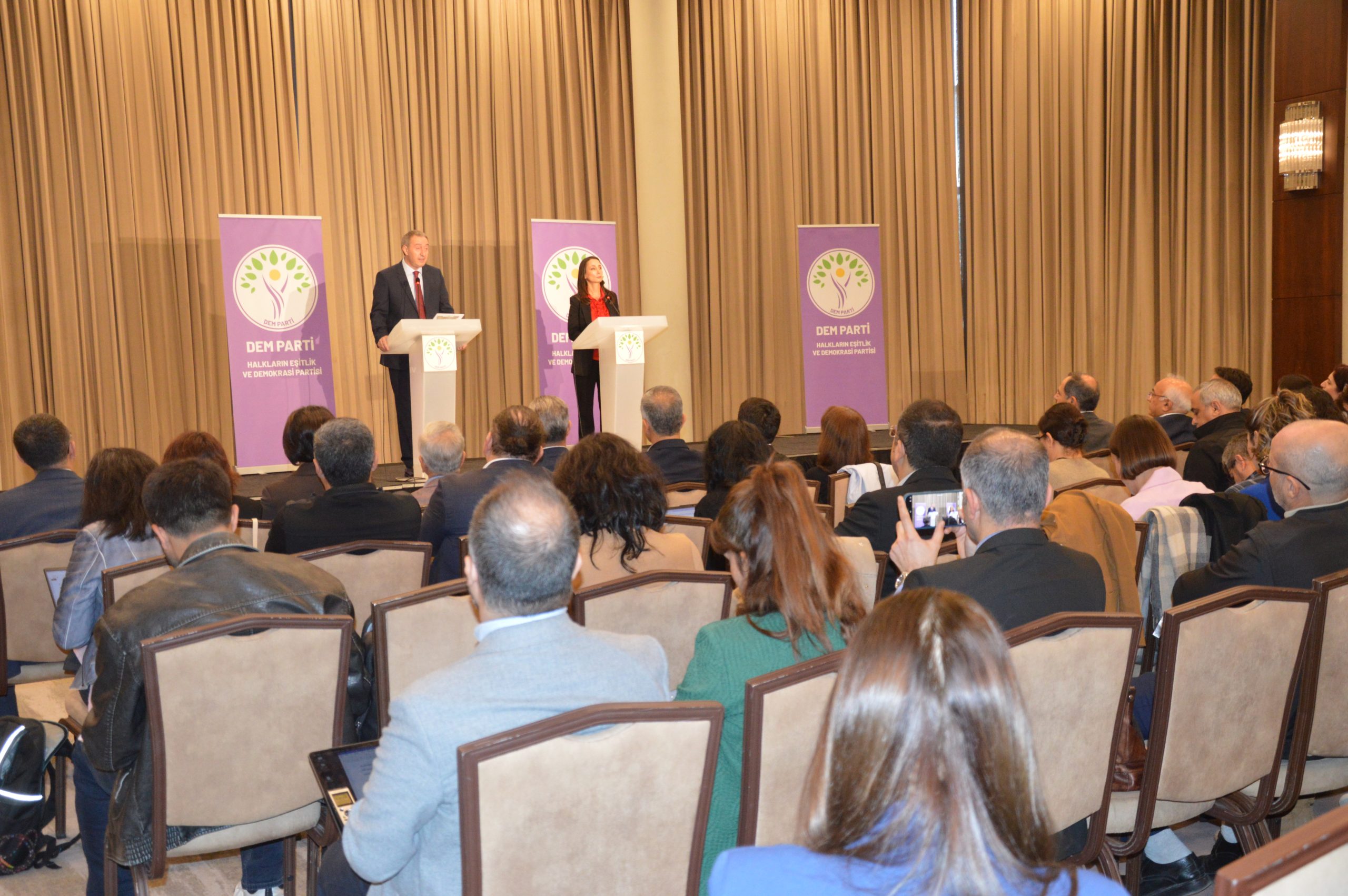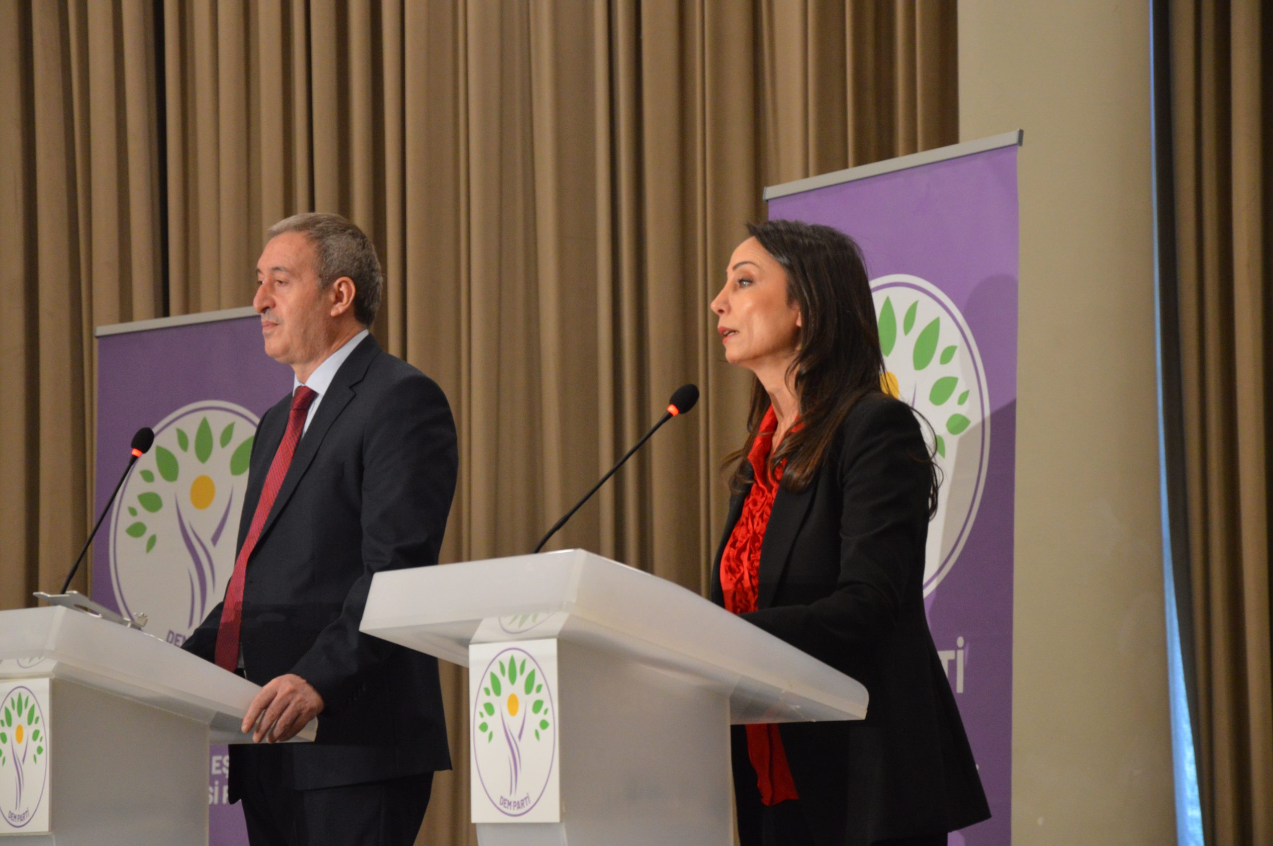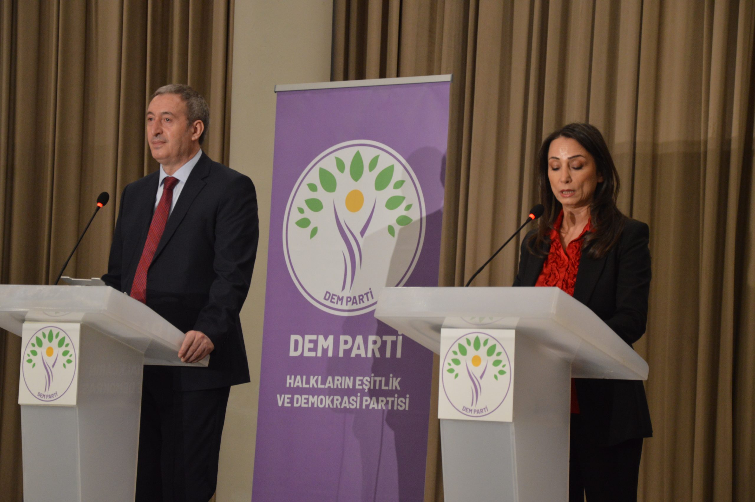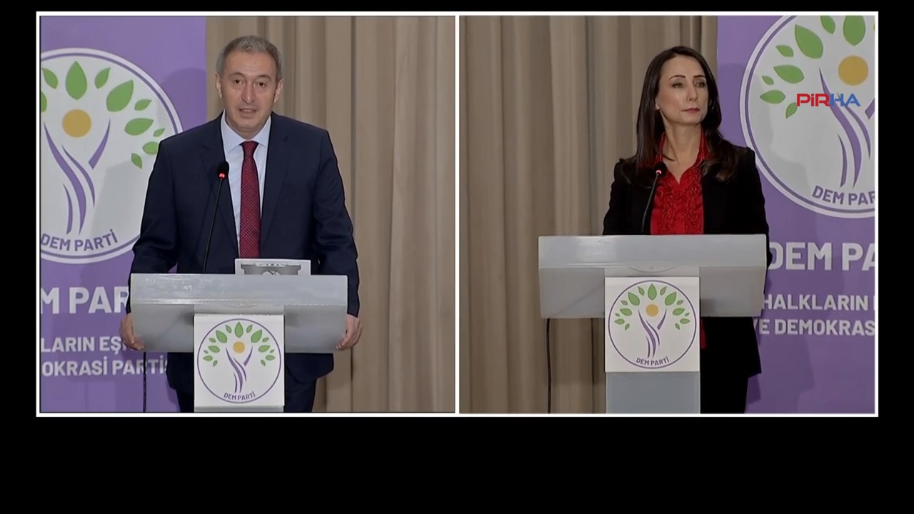 PİRHA- DEM Parti Eş Genel Başkanı Tülay Hatimoğulları ve Tuncer Bakırhan, Barış ve Demokratik Toplum Süreci’ndeki son gelişmelere ilişkin basın toplantısı gerçekleştirdi. Bakırhan, demokrasiden ve yaşamdan yana olan herkesin emeğiyle doğan bir süreçte kritik bir eşiğin daha aşıldığını belirtirken,  Hatimoğulları, ” Bu sürecin yeni aşamasında hukuki ve siyasi adımların atılması son derece önemli olacaktır. İkitidar, toplumun sesini, barış, demokrasi talebini duymalıdır” dedi.