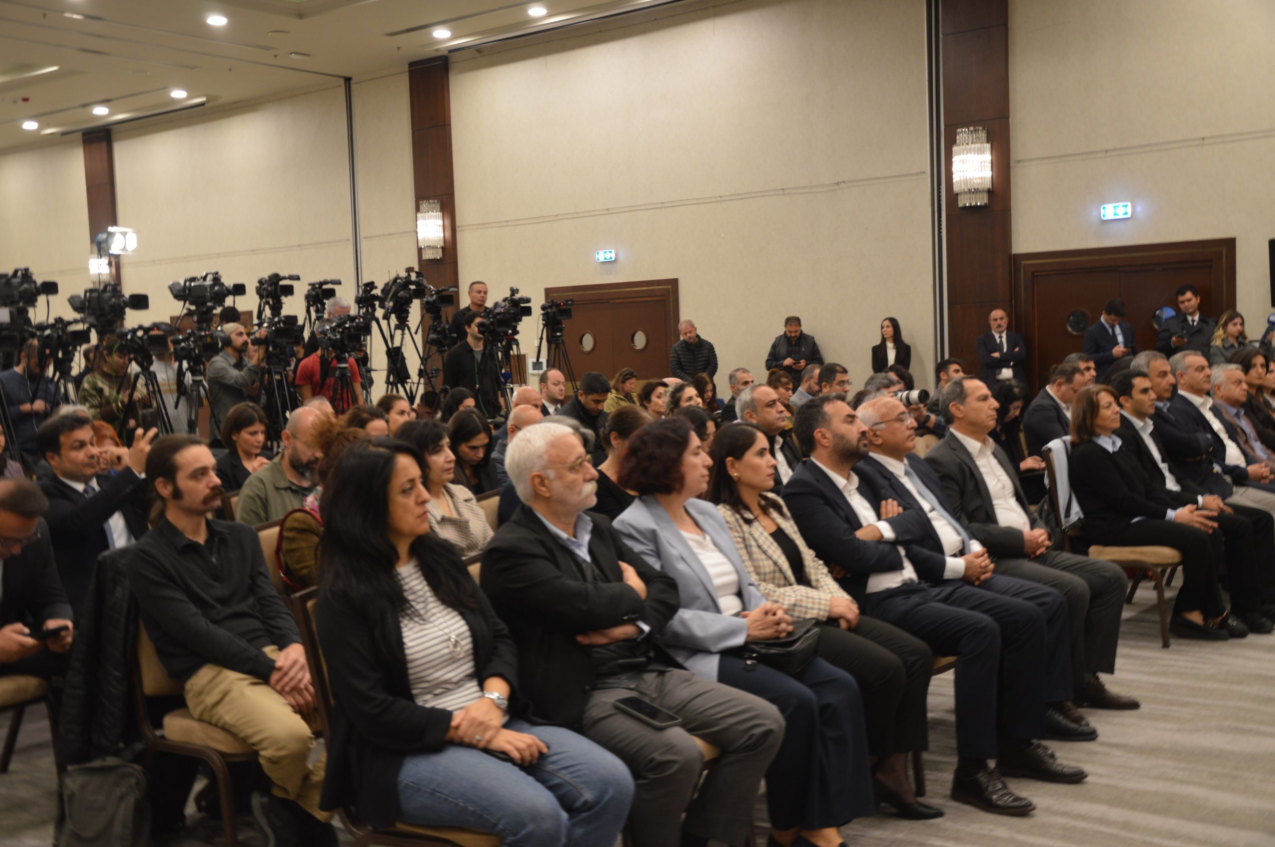 Halkların Eşitklik ve Demokrasi Partisi (DEM Parti) Eş Genel Başkanları Tülay Hatimoğulları ve Tuncer Bakırhan, Kürt Özgürlük Hareketi yönetiminin güçlerini geri çekme kararını ve süreçte gelinen son aşamaya ilişkin basın toplantısı düzenledi.