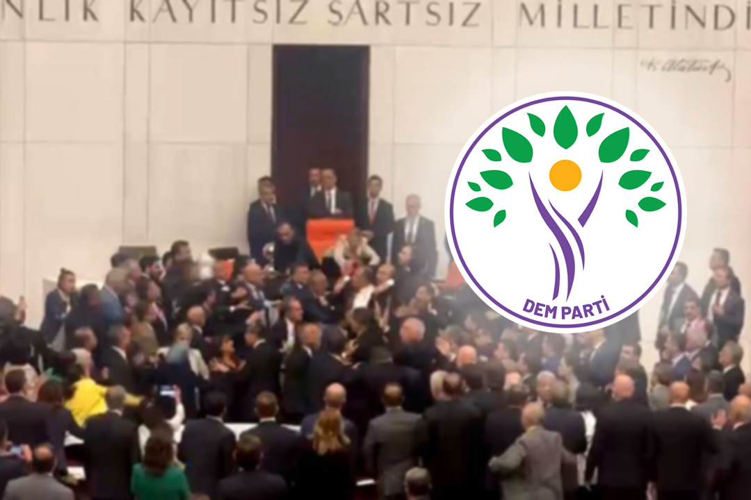 PİRHA- Tutuklu TİP Milletvekili Can Atalay hakkındaki kararın TBMM’de görüşüldüğü sırada AKP’li milletvekillerinin saldırıda bulunması sebebiyle DEM Parti Grup Başkanvekili Gülistan Kılıç Koçyiğit yaralandı. Saldırıyı kınayan DEM Parti Eş Genel Başkanları Tuncer Bakırhan ve Tülay Hatimoğulları, “Kadın milletvekillerimize AKP’li erkek milletvekilleri tarafından saldırı yapılması siyasi haydutluktur” dedi.