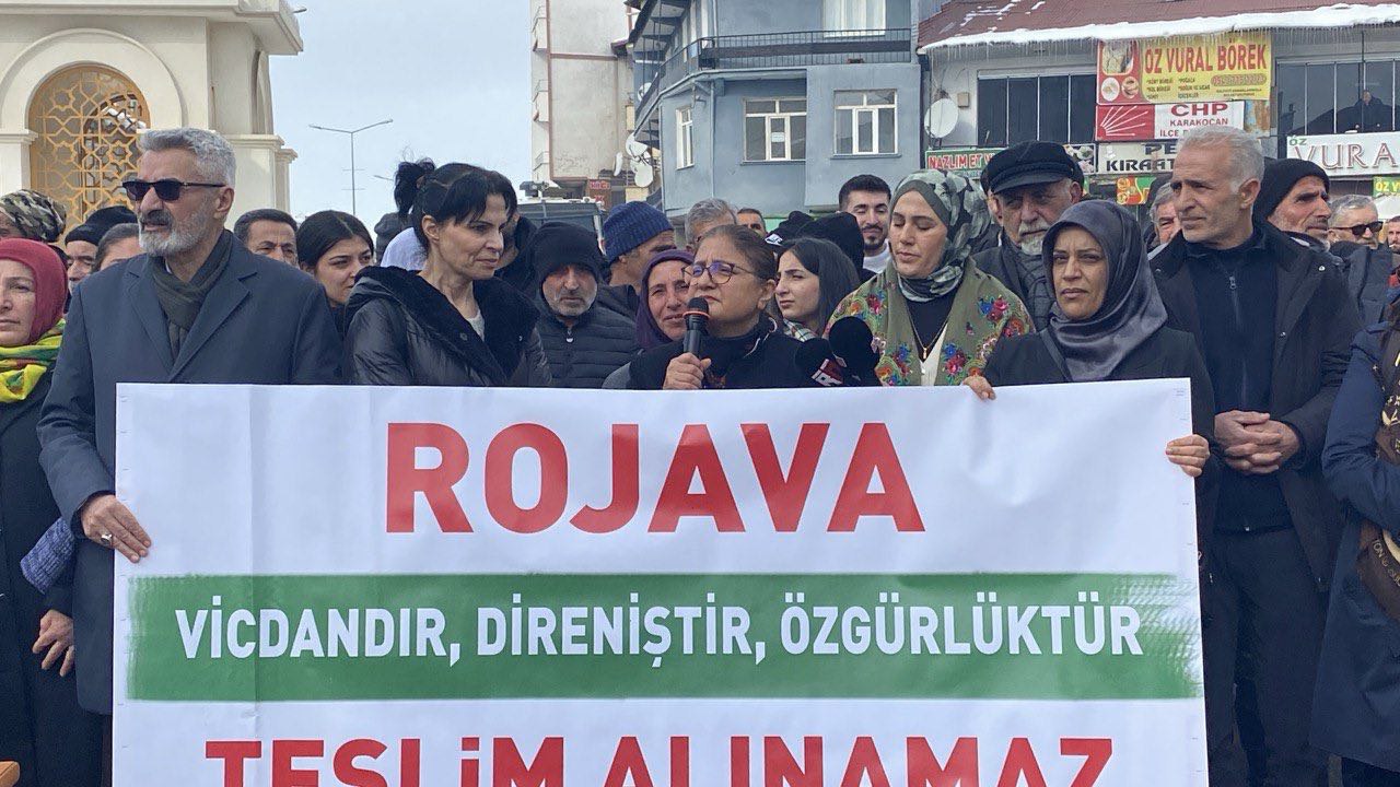 Basın açıklamasının ardından söz alan DEM Parti Dersim Milletvekili Ayten Kordu, “Rojava halkı yalnız değildir. Kürt halkı yalnız değildir. Bu halk mücadelesiyle, değerleriyle varlığını kanıtlamış bir halktır” dedi