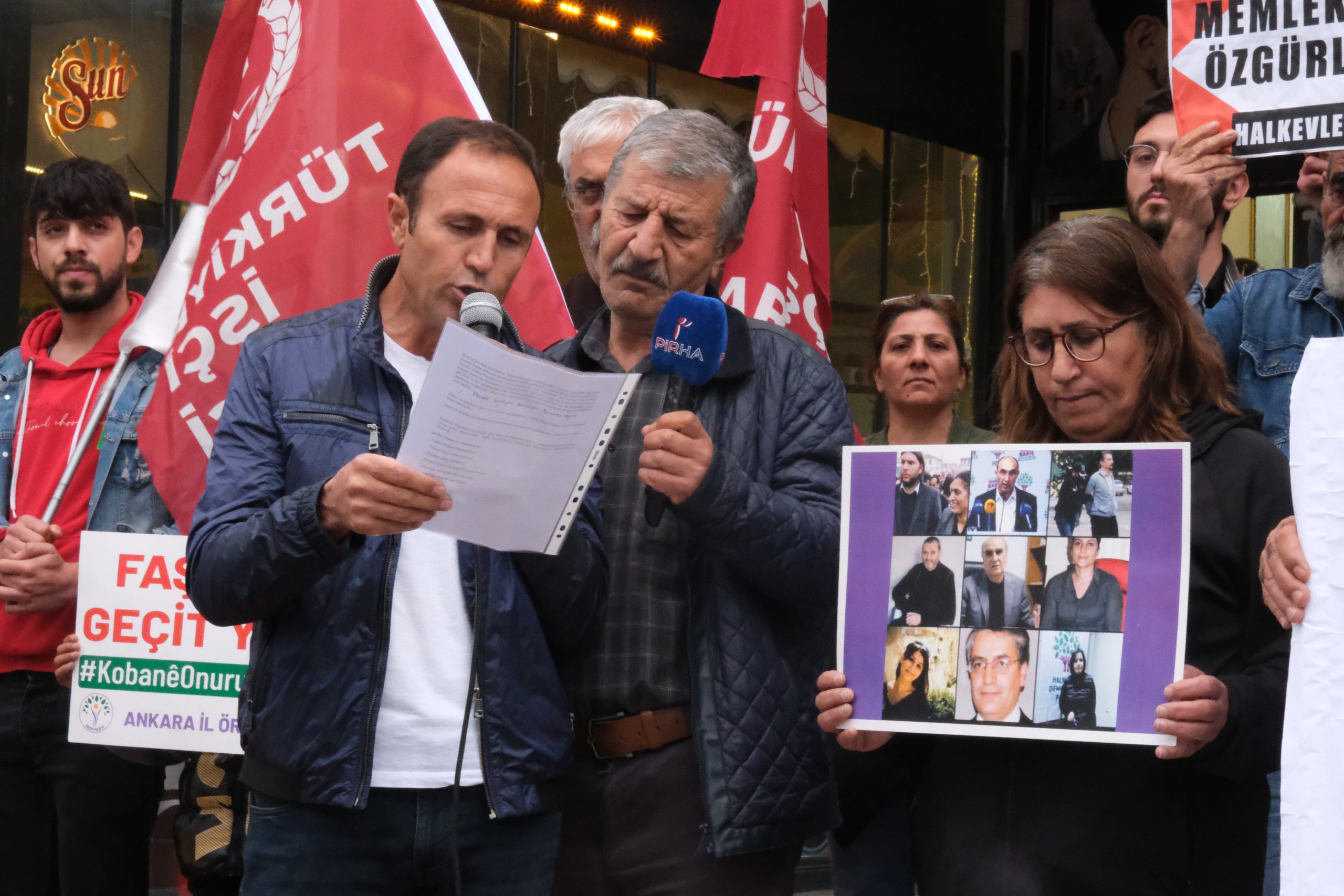 PİRHA- DEM Parti Mamak İlçe Örgütü, Kobane davasında verilen cezalara tepki gösterdi. Yapılan açıklamada, “Selahattinler, Figenler, Bülent Parmaksızlar, Günay Kubilaylar, Alp Altınörsler, Ali Ürkütler, yani Kobanî kumpas davasında yargılanan tüm arkadaşlarımız, Kürtlerin, Türklerin, emekçilerin, kadınların, gençlerin ve bu topraklardaki tüm ötekileştirilenlerin gönüllerinde ve vicdanlarında beraat etmişlerdir, özgürlerdir. Onları ortak mücadelemizle fiziken de özgürleştireceğimiz günler çok uzak değildir” denildi.