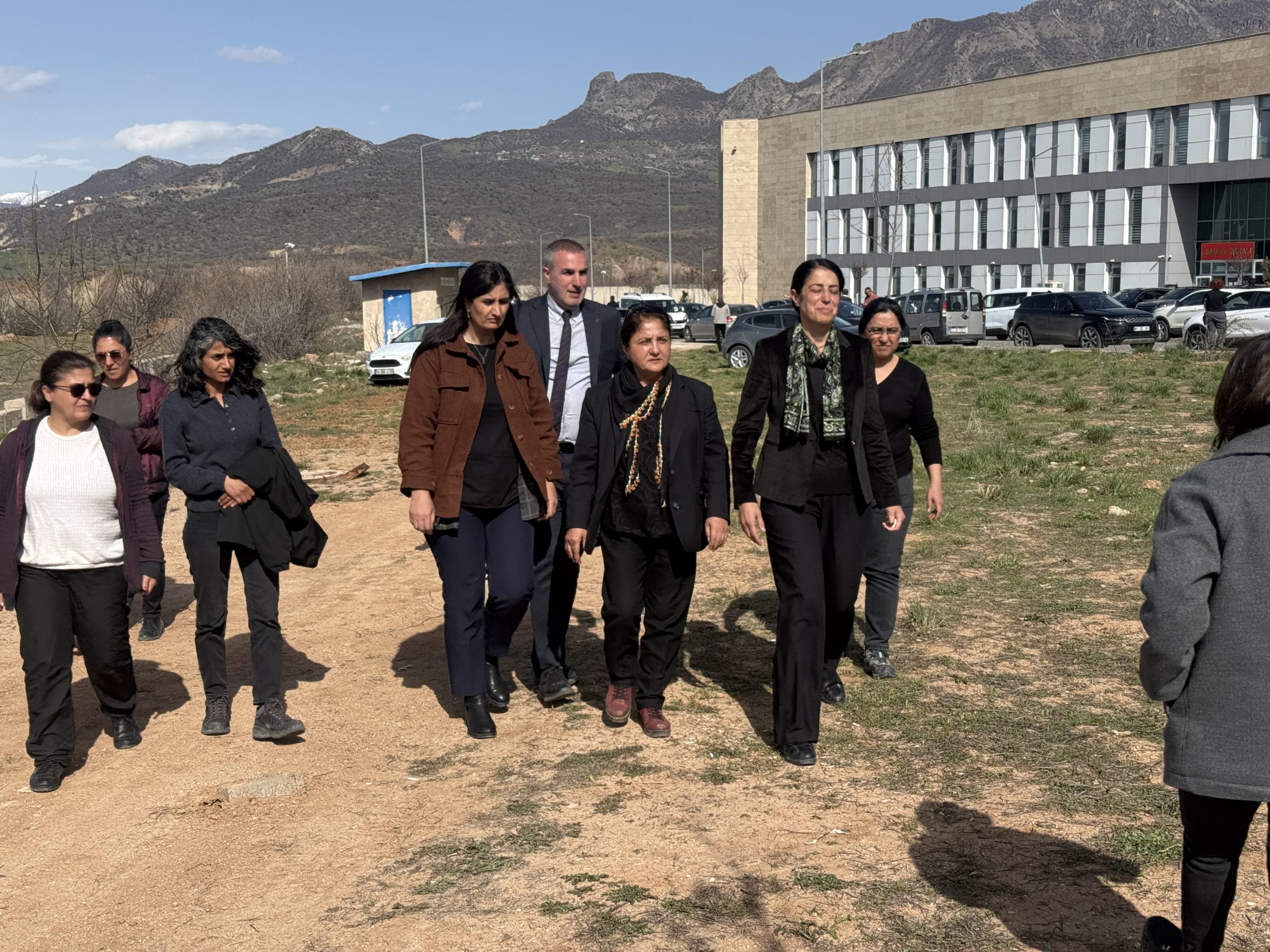 PİRHA- Aralarında Ayla Akat Ata’nın da olduğu TJA ve DEM Partili kadınlar, Tunceli Adliyesi’nde bekleyen Doku ailesine dayanışma ziyaretinde bulundu.
