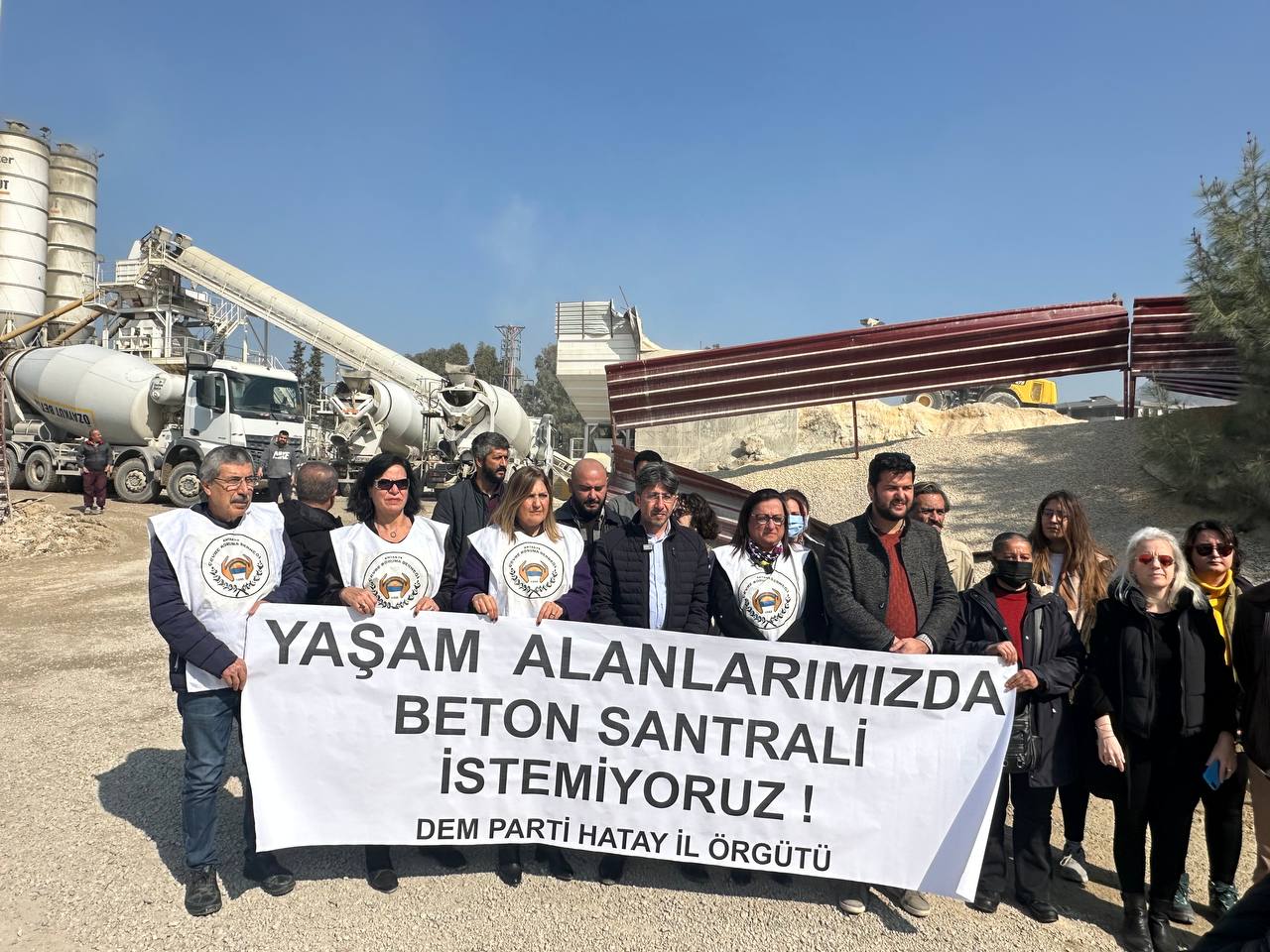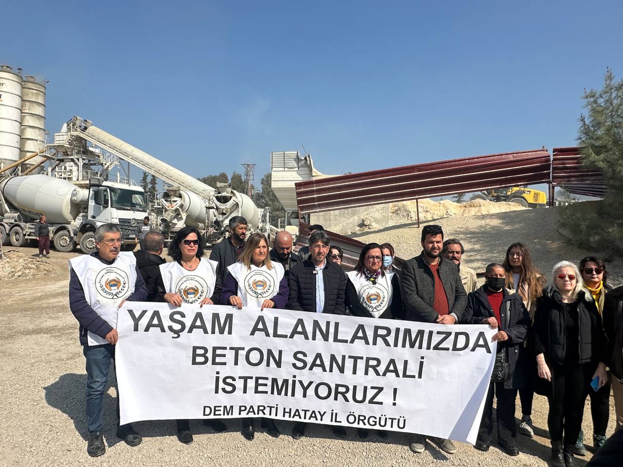 DEM Parti İl Eş Başkanı Naim Özbek, yapımı süren beton santralinin derhal kapatılması gerektiğini söyleyerek, “6 Şubat depremlerinin ardından yaşam savaşı veren Antakya halkına yapılan muameleyi görüyorsunuz. Antakya’nın belki tek yeşil alanına beton santrali kuruluyor. Buraya yerleşim yerleri, okullar çok yakın. Bu bir yaşam hakkı ihlali” dedi.