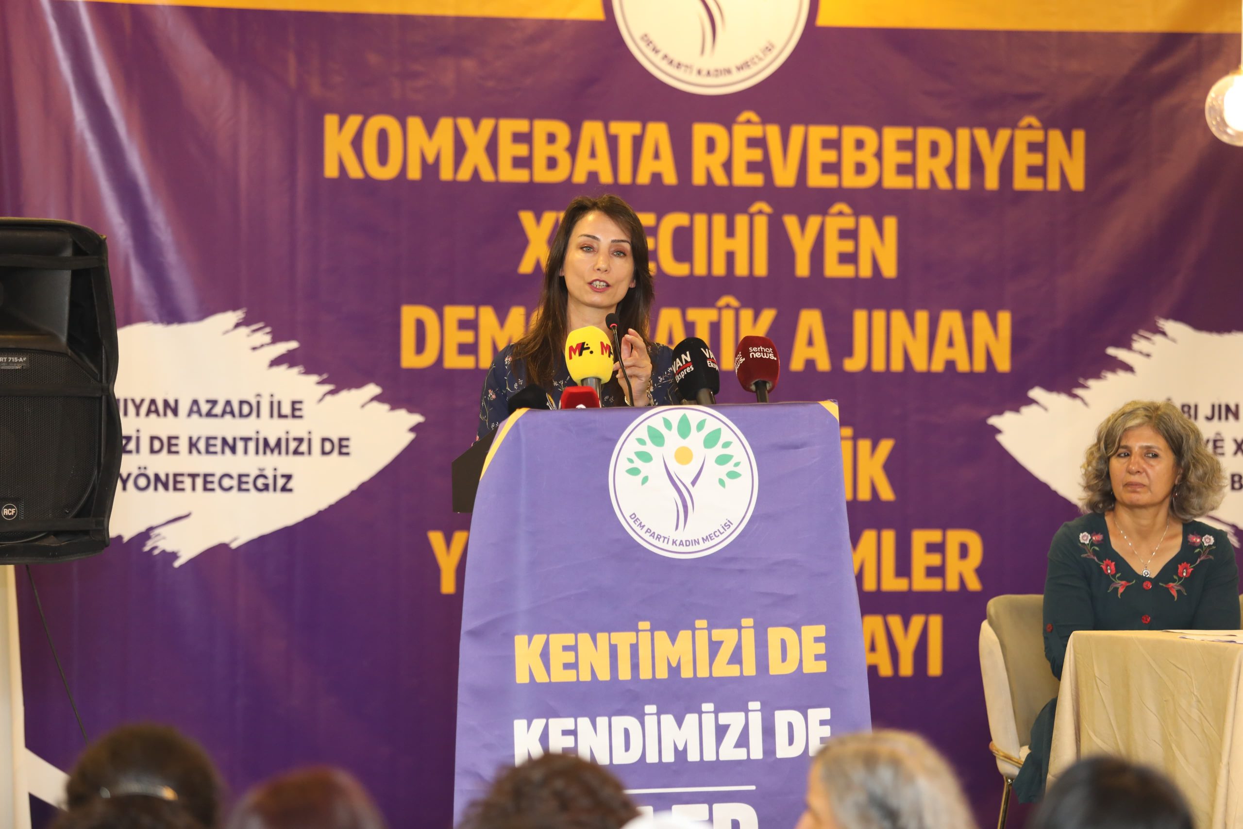 PİRHA-DEM Parti’nin kadın belediye eş başkanları Van’da bir araya geldi. DEM Parti Eş Genel Başkanı Tülay Hatimoğulları, “Bütün yönetim anlayışımızın tamamında eş başkanlık ve eşit temsiliyet vazgeçilmezimizdir. Eş başkanlık ve eşit temsiliyet mor çizgimizdir dedik, bunun için çok bedel ödedik. 78 kadın eş başkan ile tüm Türkiye ve Ortadoğu’ya model olduk” dedi.