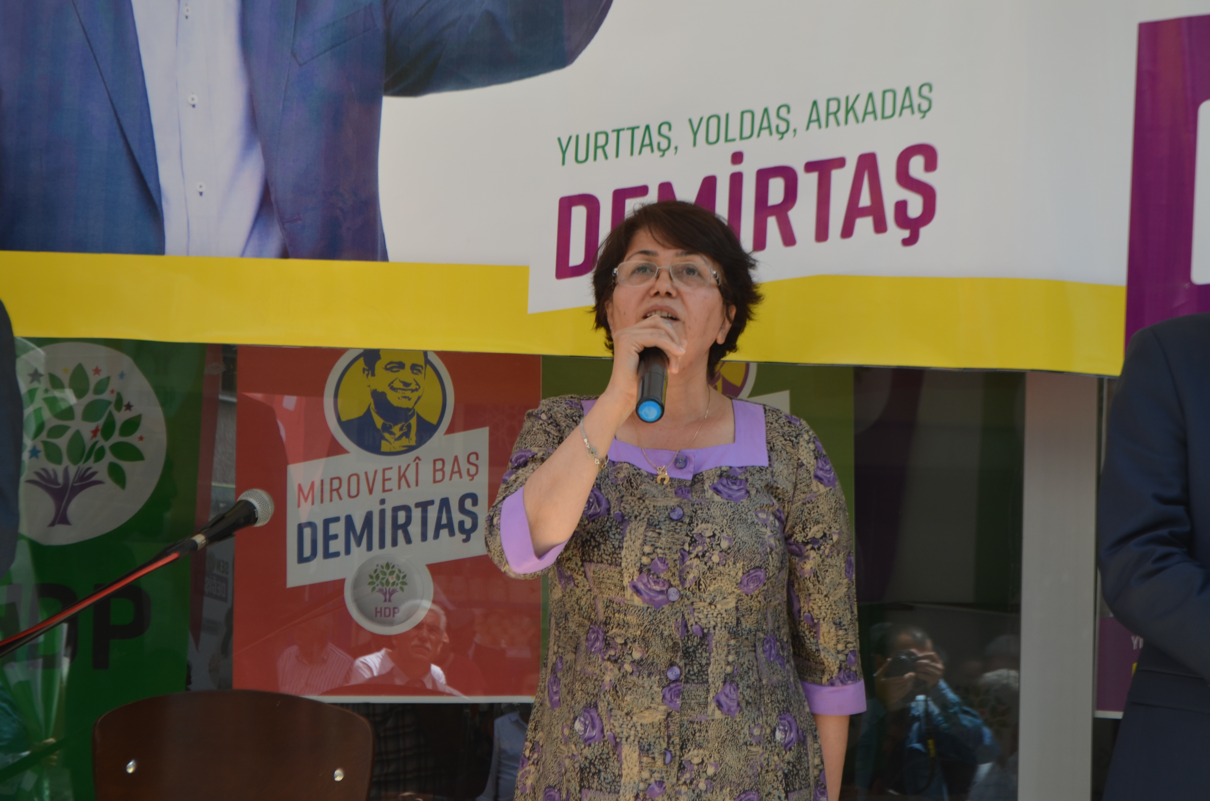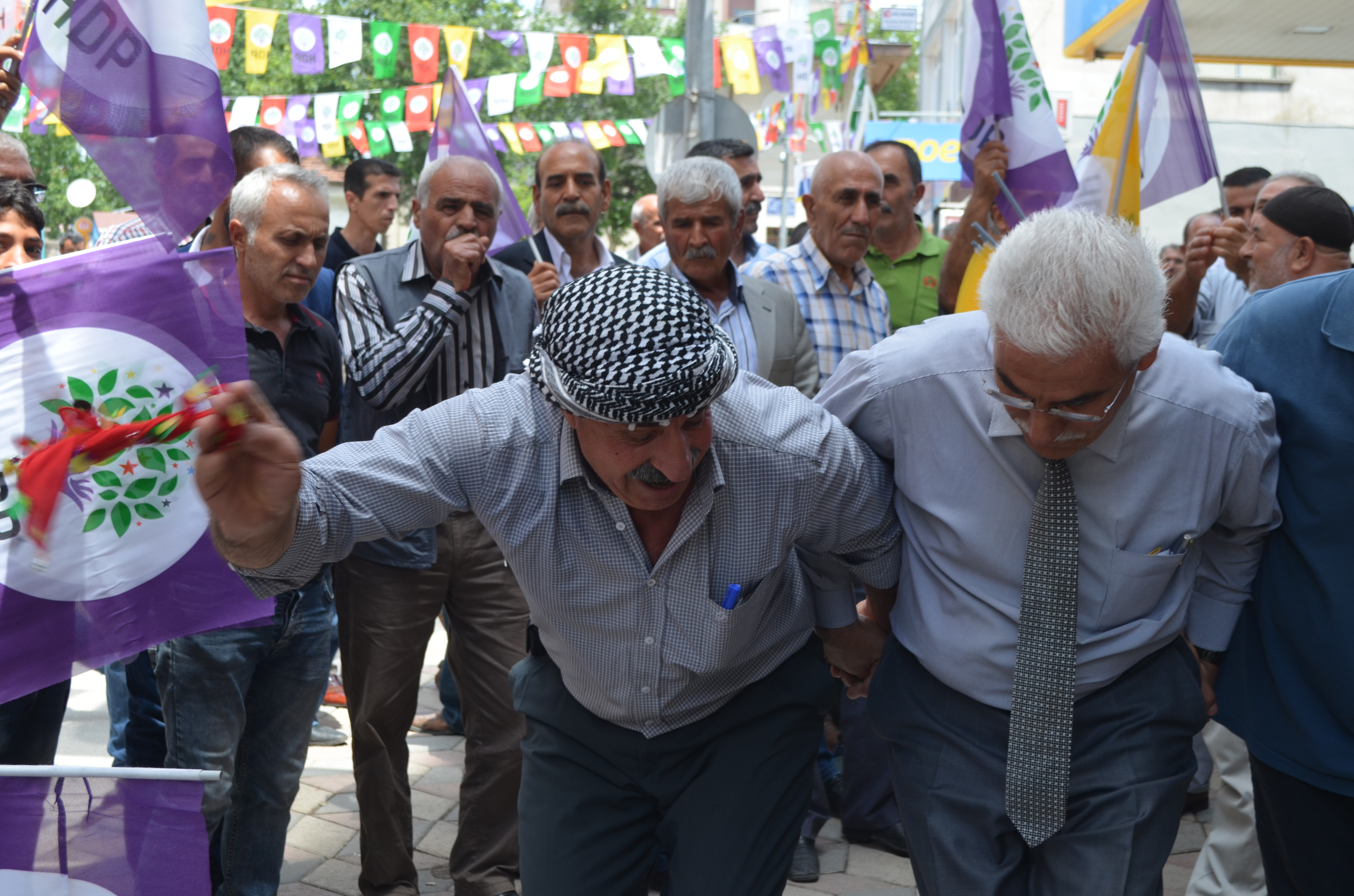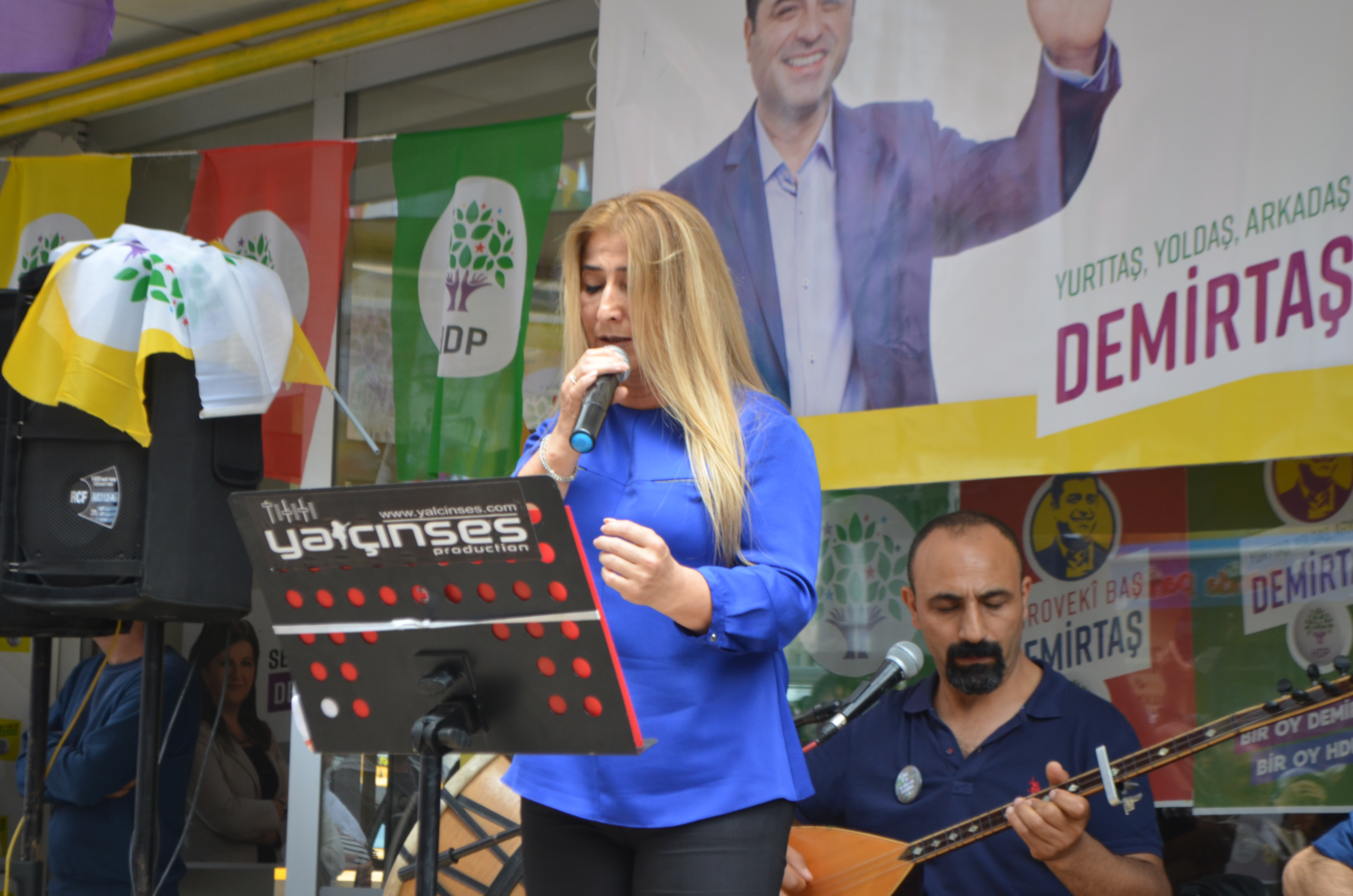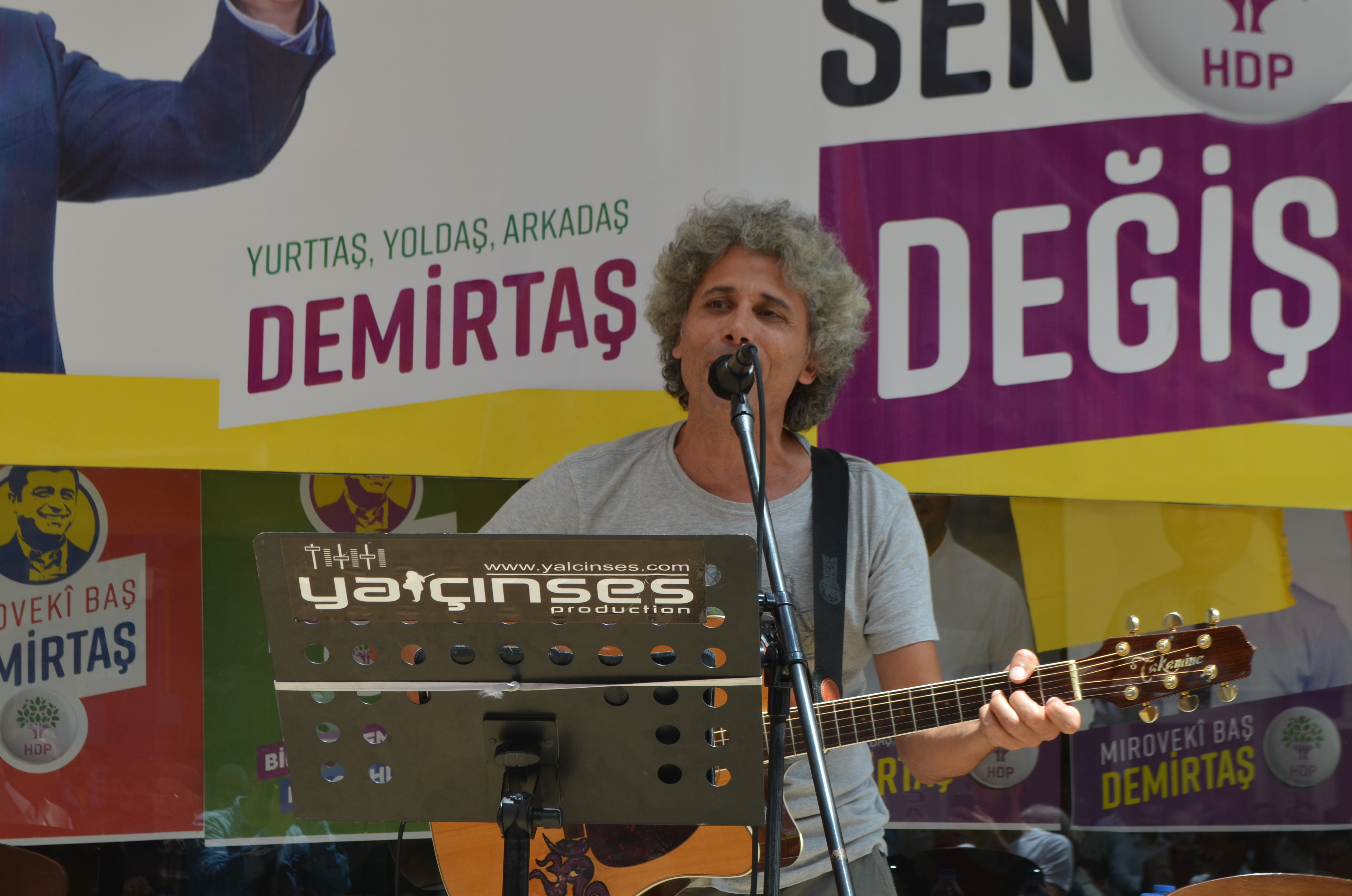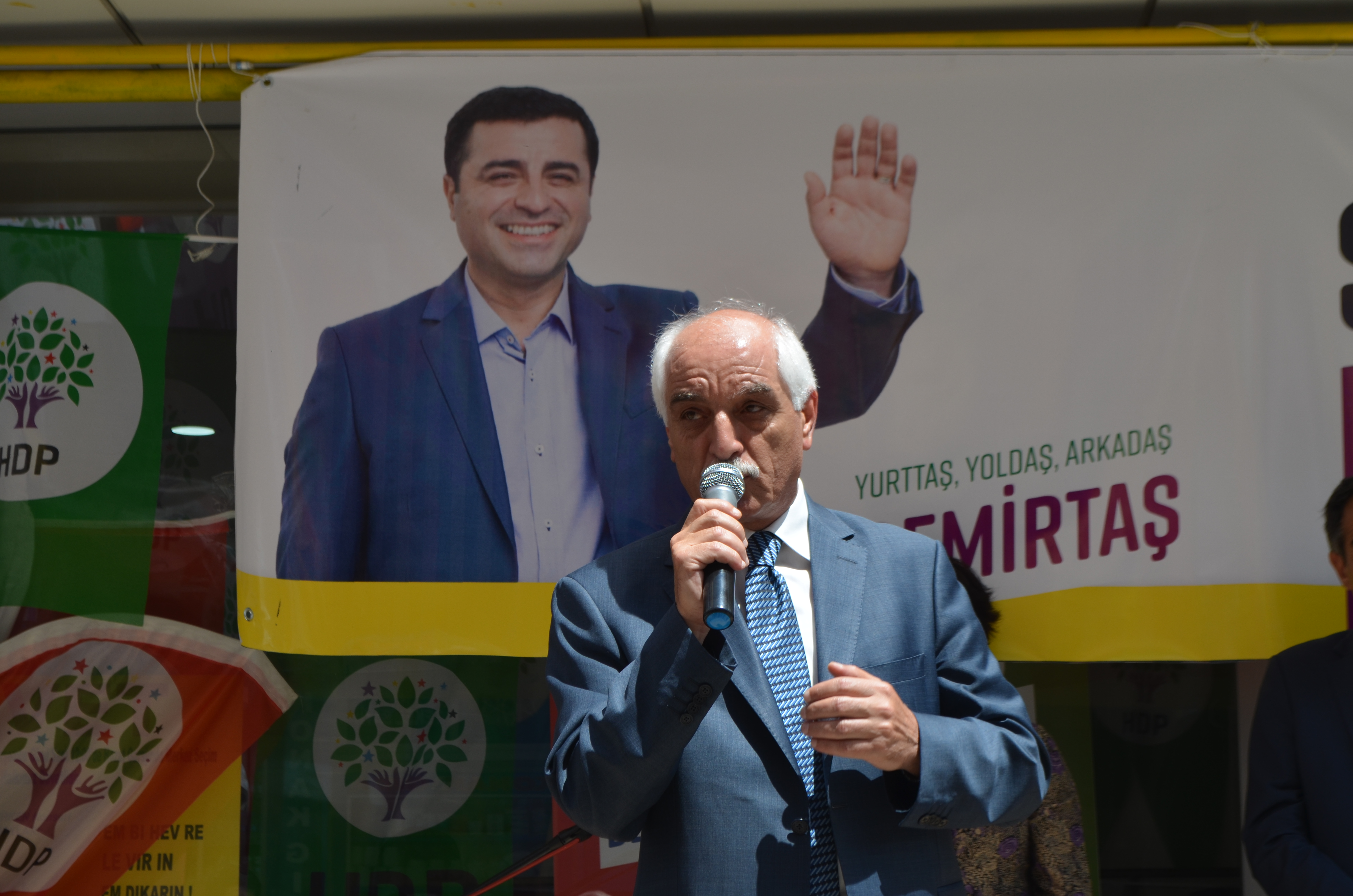 “Siyasal soykırım yaptılar, genel başkanlarımızı tutukladılar, iradelerimizi tutukladılar. Belediyelerimize kayyumlar atadılar. Kurumlarımızı kapattılar. Dilimizi ve sesimizi kestiler, basınımızı kapattılar. Bugün de şunu diyorlar; konuşmayın, bu mikrofonu da sizin elinizden alacağız. Sizin gücünüz buna yetmez. Bu halkın mikrofonudur. Bu halk artık emperyalizme, onun yerli işbirlikçilerine, faşizme fırsat vermeyecektir. Bunları 7 Haziran’da olduğu gibi 24 Haziran’da da sandığa gömecektir ve bu ülkede demokrasinin önü açılacaktır.”