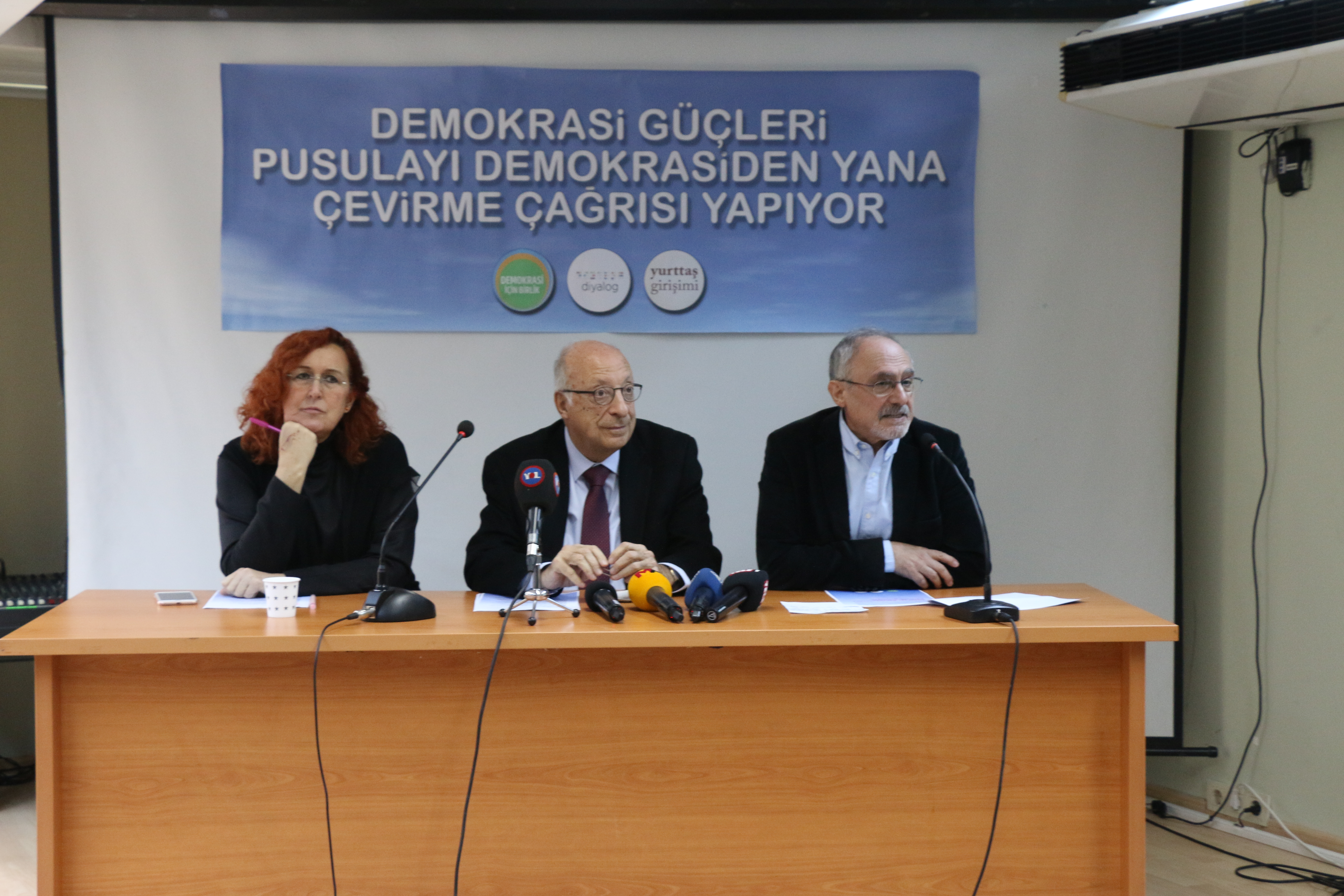 Demokrasi İçin Birlik, Diyalog Grubu ve Yurttaş Girişimi ortak bir basın toplantısı düzenledi. “Demokrasi güçleri pusulayı demokrasiden yana çevirme çağrısı yapıyor” şiarıyla yapılan toplantıya Hukukçu Rıza Türmen, tarihçi-yazar Erdoğan Aydın, Nesteren Davutoğlu, Makine Mühendisleri Odası (MMO) İstanbul Şube Başkanı Battal Kılıç, Avukat İbrahim Sinemillioğlu, Prof. Dr. Gençay Gürsoy, CHP Beyoğlu Belediye Başkanı Adayı Alper Taş, Şişli Belediye Başkanı Adayı Muammer Keskin ile HDP GOP Belediye Başkanı Adayı Sinan Zincir katıldı.