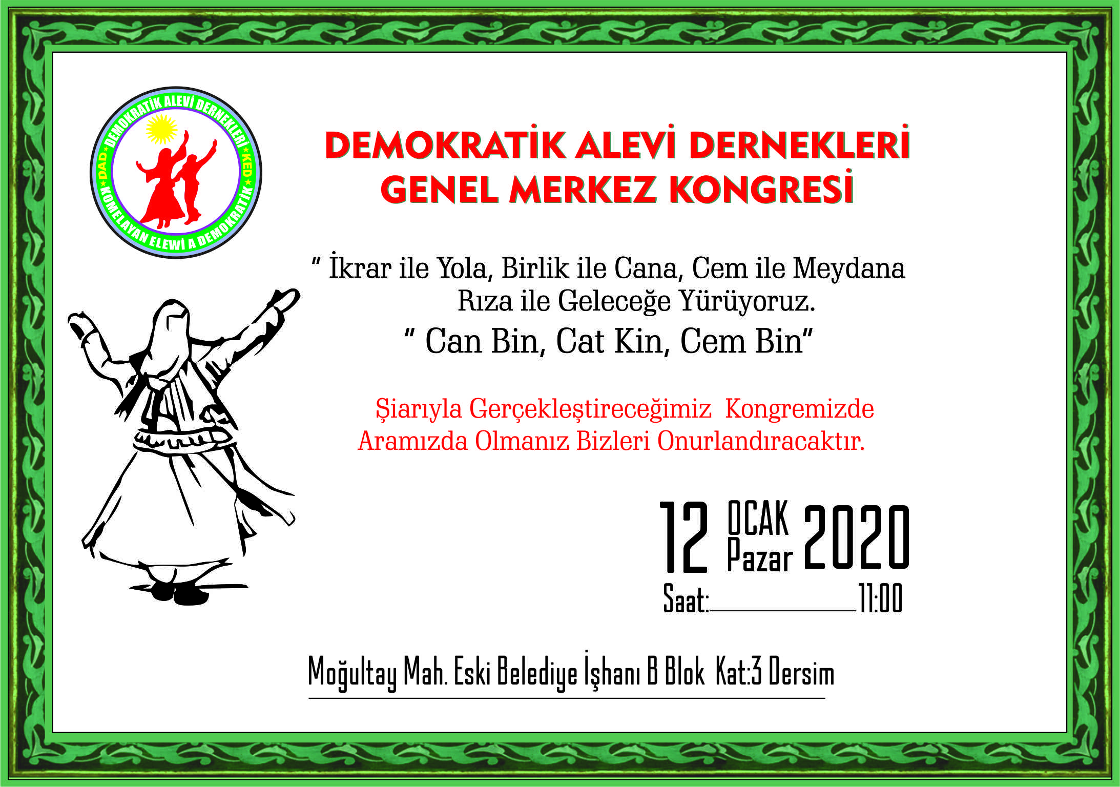 DAD Genel Merkez Kongresi, ‘İkrar ile yola, birlik ile cana, cem ile meydana, rıza ile geleceğe yürüyoruz. Can bin, cat kin, cem bin’ şiarıyla Dersim’de gerçekleştirilecek.