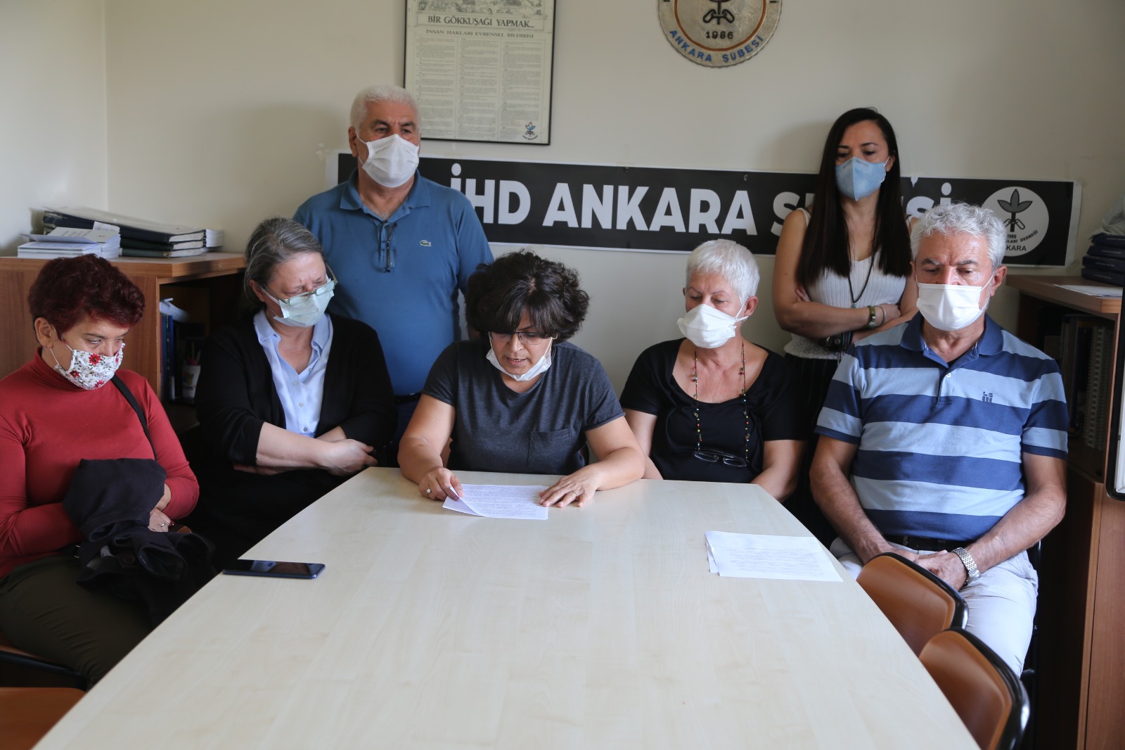 İHD Ankara Şubesinde yapılan açıklamaya İHD’de Şube Yöneticileri ve üyeleri katıldı. Ankara Şube adına açıklamayı yönetim Kurulu üyesi Sevim Koçak okudu.