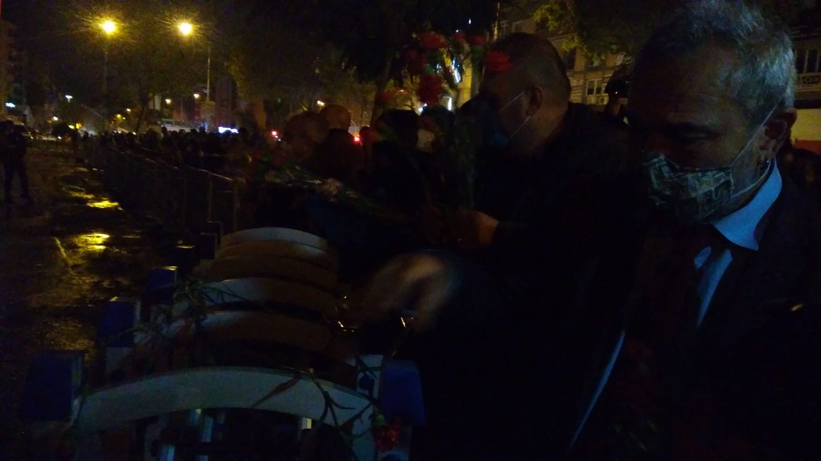 PİRHA- İzmir Barosu’nun çağrısı ile bir araya gelen siyasi parti, sivil toplum kuruluşu temsilcileri ve yurttaşlar depreminde yaşamını yitirenlerin anısına Rıza Bey Apartmanı’nın bulunduğu alana karanfiller bıraktı.
