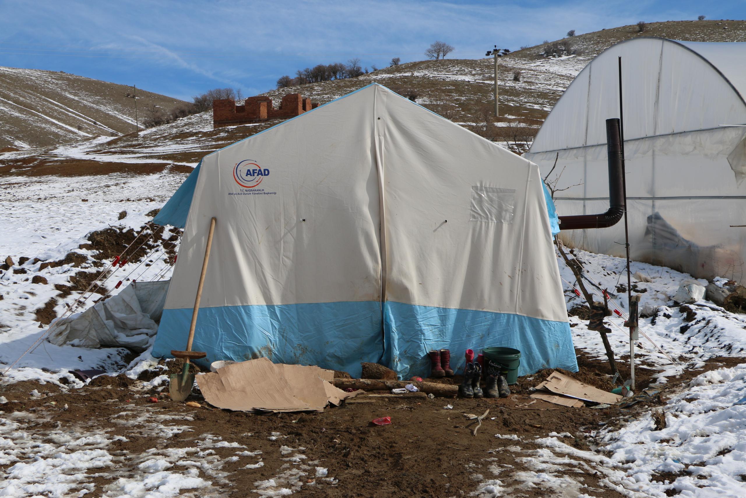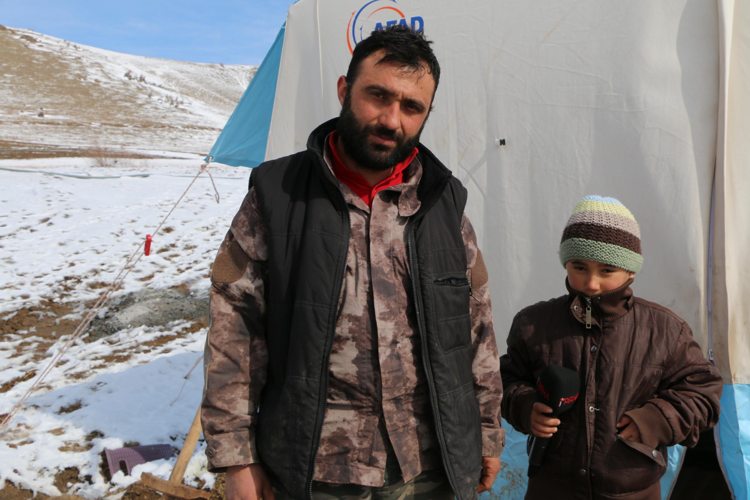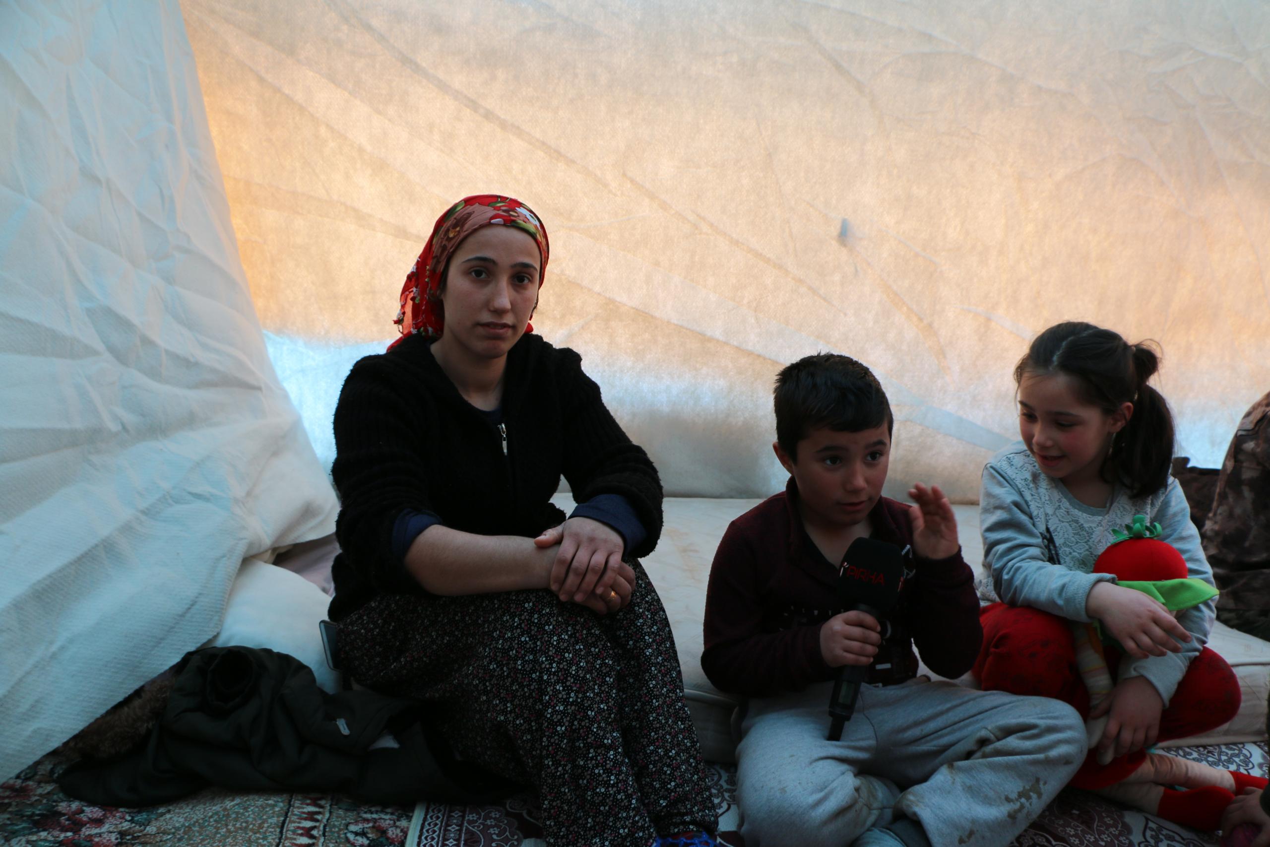 Karataş ailesi de 3 çocukla birlikte çadırda kalıyor. Anne ve baba, gece soğuğunda dayanamadıklarını, çocukları için konteyner istediklerini belirttiler.