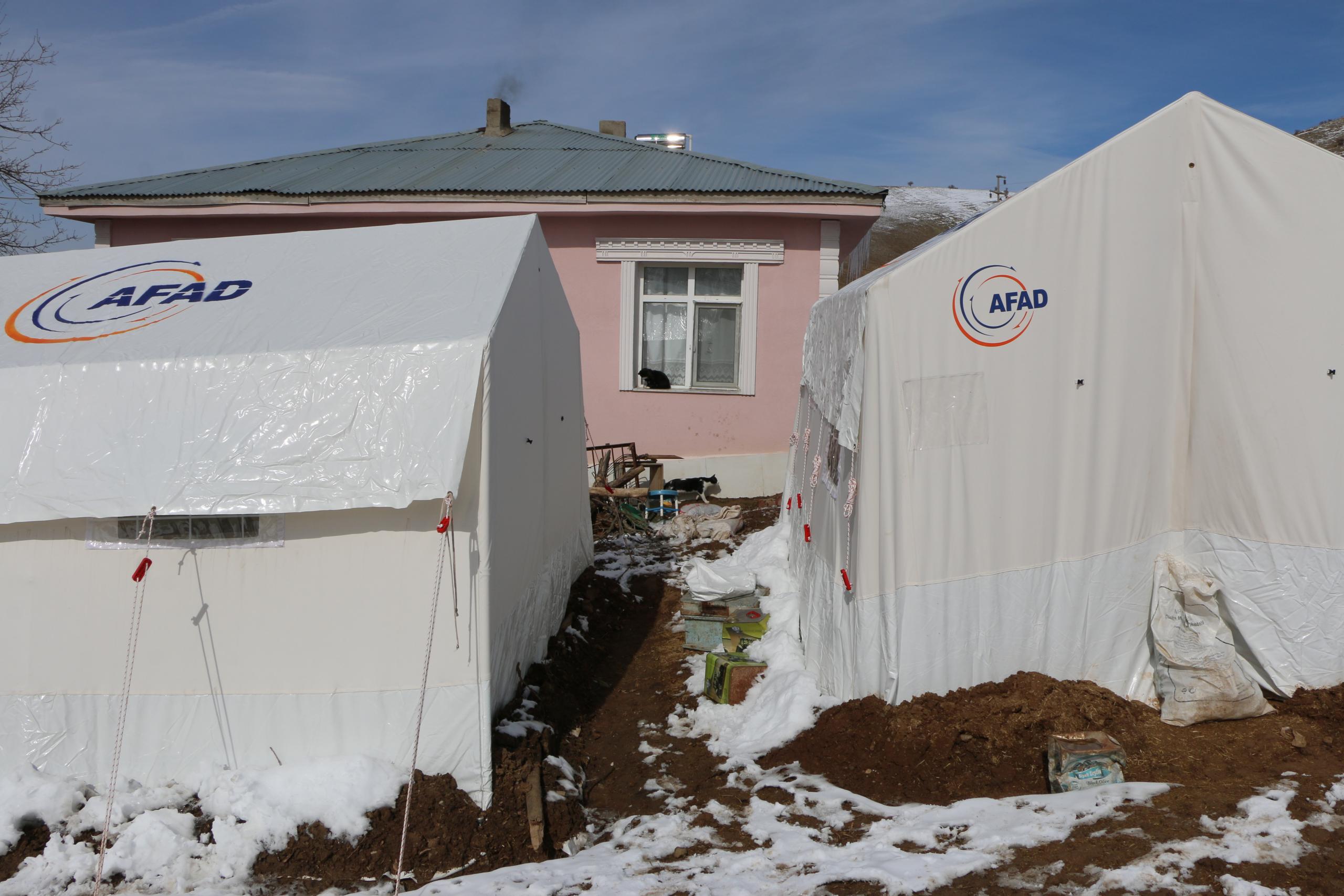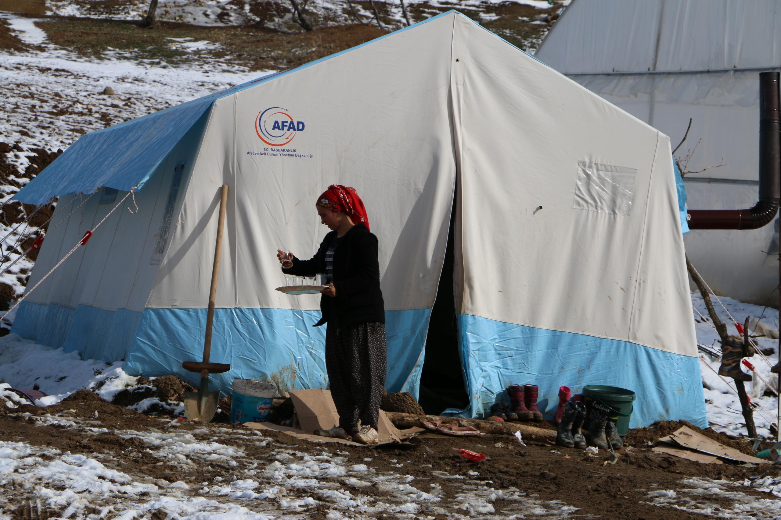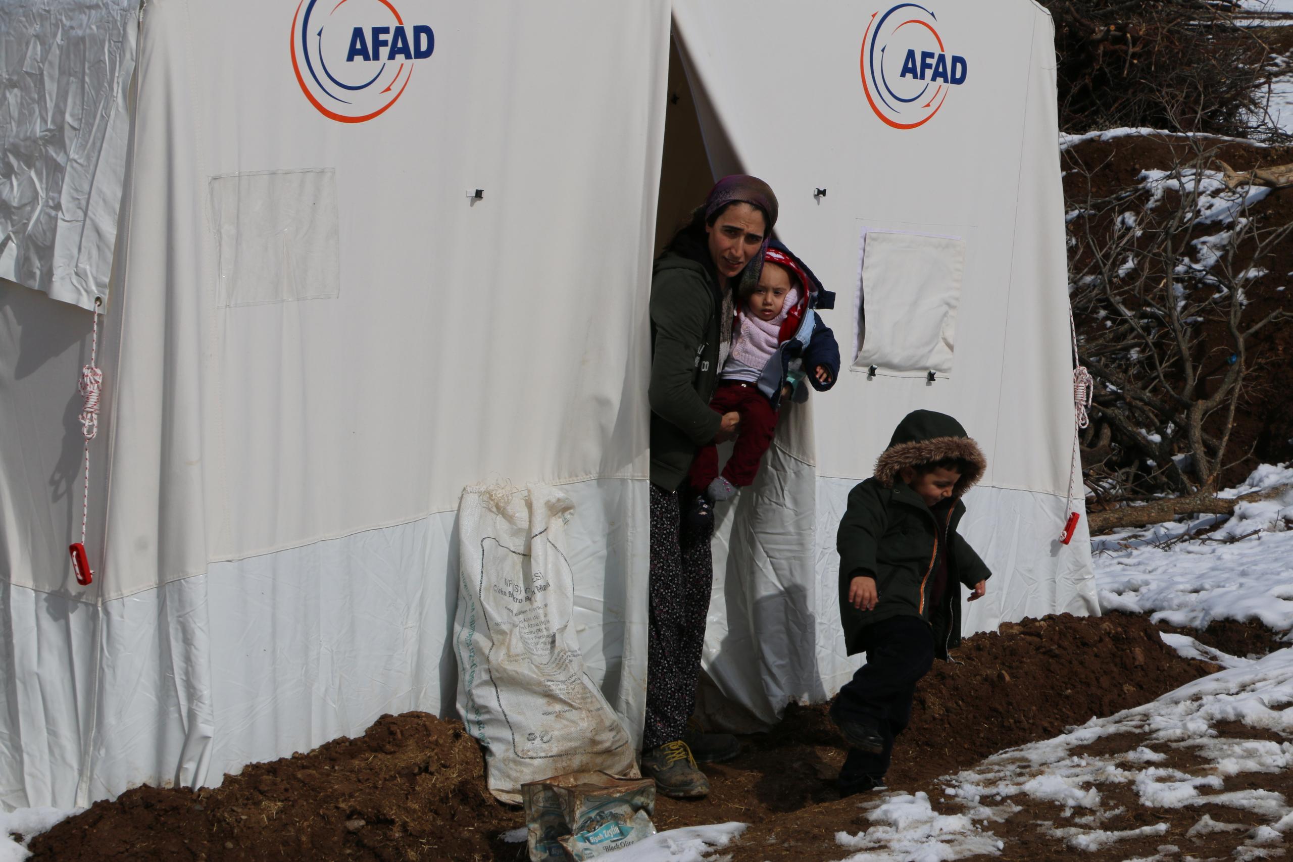 Karataş ailesi de 3 çocukla birlikte çadırda kalıyor. Anne ve baba, gece soğuğunda dayanamadıklarını, çocukları için konteyner istediklerini belirttiler.