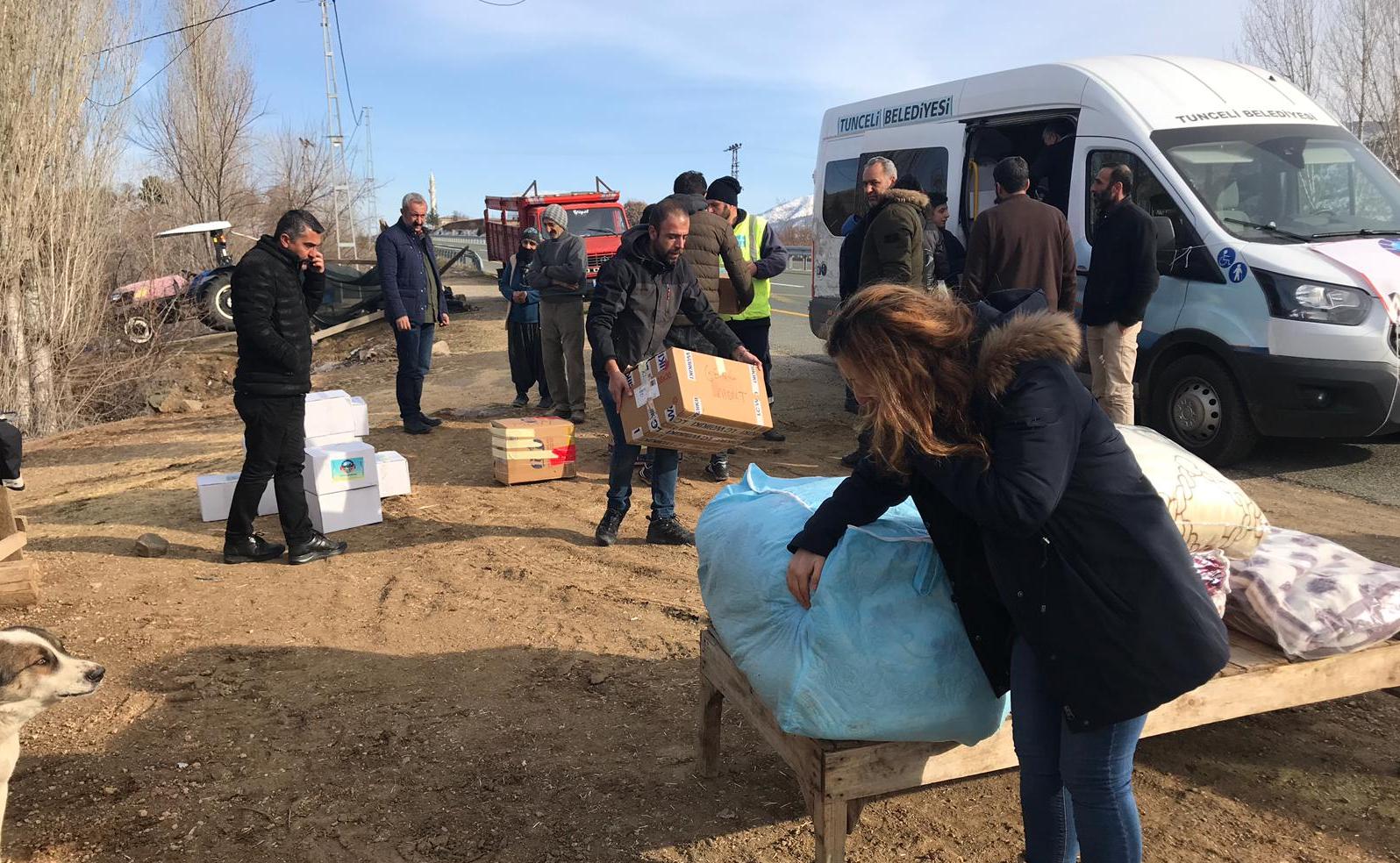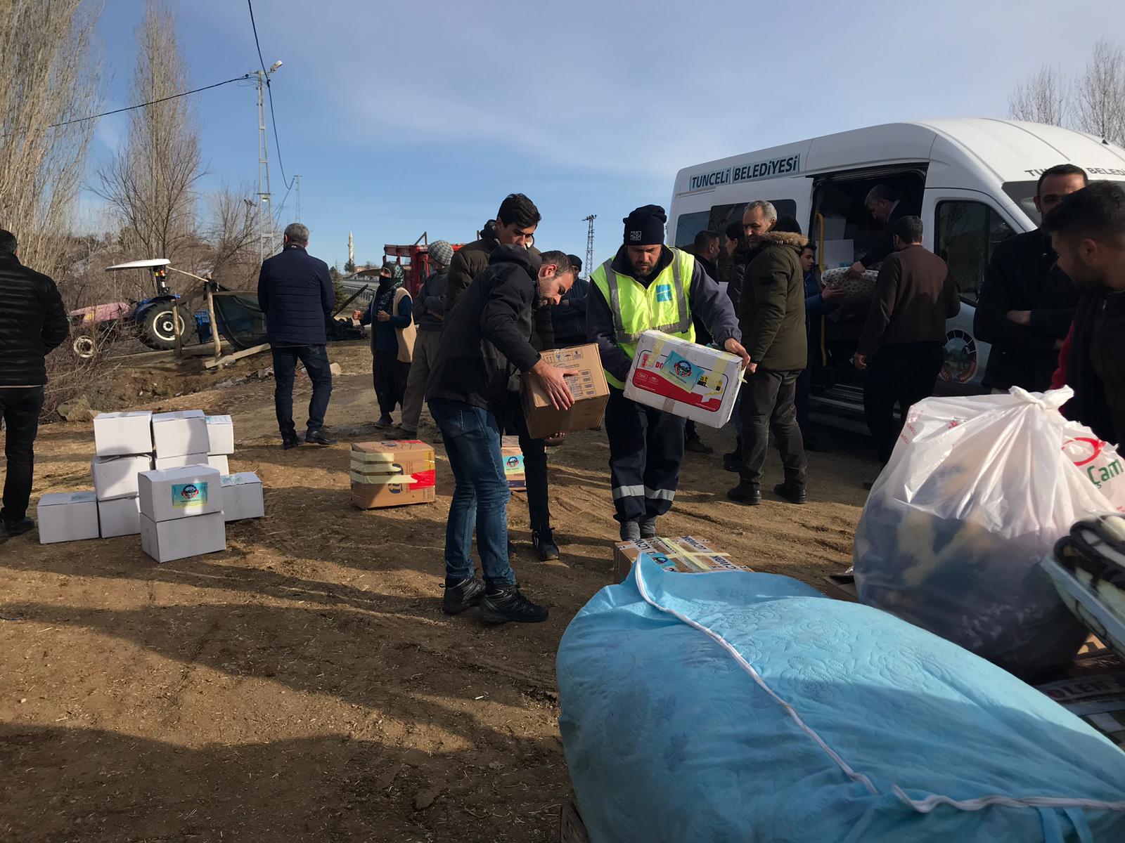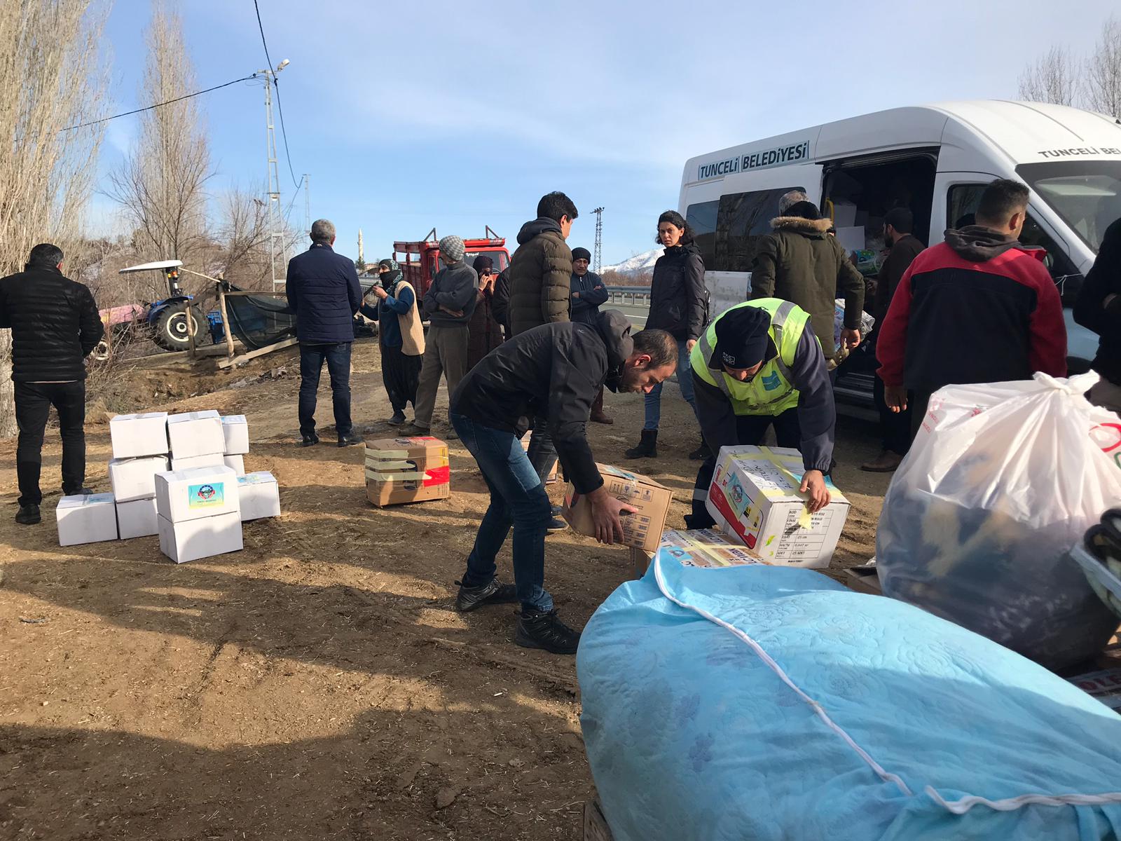 Dersim Belediyesi, depremden etkilenen yurttaşların ihtiyaçlarını giderecek yardımları Elazığ’ın Hankendi Beldesine bağlı Yalındamlar Köyü’ne ulaştırdı.