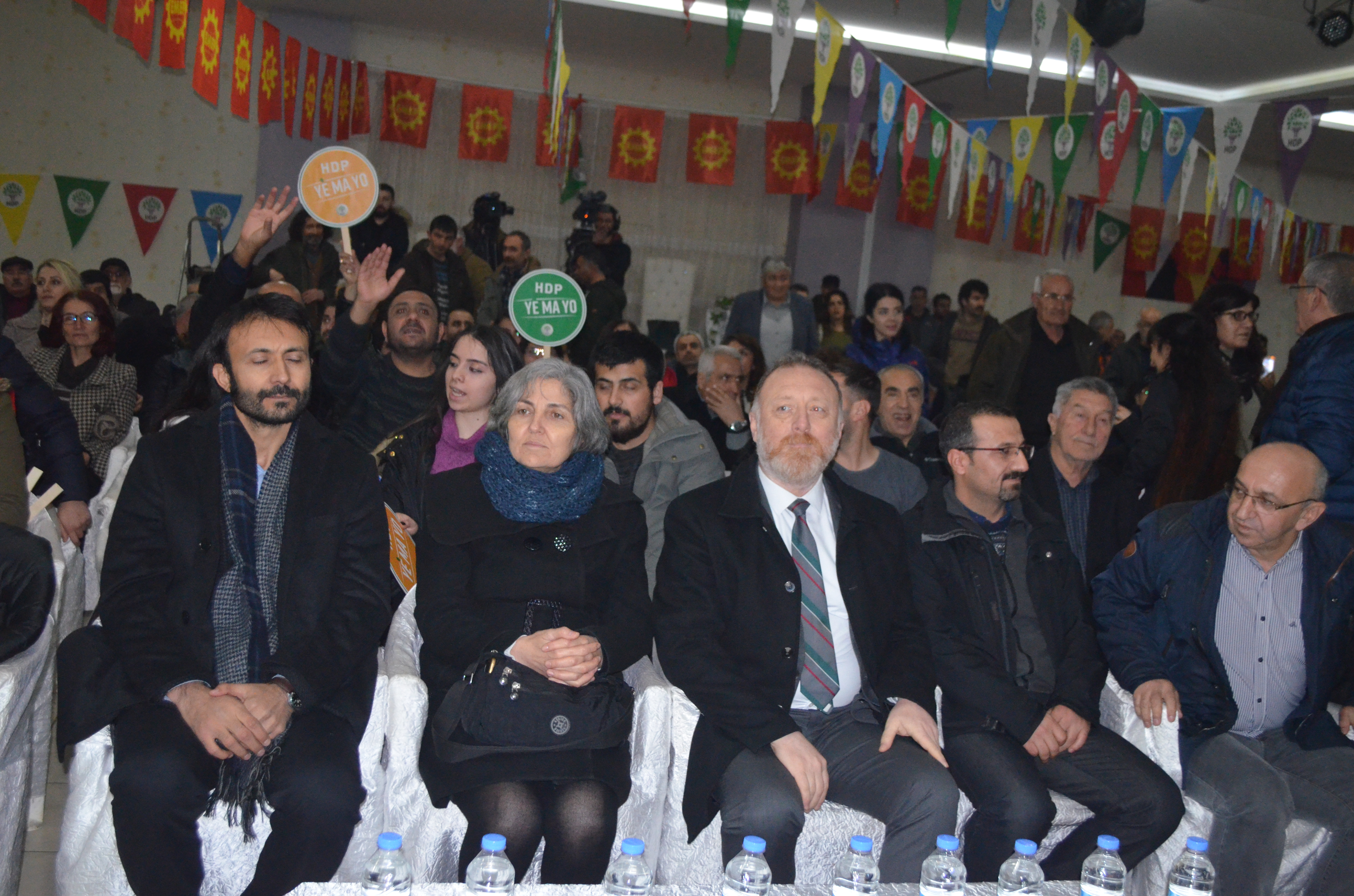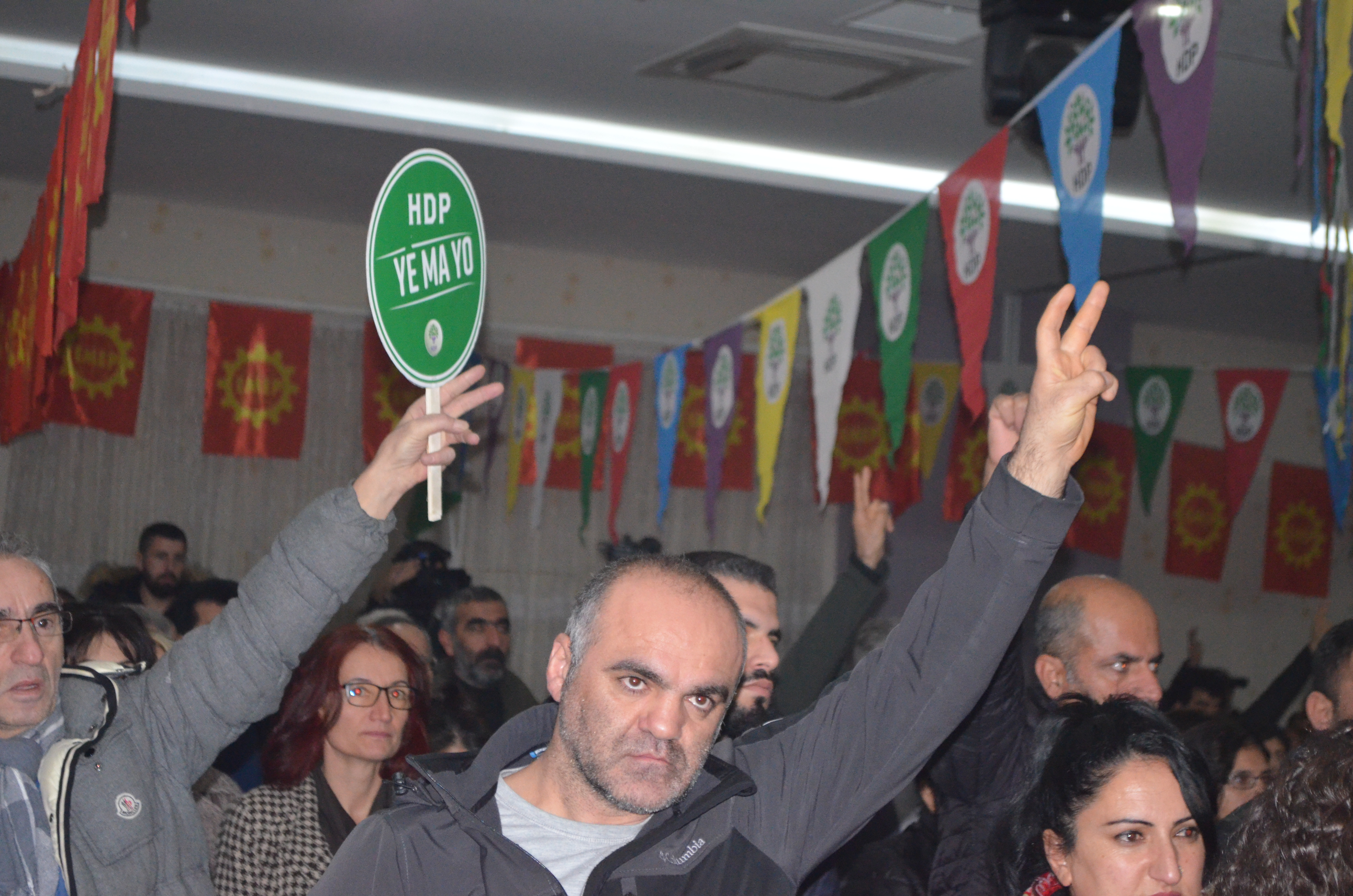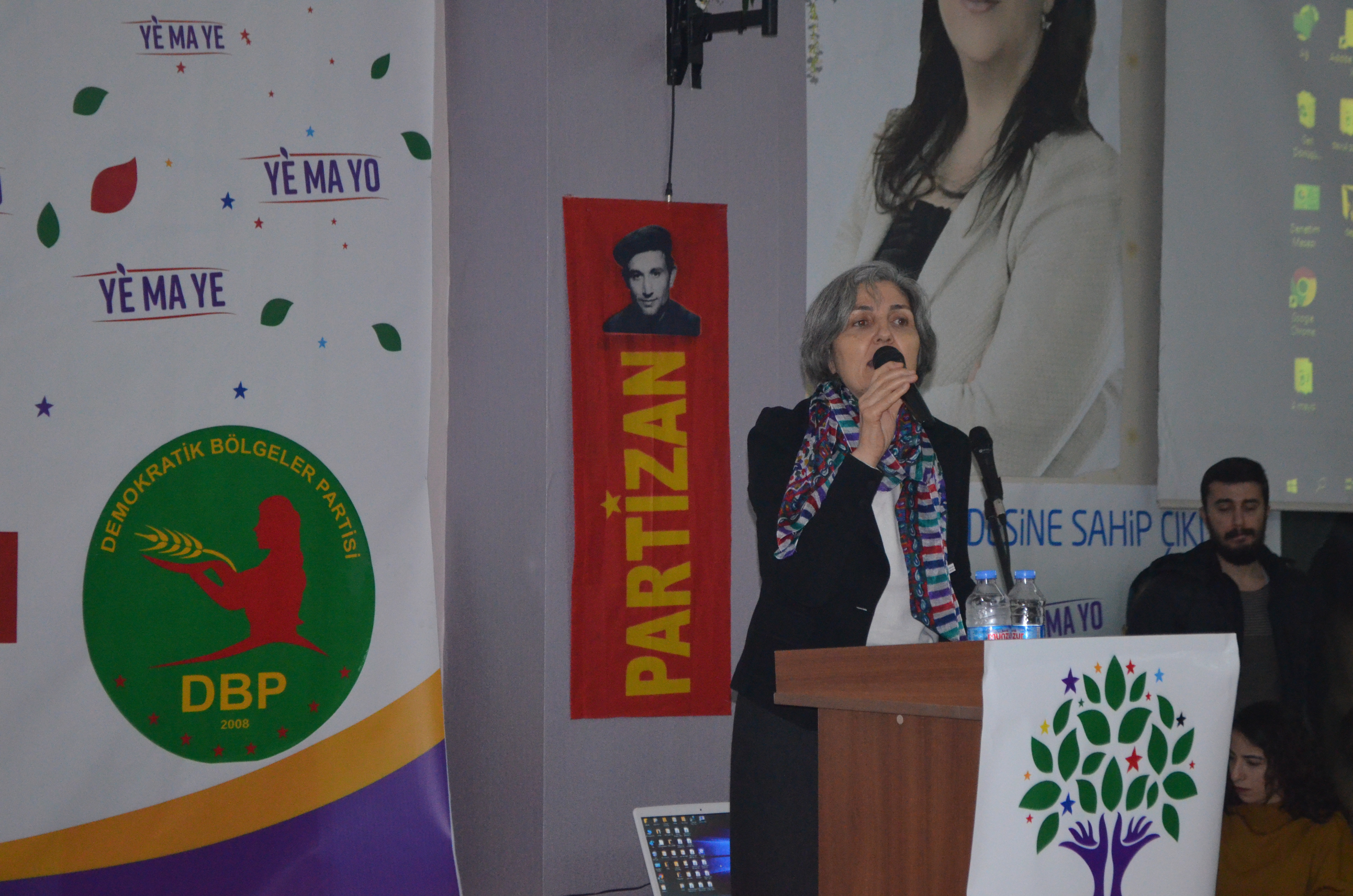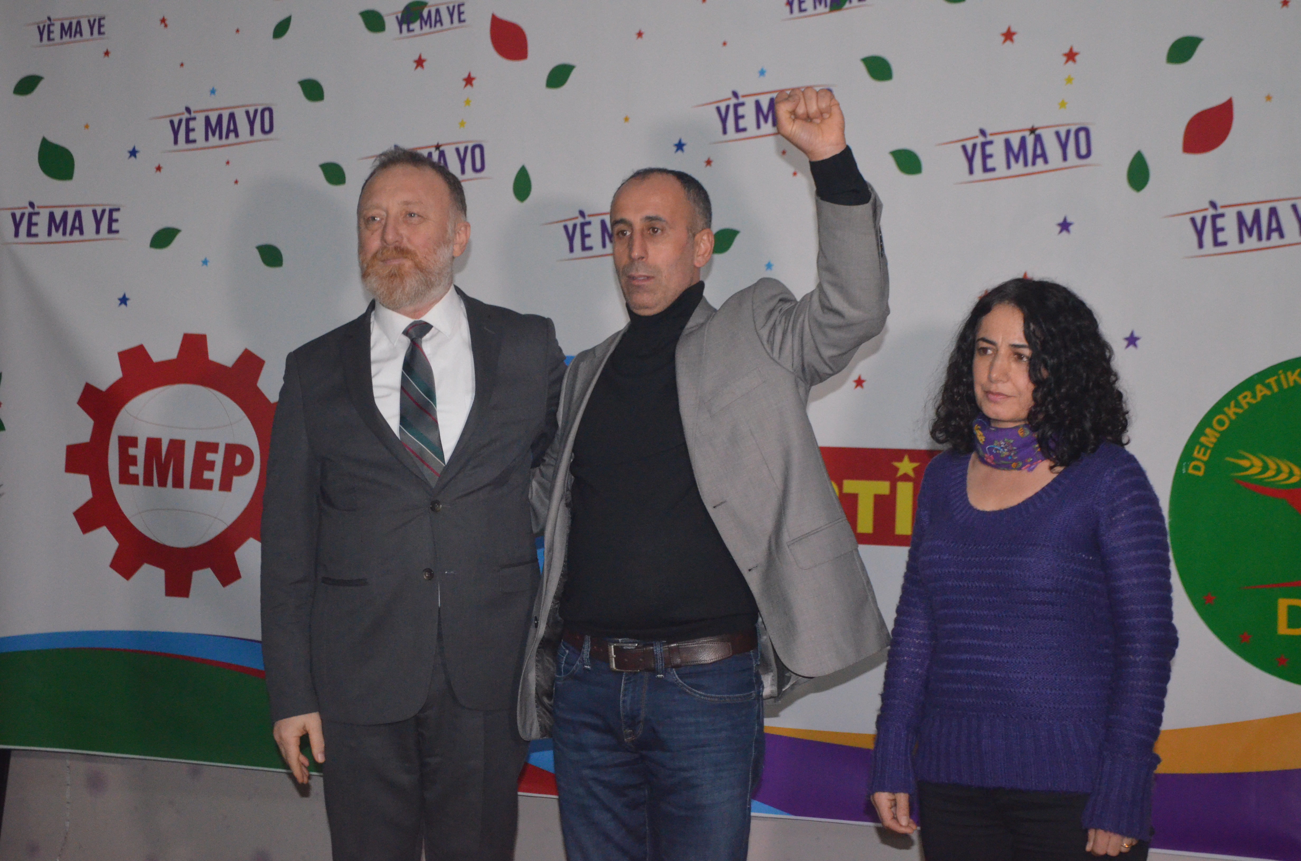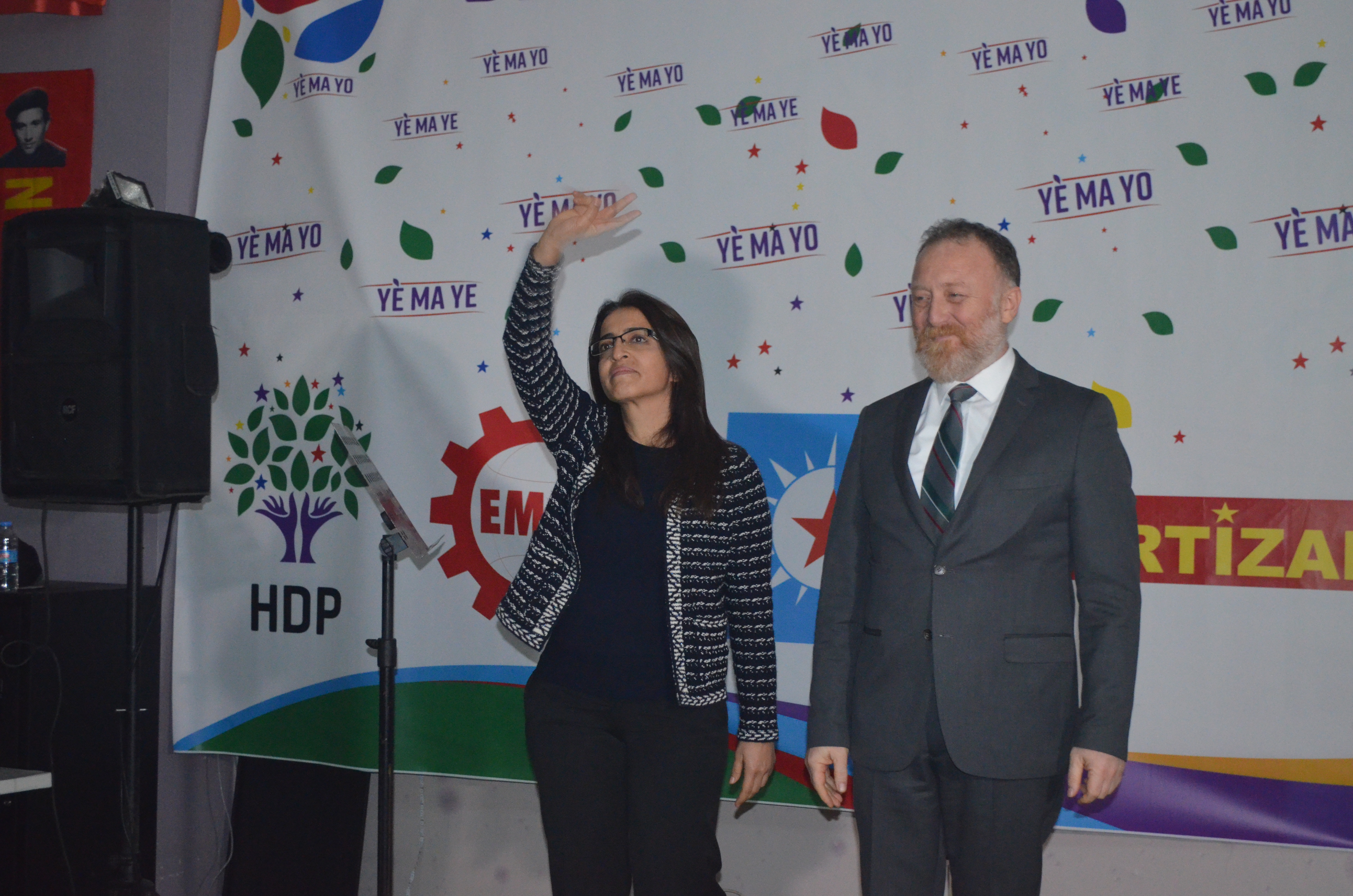 “Yerel yönetim seçimlerinde işimiz zor. Karşımızda baskıyla, faşizm ile seçim propagandası yapan bir sistem var. Ancak tüm engellemelere ve zorluklara karşı hep birlikte vereceğimiz gücümüz vardır. Birlik ve beraberlik ile tüm bu baskı ve zorba politikayı boşa çıkartabiliriz. AKP’nin belediyeciliğini Sayıştay raporlarına bakarak görebiliriz. AKP yerel yönetim anlayışını hırsızlık ve talan üzerinden yürütüyor. AKP’nin yerel yönetimlere anlayışları ihanettir. Kendimizi de kentimizi de biz yöneteceğiz. Tek adama ve baskısına karşı yerelden yönetim diyoruz. İnadına barış, inadına demokrasi, inadına birlik diyeceğiz. Tek adama karşı kazanan demokrasi ve özgürlükler olacak. 31 Mart’a kadar boş durmak yok. Yenilmeyecek tek güç halkın örgütlü gücüdür. Kazanacağımıza inanıyorum.”