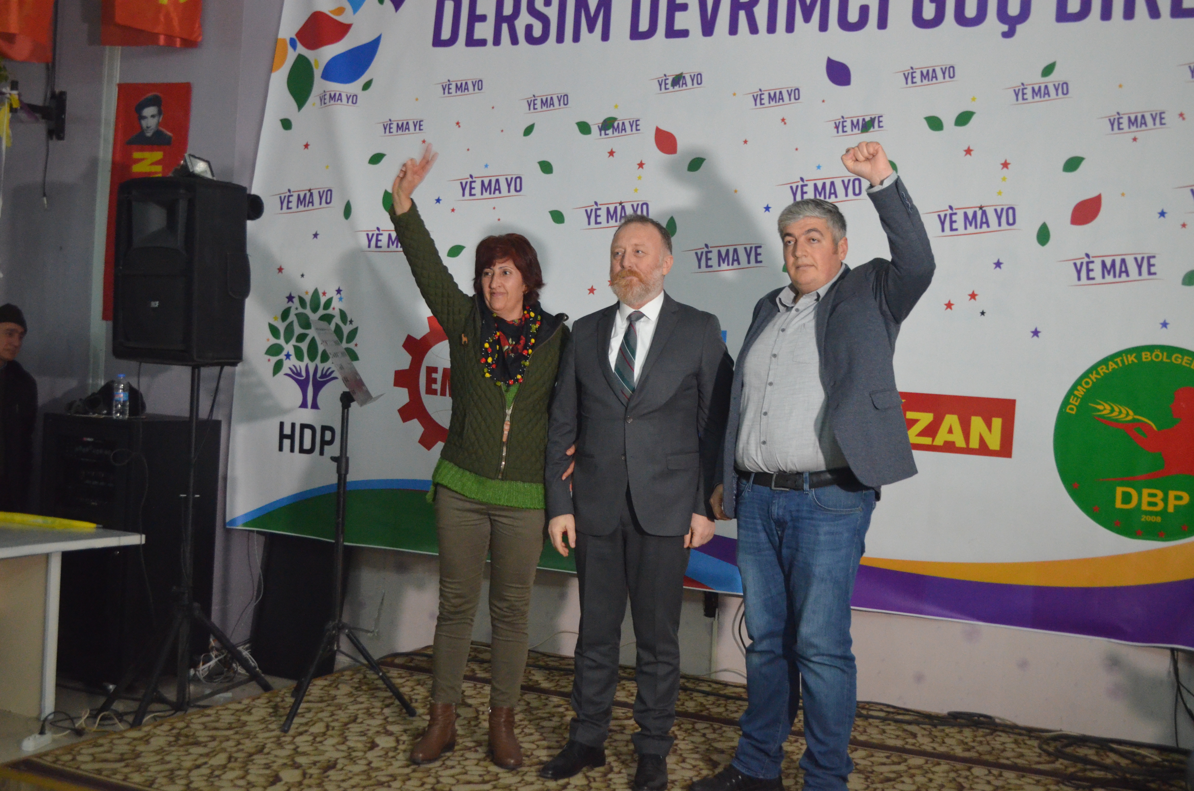 HDP Eş Genel Başkanı Sezai Temelli de, yan yana, omuz omuza gelerek, güç birliğini oluşturduklarını söyleyerek, “Hep birlikte faşizme karşı çıkacağız. Söz karar yetki halkın dedik. Kayyumlar ile yönetmek açık bir faşizmdir. Faşizmi kurumsallaştırmak istiyorlar. Faşizme karşı çıkmak hepimizin önceliğidir. Bu nedenle Dersim’deki güç birliği önemlidir. 31 Mart’ta faşizme en güçlü cevabı sandıklarda vereceğiz” dedi.
