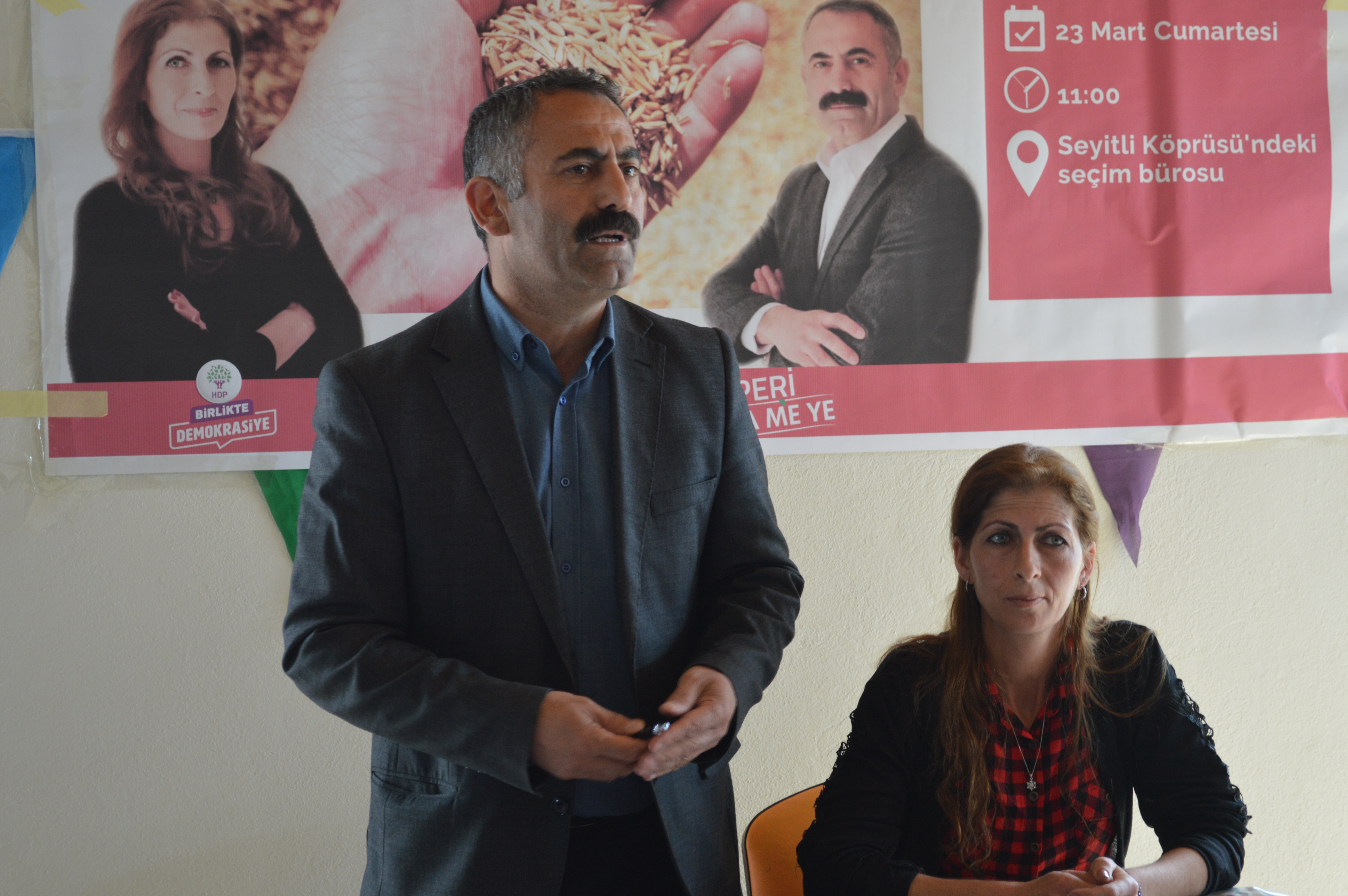 Biz yıllarca sistemden sömürüldük, araçlarımıza mazot alamayacak durumdayız. Biz üretiyorsak HDP ile birleşip HDP ile üreteceğiz. Biz üretiyorsak sistem partileri, yandaşları gelip bizi sömürüyor. Biz HDP’nin projelerine güveniyoruz. Sistem yok pahasına ürünü pazarlıyor. Halkın bütçesini birbirlerine peşkeş çekiyorlar. HDP bizim için bir fırsattır, bunu değerlendirmek lazım. Traktörler var ama hipotekli biz bankaya değil kendimize çalışmamız lazım. Kooperatif kurmamız lazım.