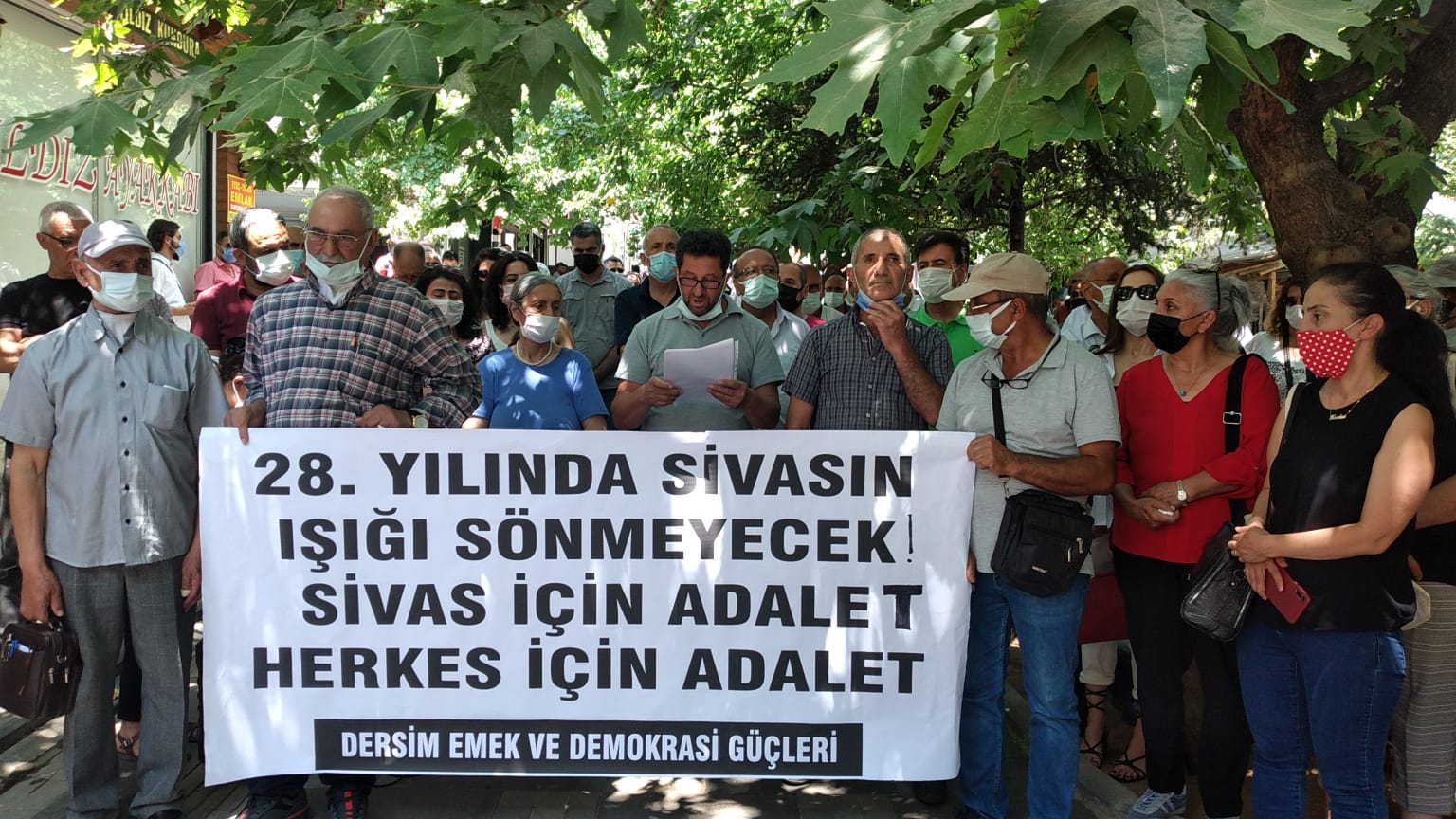 Dersim Emek ve Demokrasi Güçleri, Madımak Katliamı’nın 28. Yılına ilişkin Sanat Sokağı’nda basın açıklaması yaptı. Açıklamayı Dersim Emek ve Demokrasi Güçleri adına PSAKD Dersim Şube Başkanı Ekber Kaya okudu.