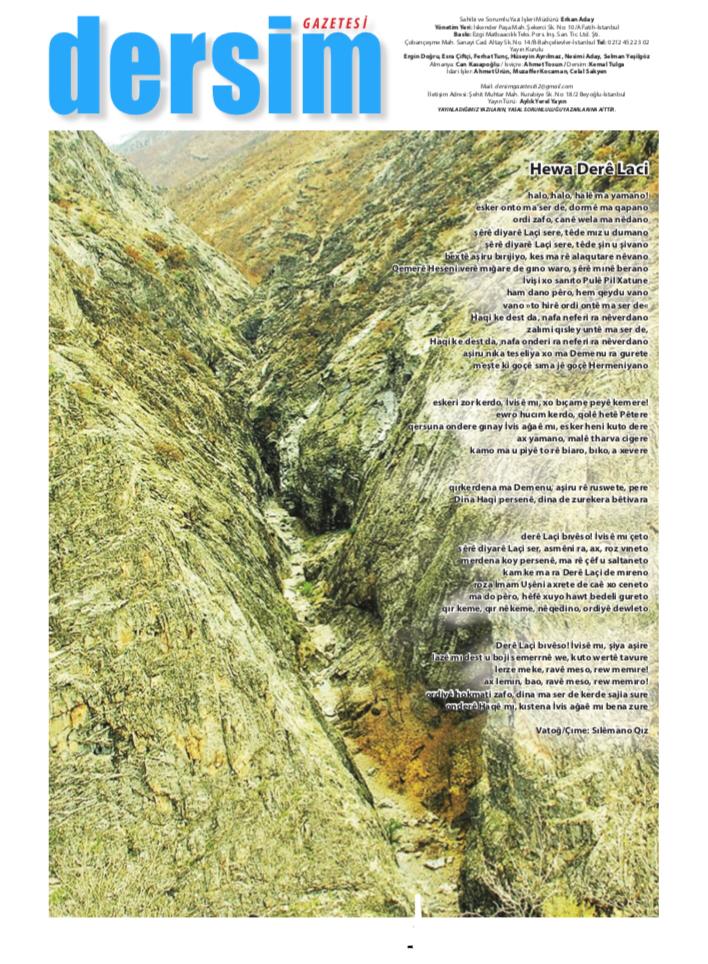 PİRHA: Dersim Gazetesi’nin Kasım/Aralık 2018 tarihli 80. Sayısı ‘HAKİKAT BİZİZ HAKLI OLAN DA BİZİZ’ manşetiyle çıktı. Seyit Rıza ve arkadaşlarının idamının 81. yıl dönümüne denk gelen sayıda Seyit Rıza ve arkadaşları saygıyla anılıyor. Çok sayıda araştırmacı ve yazarın imzasını taşıyan bu sayıda Dersim 38 ve idamların yanı sıra birçok konu işleniyor.