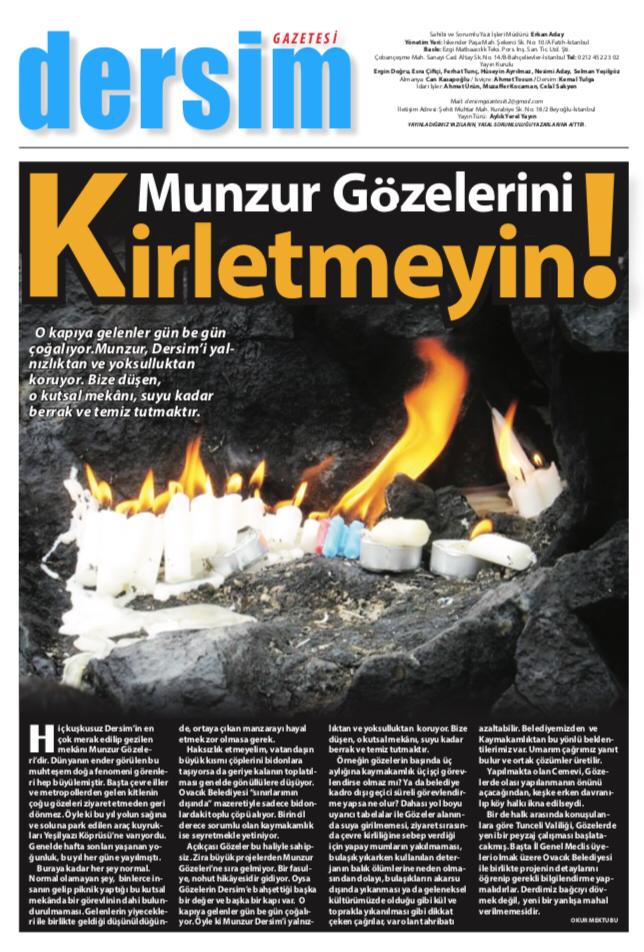 Ayrıca gazetede Pertek Dere Nahiyesi’nde açılan değirmen, Avrupa’daki Dersim kurumları doğasına sahip çıkıyor haberleri ve “Munzur Gözeleri’ni kirletmeyin” çağrısı yer alıyor. (HABER MERKEZİ)