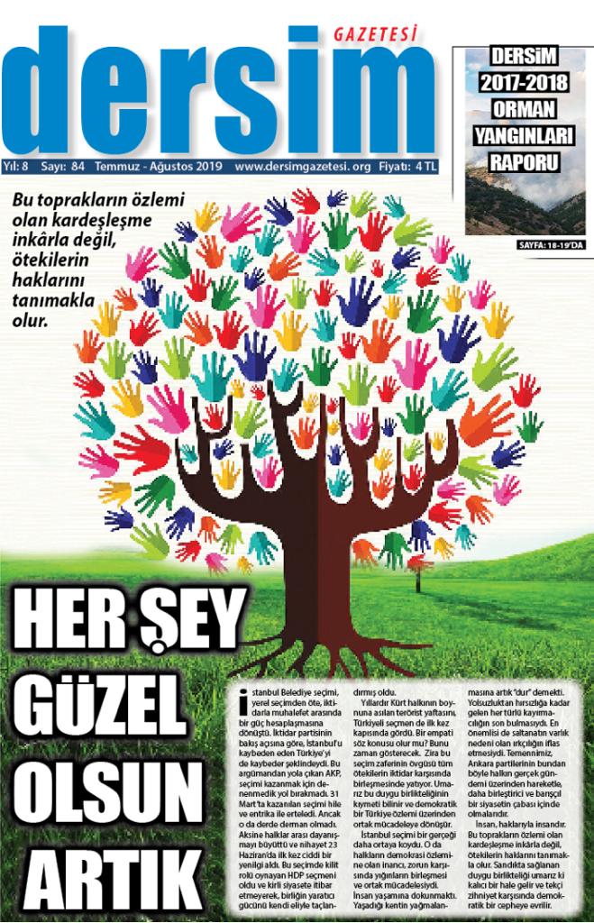 PİRHA-Dersim Gazetesi’nin Temmuz/Ağustos 2019 tarihli 84. sayısı “Her şey çok güzel olsun artık!” manşetiyle çıktı.