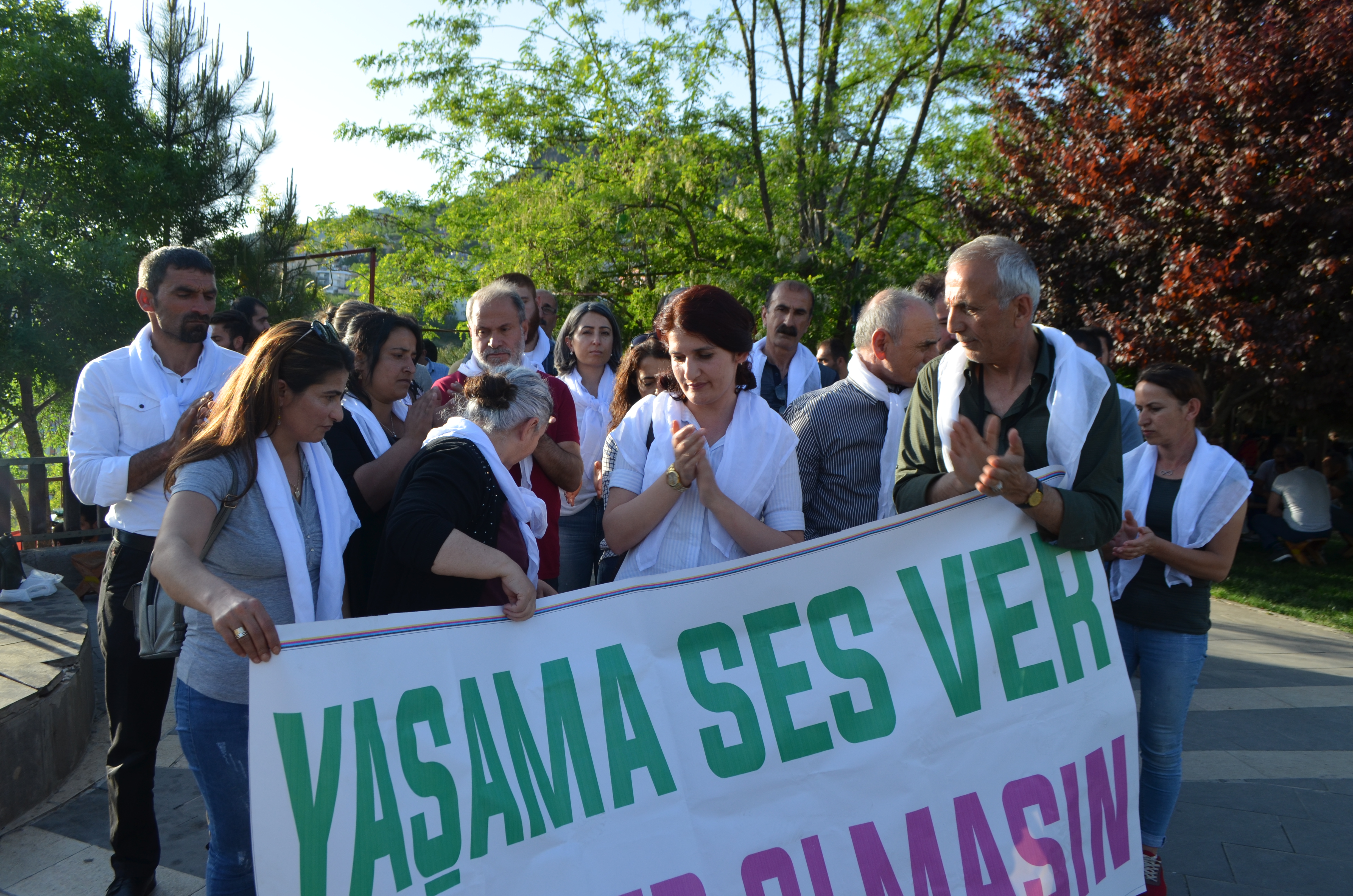 Seyit Rıza Meydanı’nda gerçekleşen eyleme siyasi parti ve kurum temsilcileri, çocukları açlık grevinde olan anneler, yurttaşlar ve Halkların Demokratik Partisi Diyarbakır Milletvekili Semra Güzel katıldı.