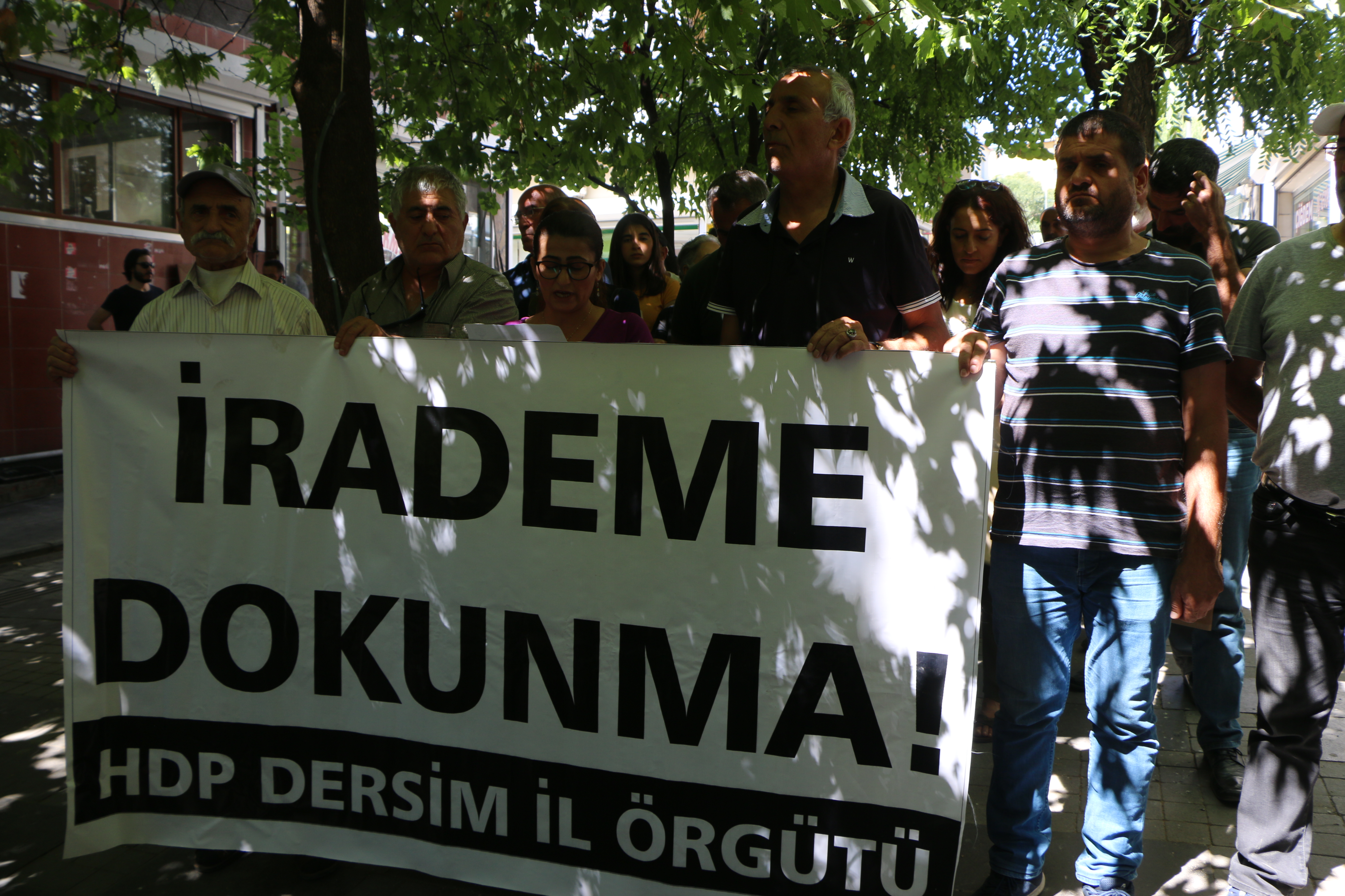 Açıklamayı okuyan HDP Dersim İl Eş Başkanı Özlem Toprak, “Seçilmiş Belediye Eş Başkanlarının yerine atandıkları günden 31 Mart 2019 tarihinde yapılan yerel seçimlere kadar hiçbir hukuksal gerekçe göstermeden dile, kültüre, doğaya, ekonomiye, kadınların kazanılmış haklarına, çocukların anadilinde eğitim görmesine saldıran kayyımlar hakkında soruşturma açılıp yargılanmaları gerekirken Diyarbakır, Van ve Mardin Büyükşehir Belediyelerine yeni kayyımlar atanmıştır. Tam bir kültürel ekonomik ve siyasal kırıma dönüşen kayyım uygulamaları merkezileşme ve tekçi politikalarının bir ürünüdür. Kayyımlar halkın kültürel değerlerinin, anadilinin, doğanın, kadının, sanatın ve Kürt düşmanıdır. Gücünü de Ankara’dan desteklenen cezasızlık anlayışından almaktadır” ifadelerini kullandı.